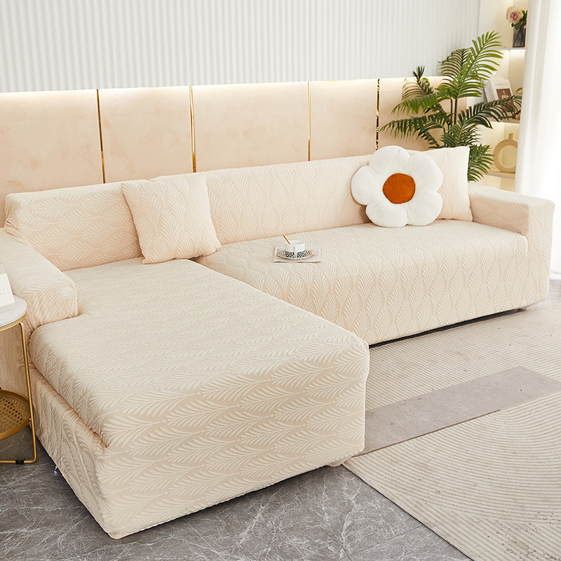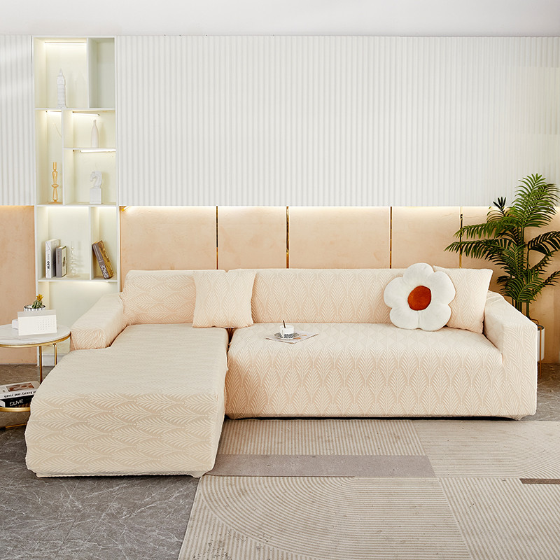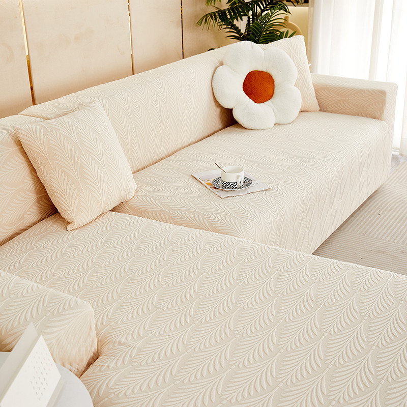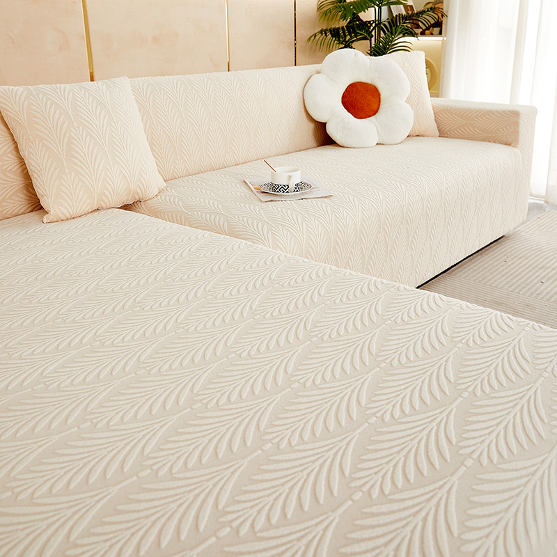 商品名称:逐日 2023新款提花沙发套系列-叶恋 叶恋-米黄色