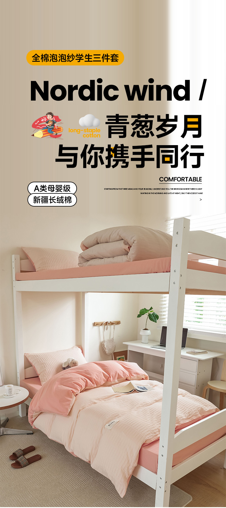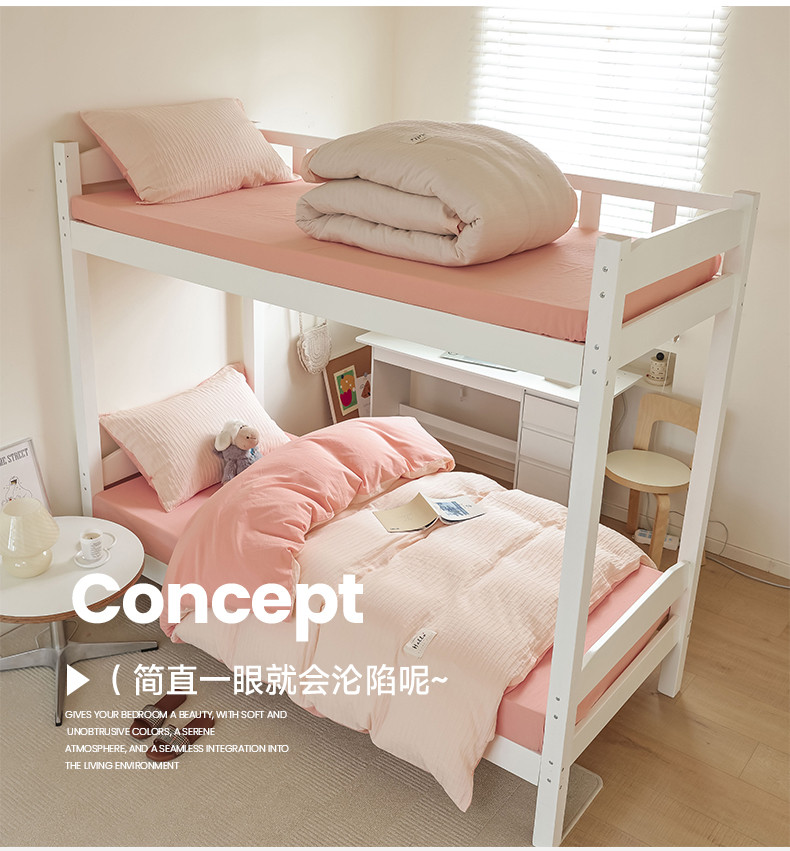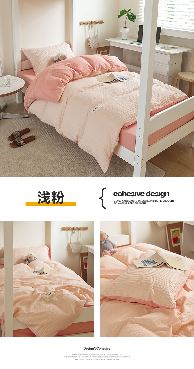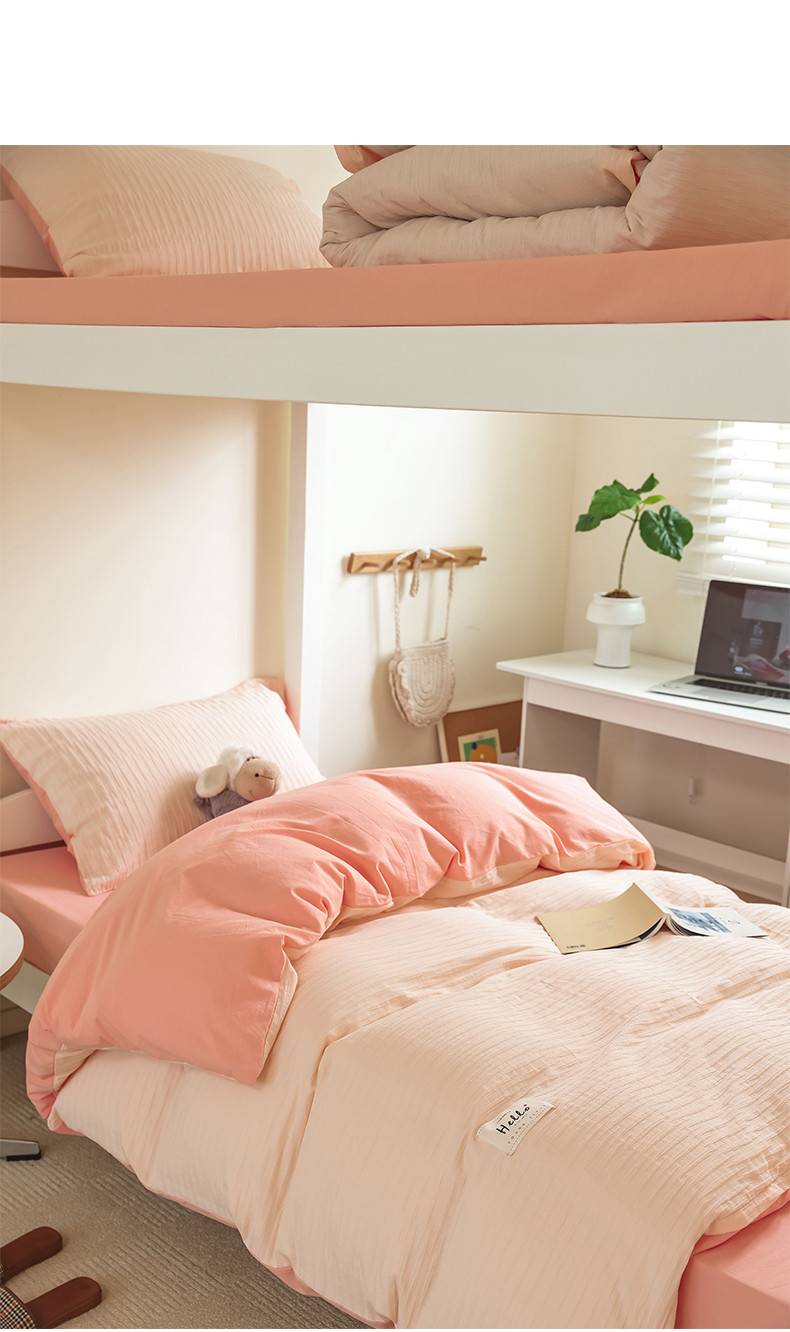商品名称:寐眠 2023新款全棉泡泡纱学生三件套 浅粉