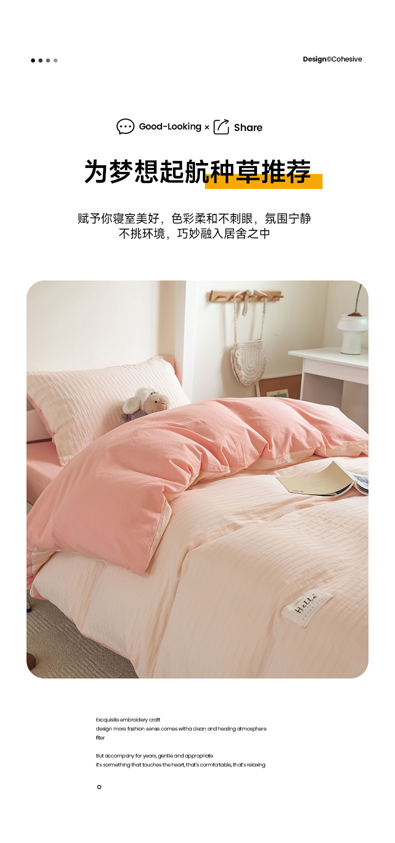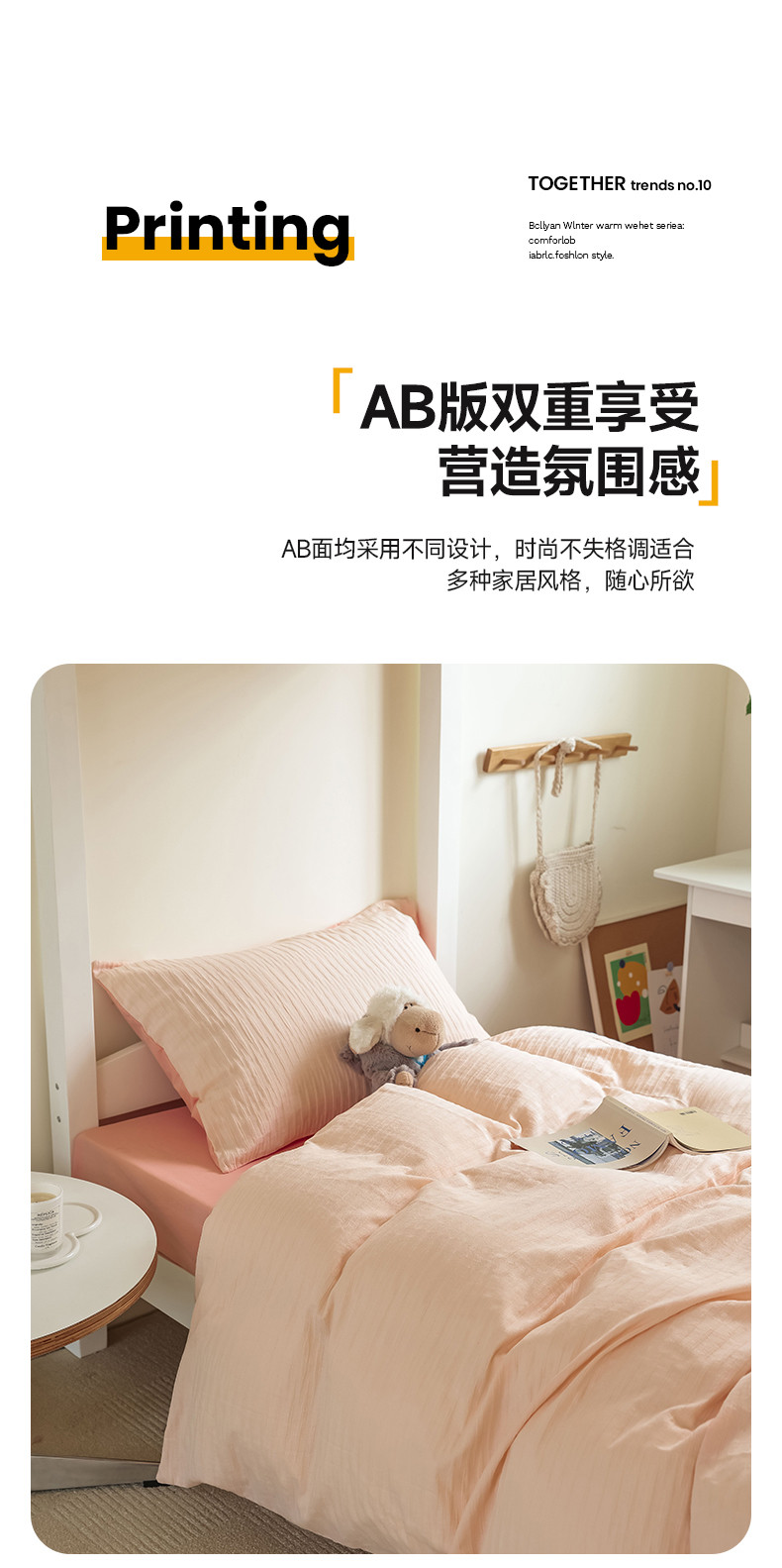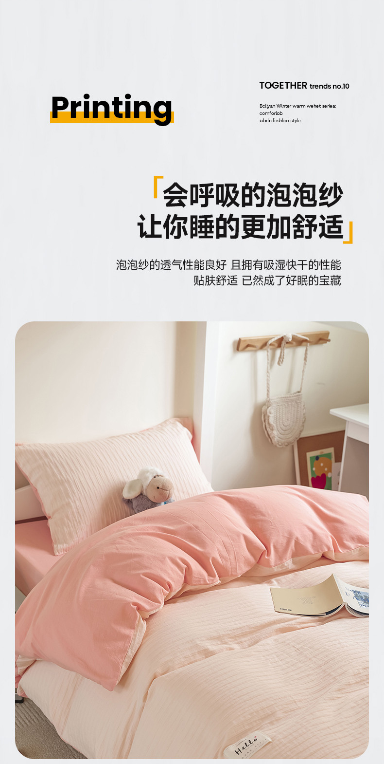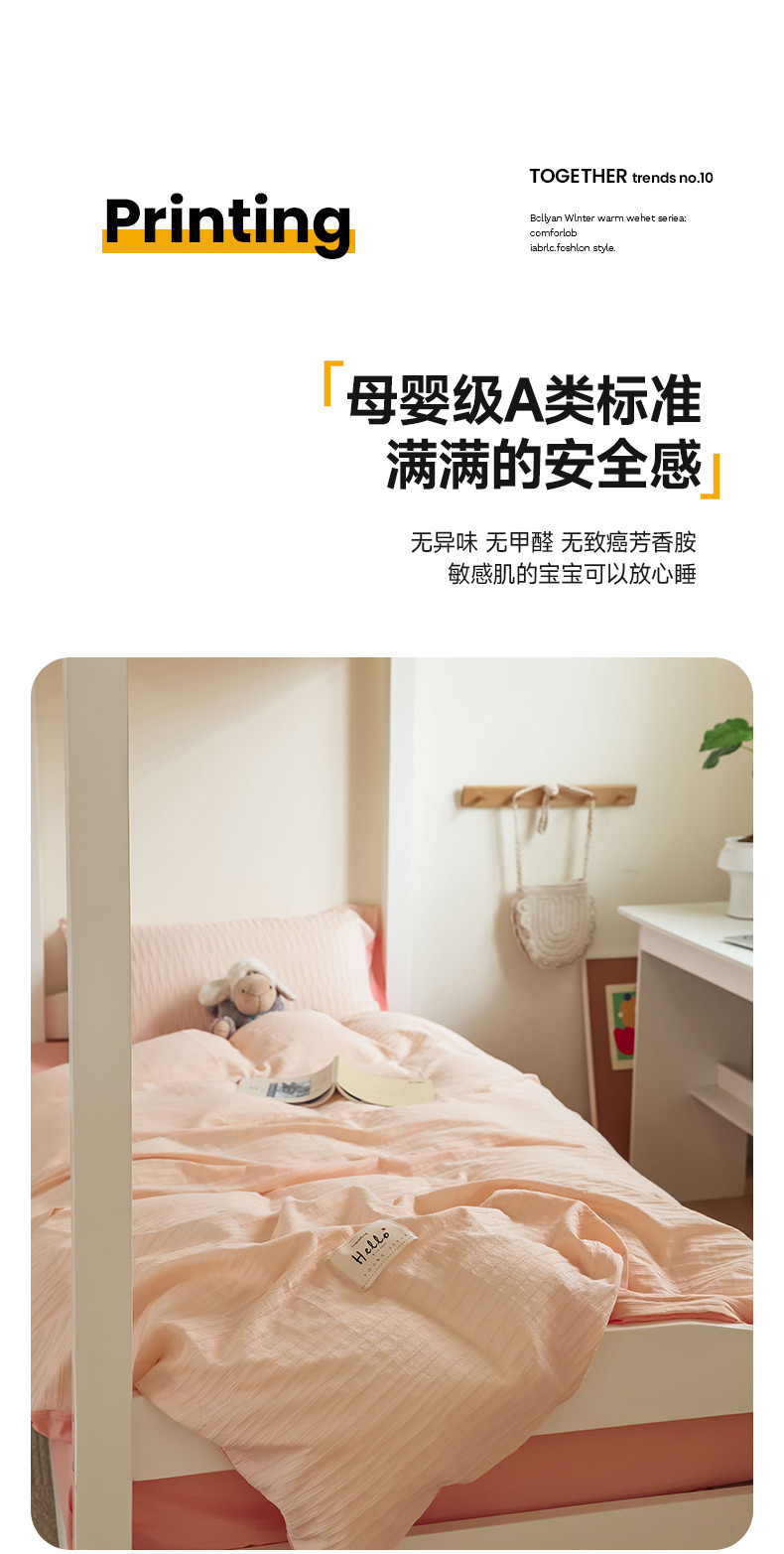 商品名称:寐眠 2023新款全棉泡泡纱学生三件套 浅粉
