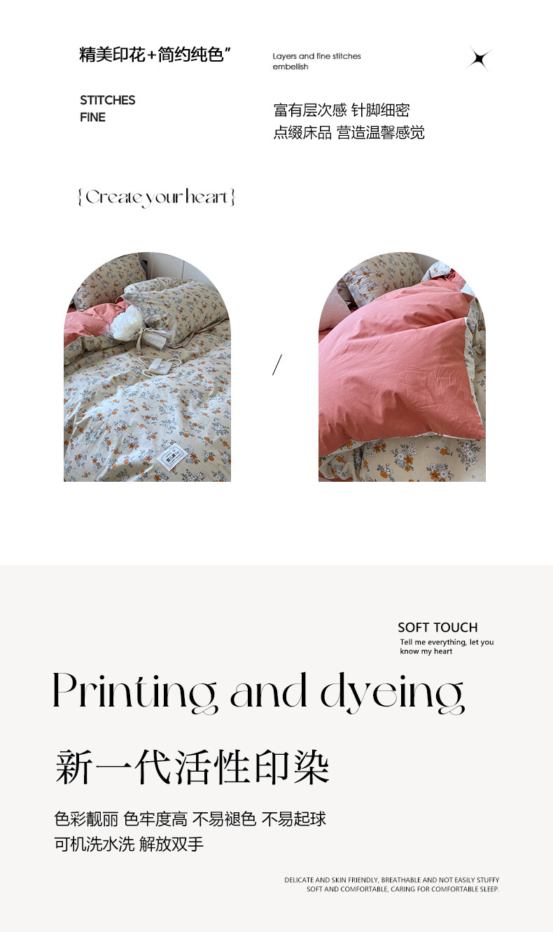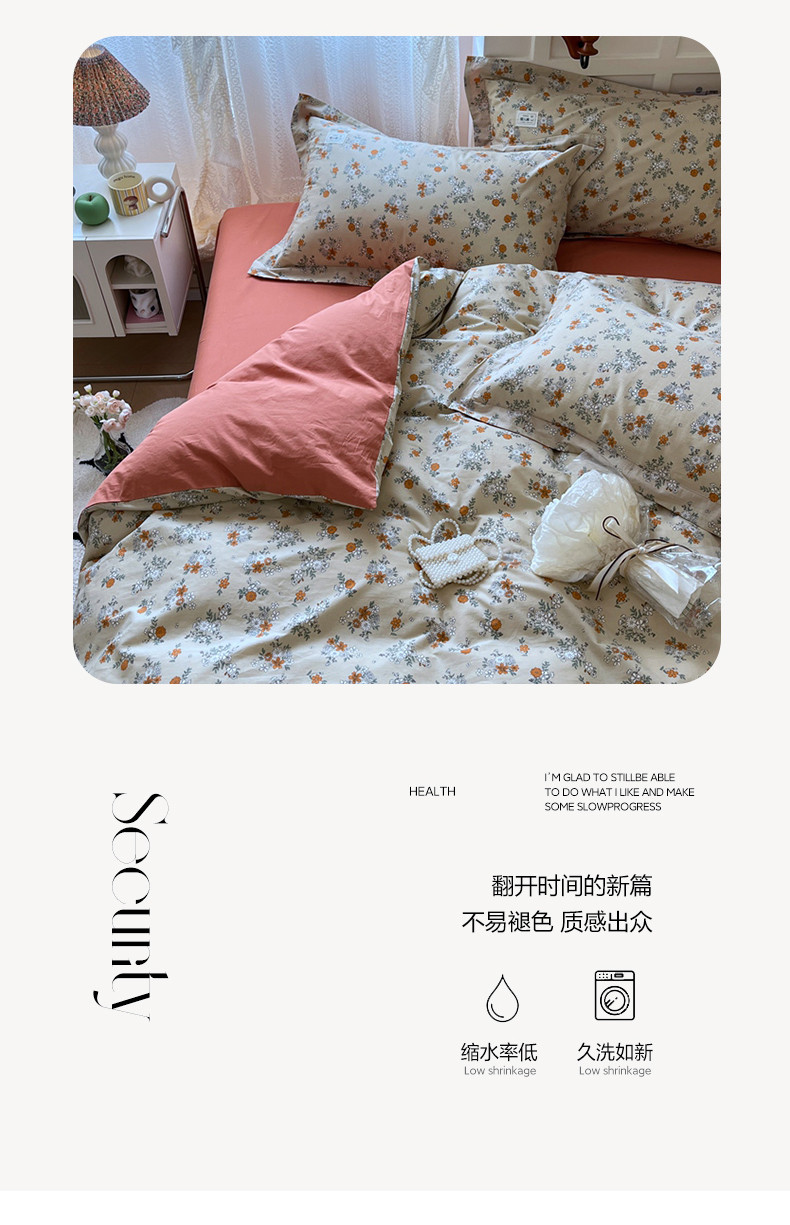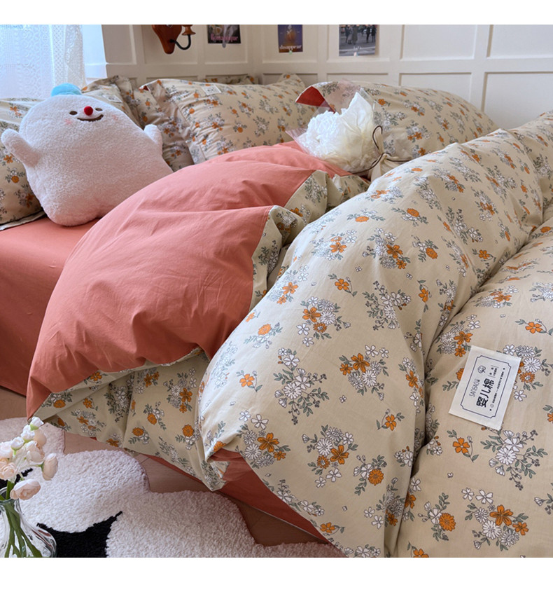 商品名称:米粒家纺 2023新款全棉印花四件套系列 若烟-桔