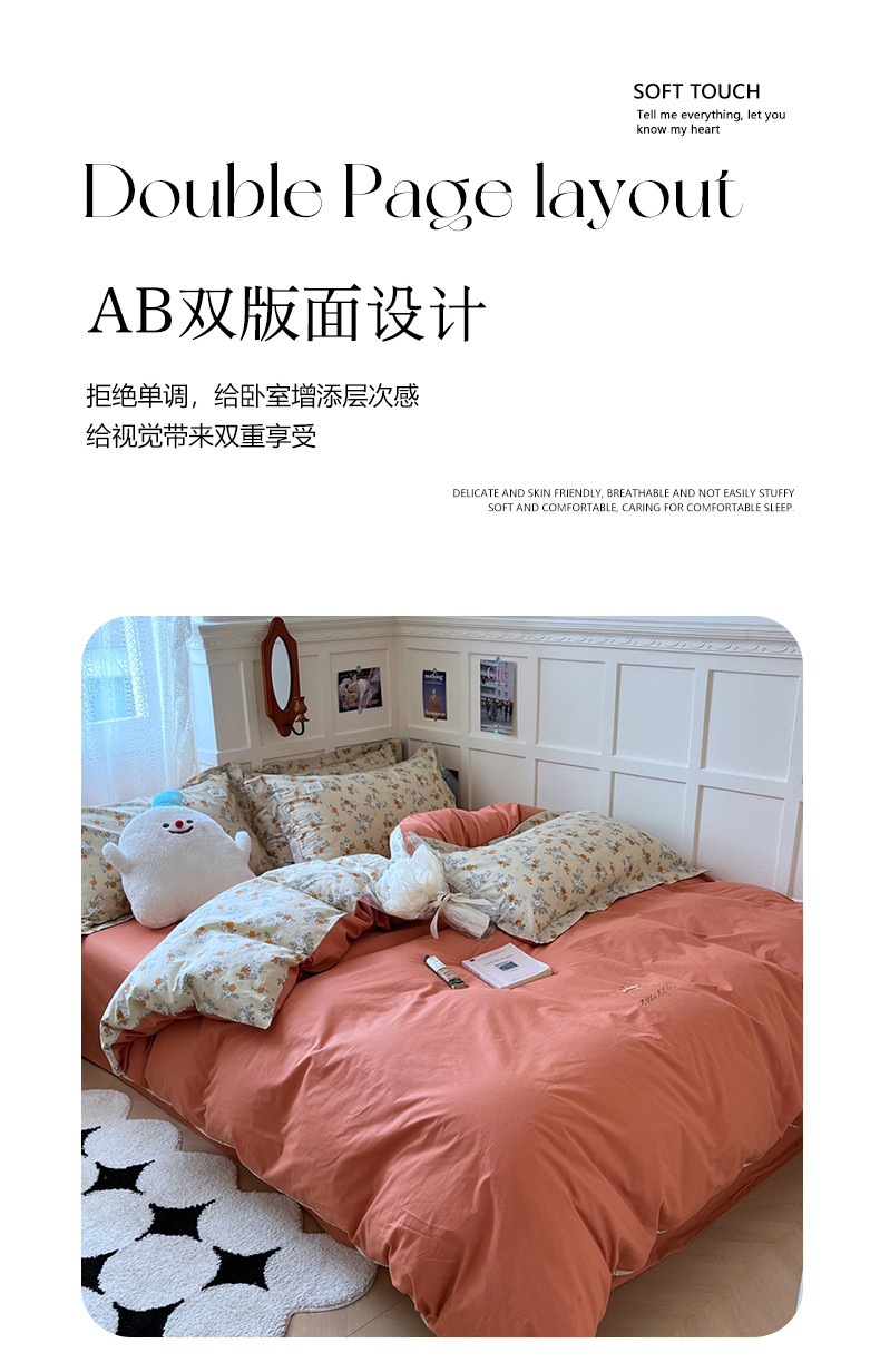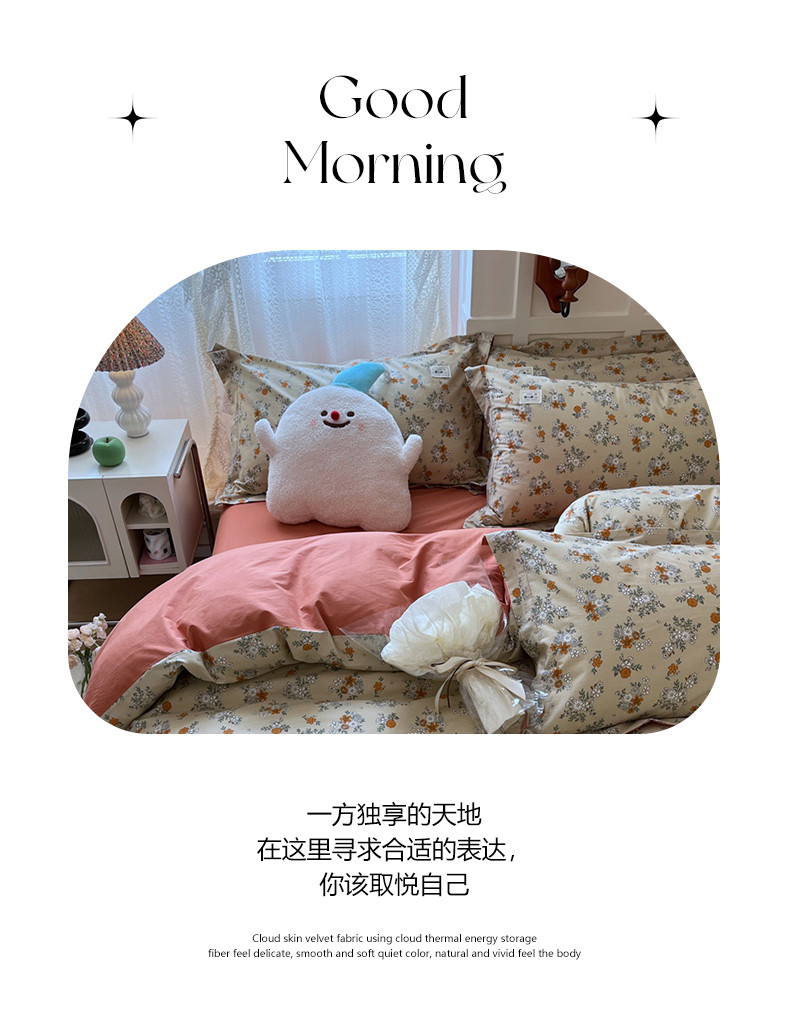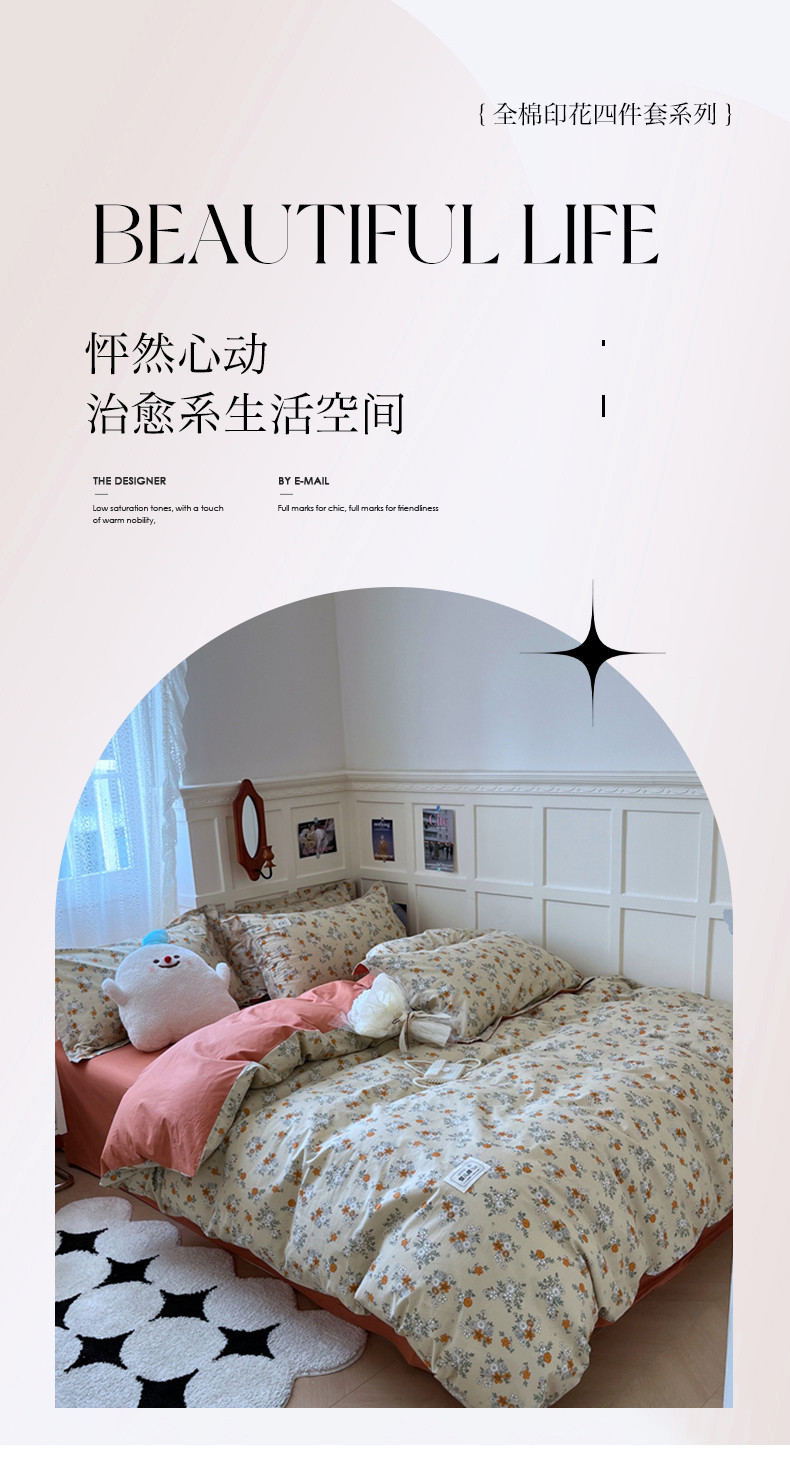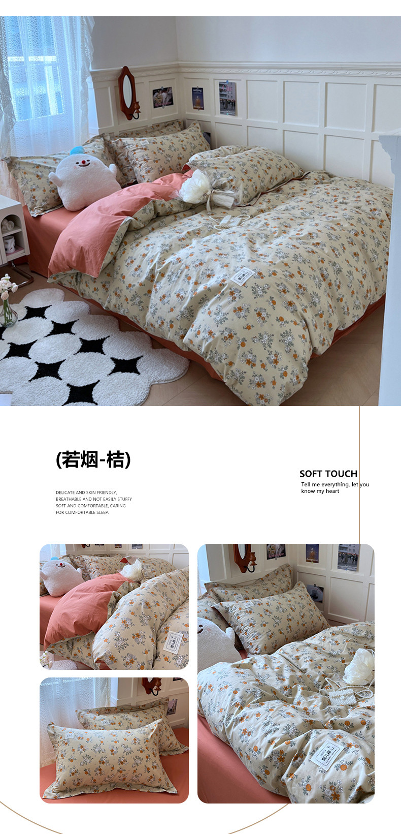 米粒家纺 2023新款全棉印花四件套系列 若烟-桔