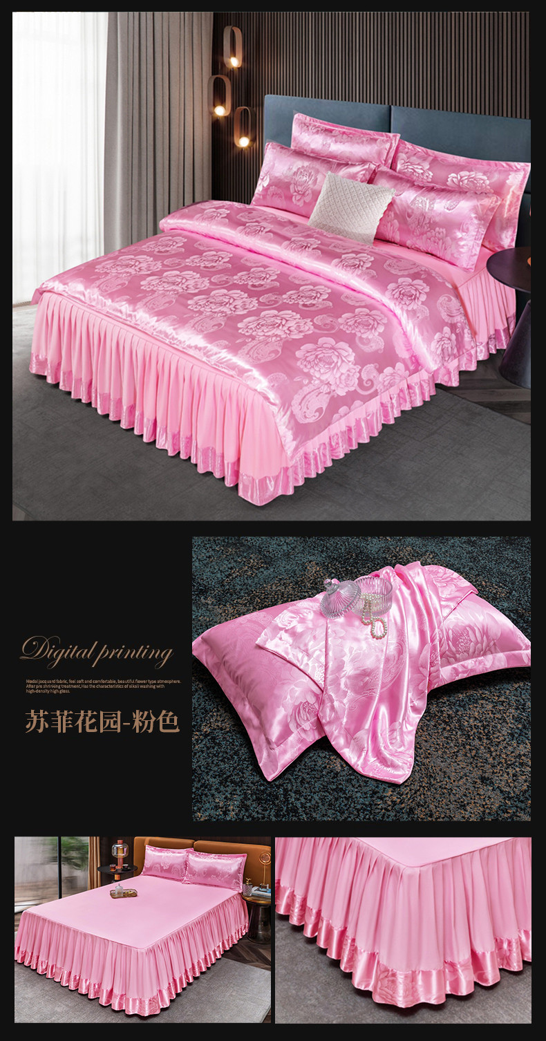 商品名称:莱欧纳 2025新款欧式提花床裙四件套 苏菲花园-粉色