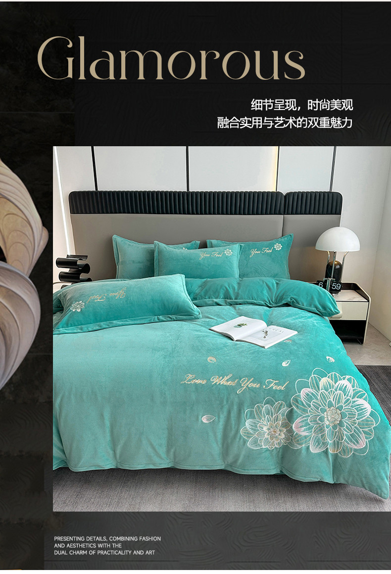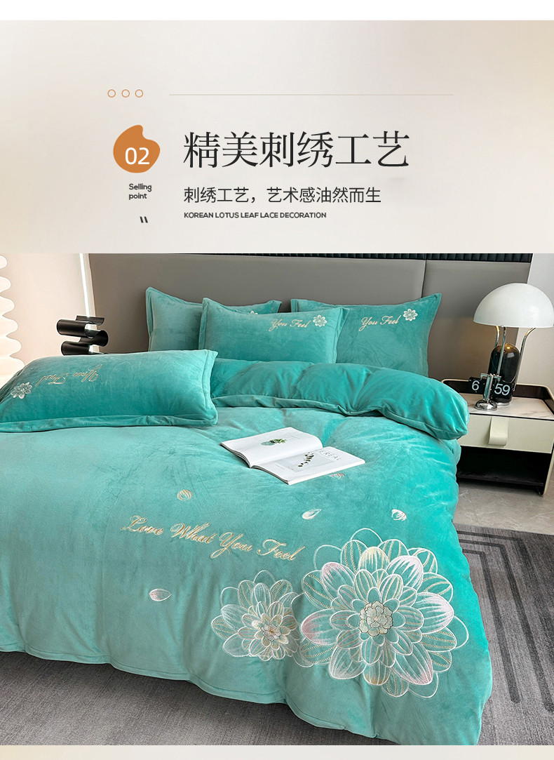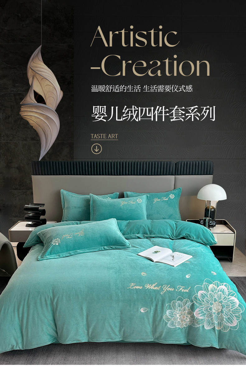 (总)逸林家纺《原希尔顿逸林》 2025新款牛奶绒绣花四件套-可可系列,可可-宾利蓝,可可-豆沙,可可-繁星蓝,可可-粉玉,可可-香芋紫,可可-雅士灰