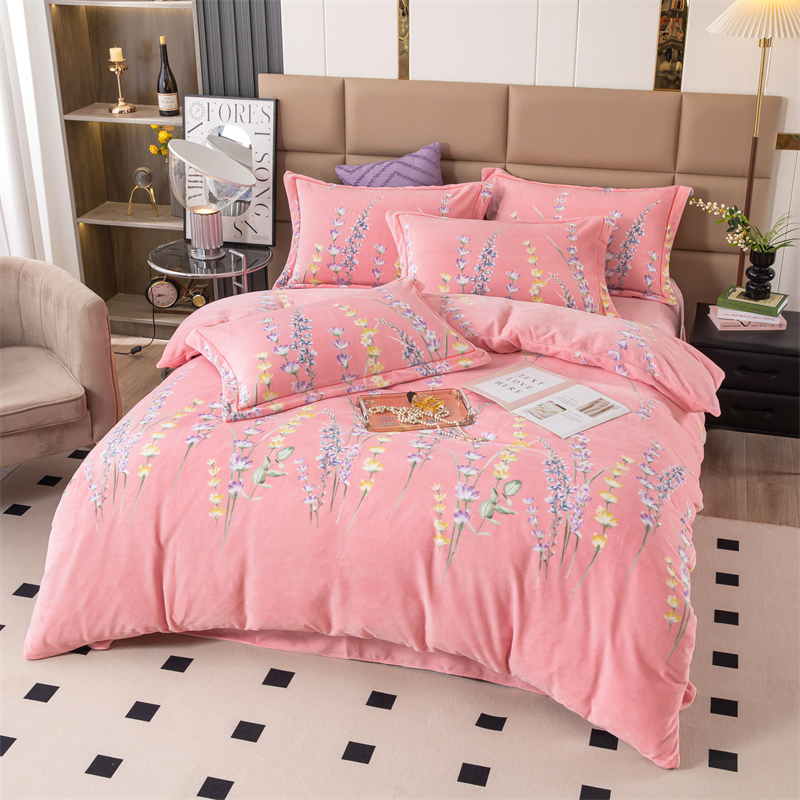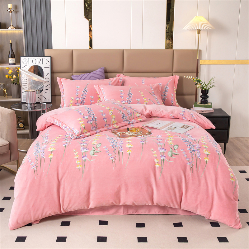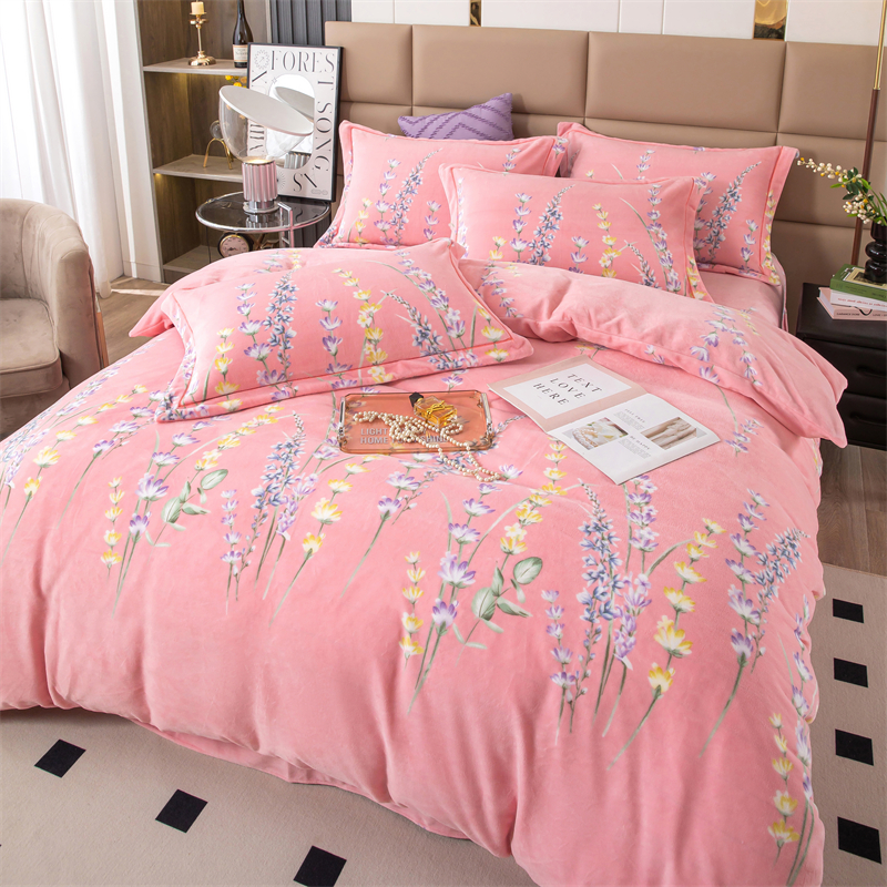 优姿家纺 2024新款加厚全消光牛奶棉印花四件套 薰衣草粉