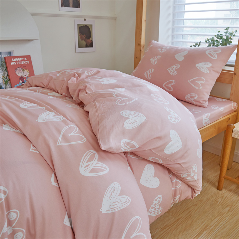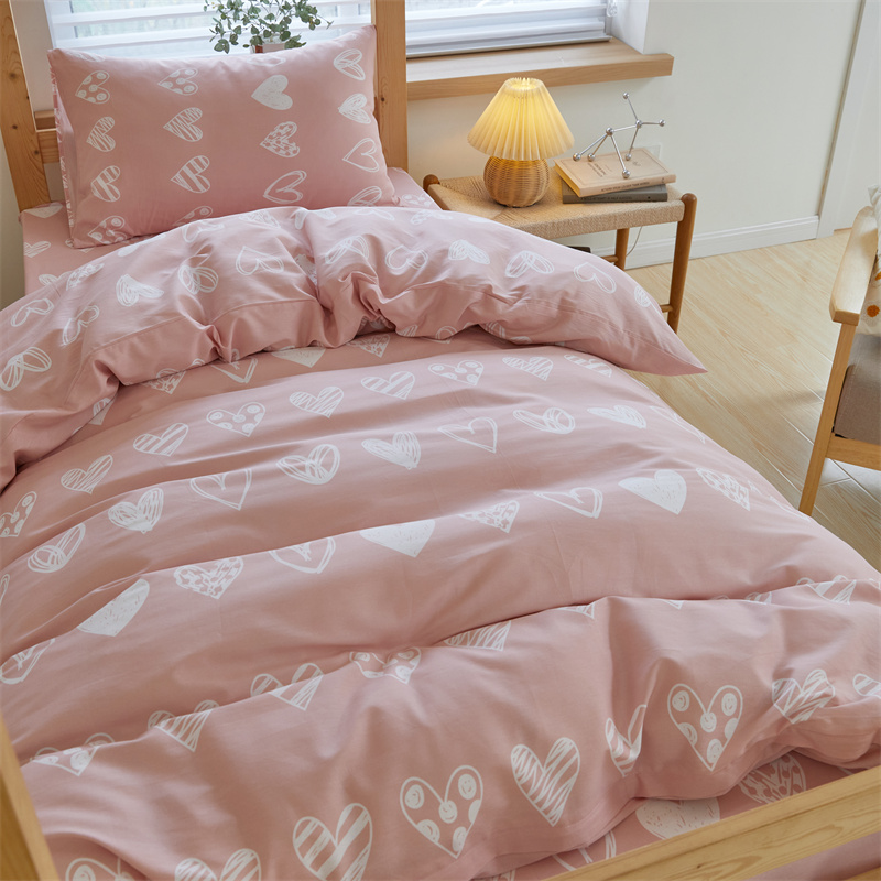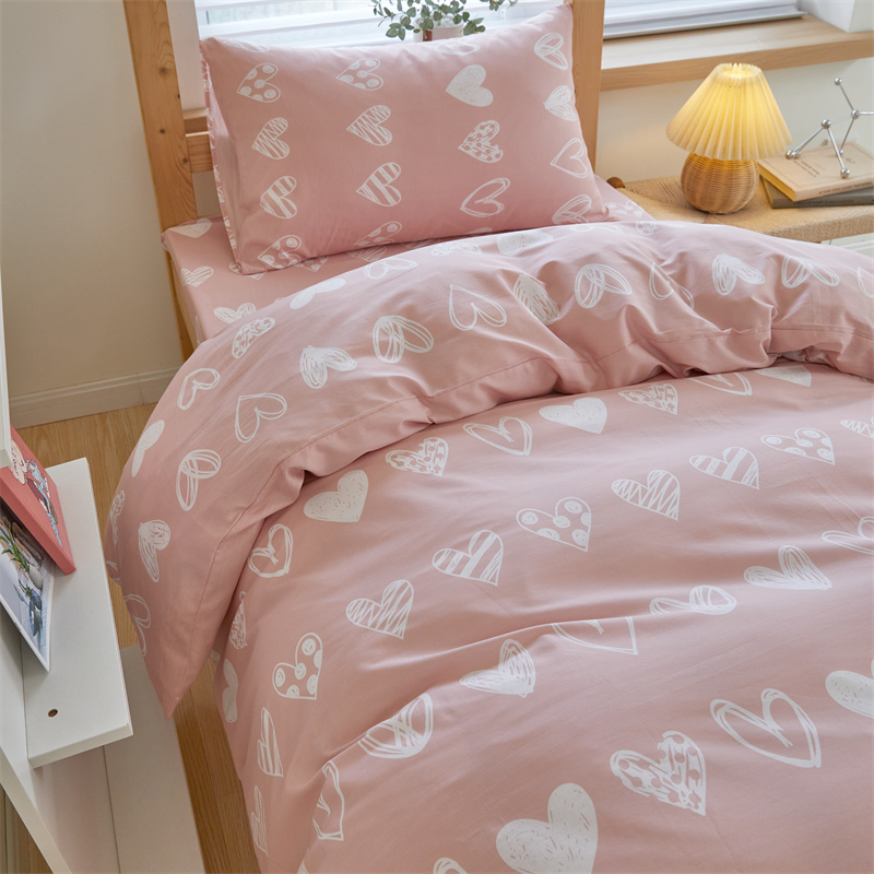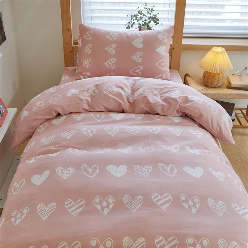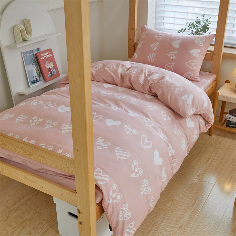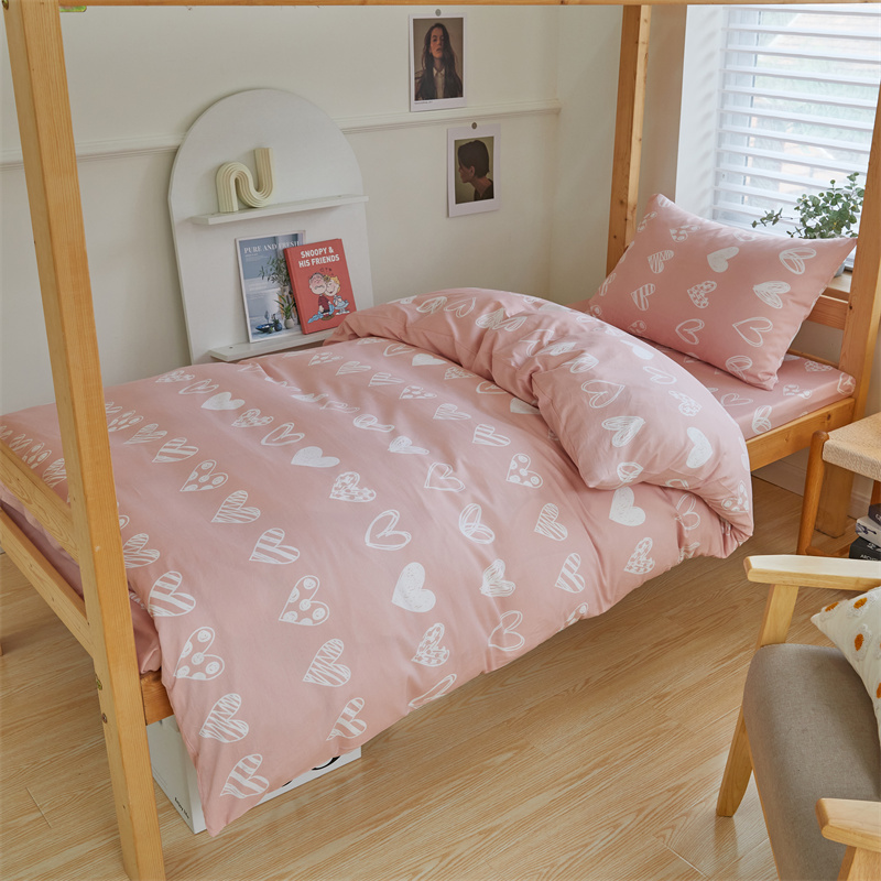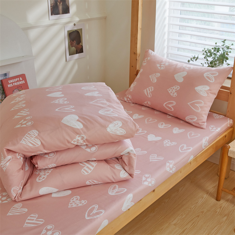 杜先生 2023新款13372学生宿舍三件套纯棉三件套床单款 爱心公主-粉