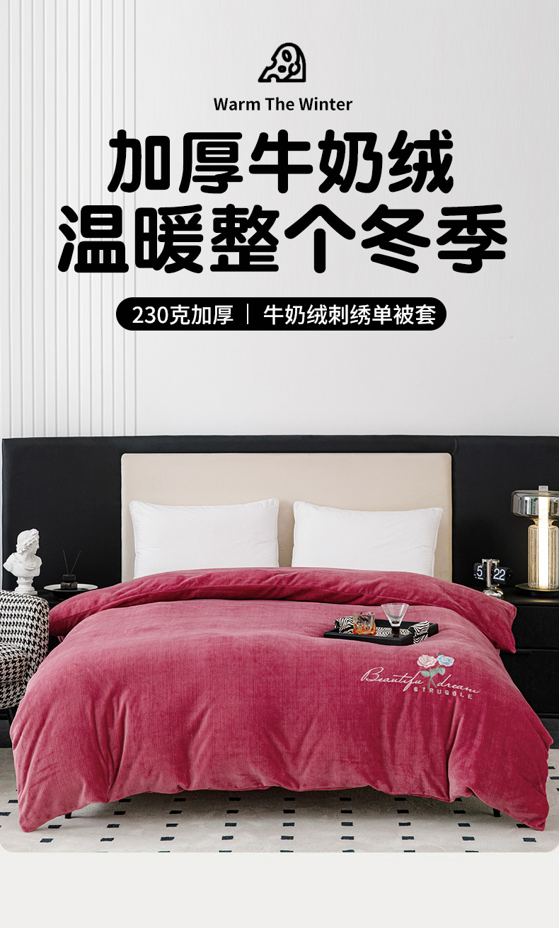 当前位置: 91家纺网 > 商品网购 > 床品套件 > 四件套 > 牛奶绒四件套 > 新款230克肌理纹绣花牛奶绒单被套可定做定制 肌理纹绣花-酒红