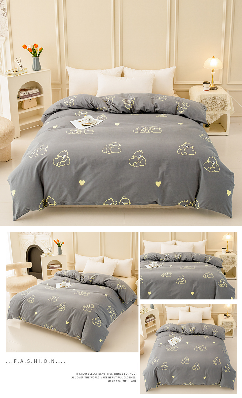 • 91家纺网 家纺一手货源 找家纺 新款50双股澳棉印花被套单件定做定制任意尺寸 抱抱熊-灰