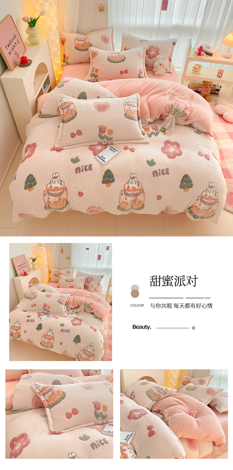 当前位置: 91家纺网 > 商品网购 > 床品套件 > 四件套 > 牛奶绒四件套 > 同田家纺 2024秋冬新品雪花绒牛奶绒印花四件套 甜蜜派对
