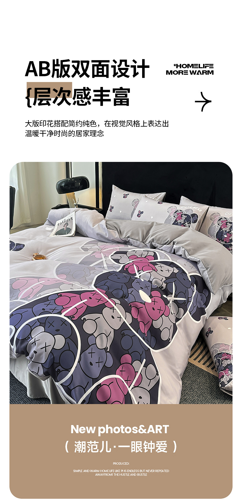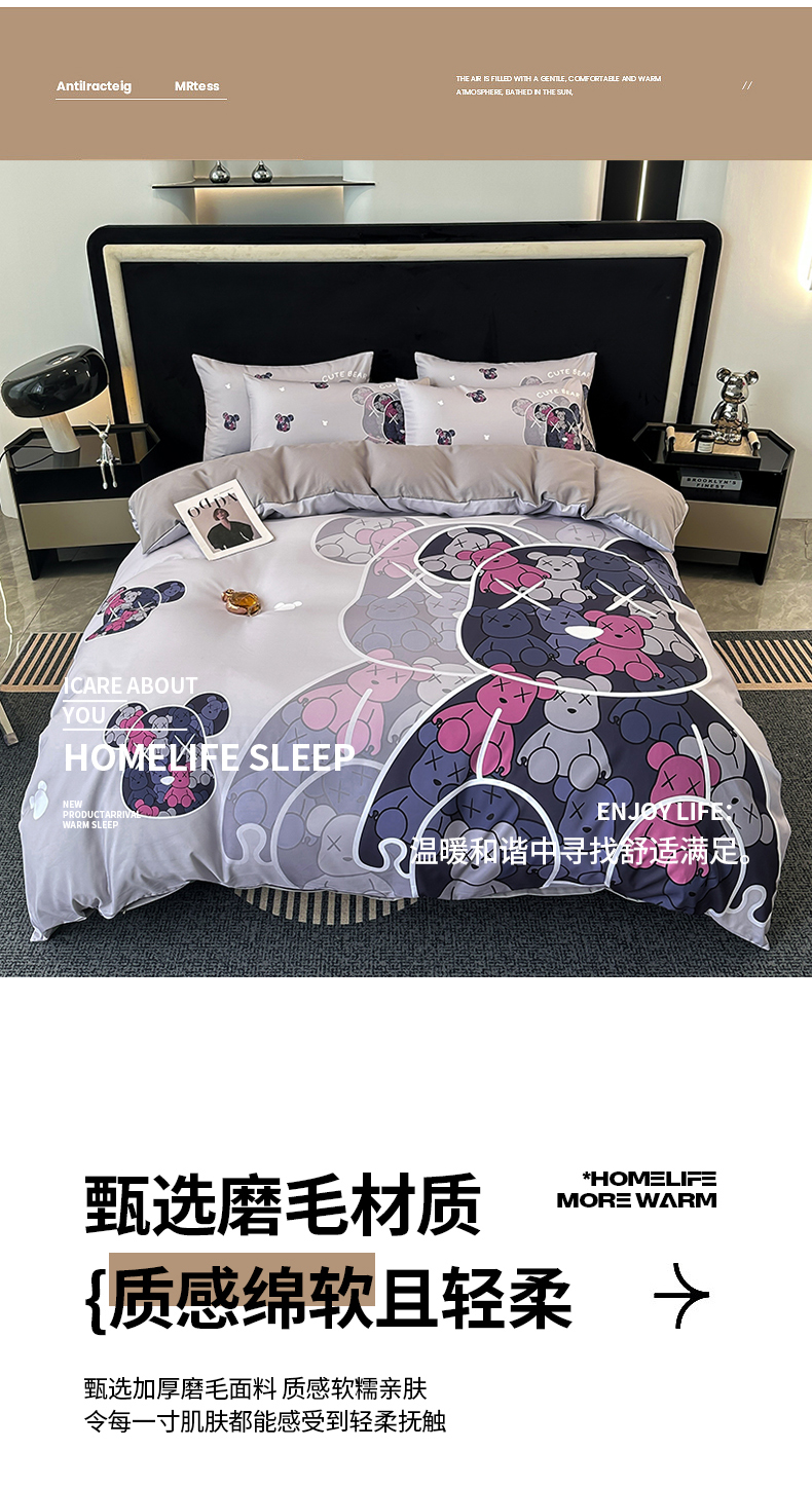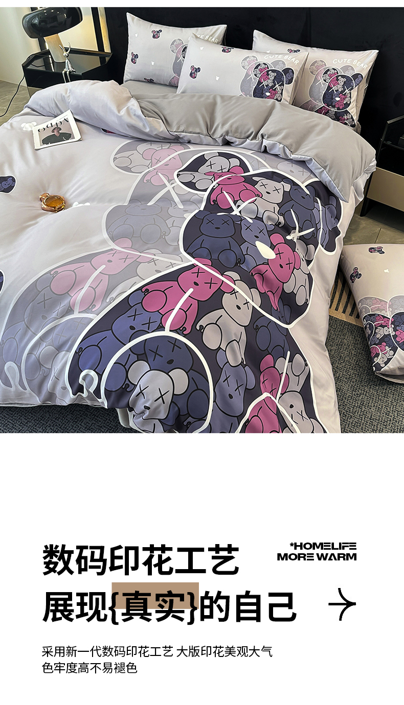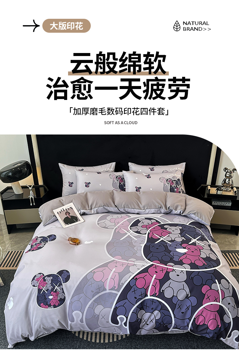 当前位置: 91家纺网 > 商品网购 > 床品套件 > 四件套 > 普通磨毛四件套 > 色鬼布艺 2023新款加厚双面磨毛数码大版印花四件套 幻影-灰