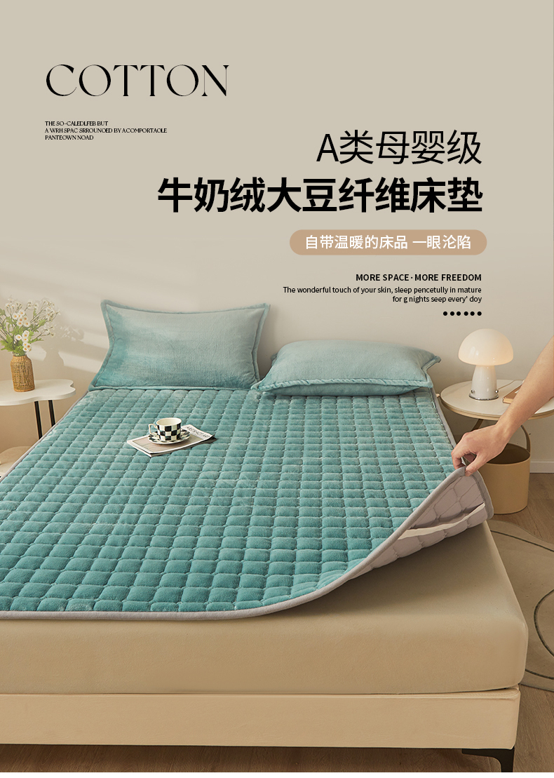 当前位置: 91家纺网 > 商品网购 > 床垫/床褥 > 普通床垫 > 雅萱 2023新款大豆牛奶绒成人床护垫 床垫-百合绿