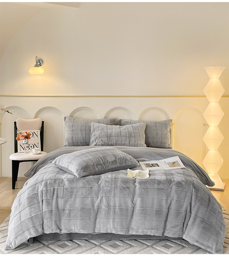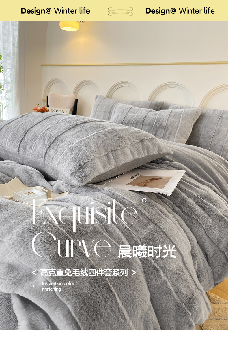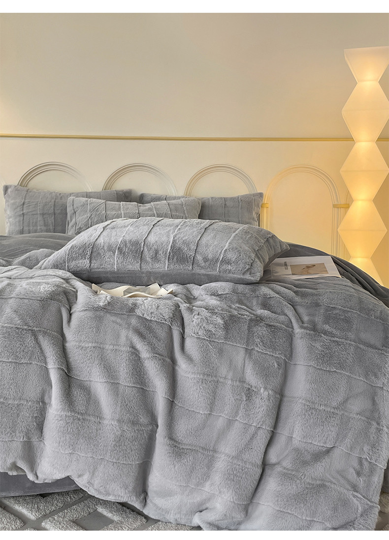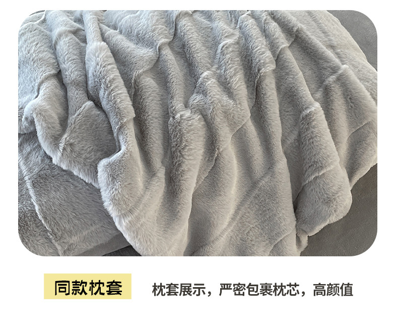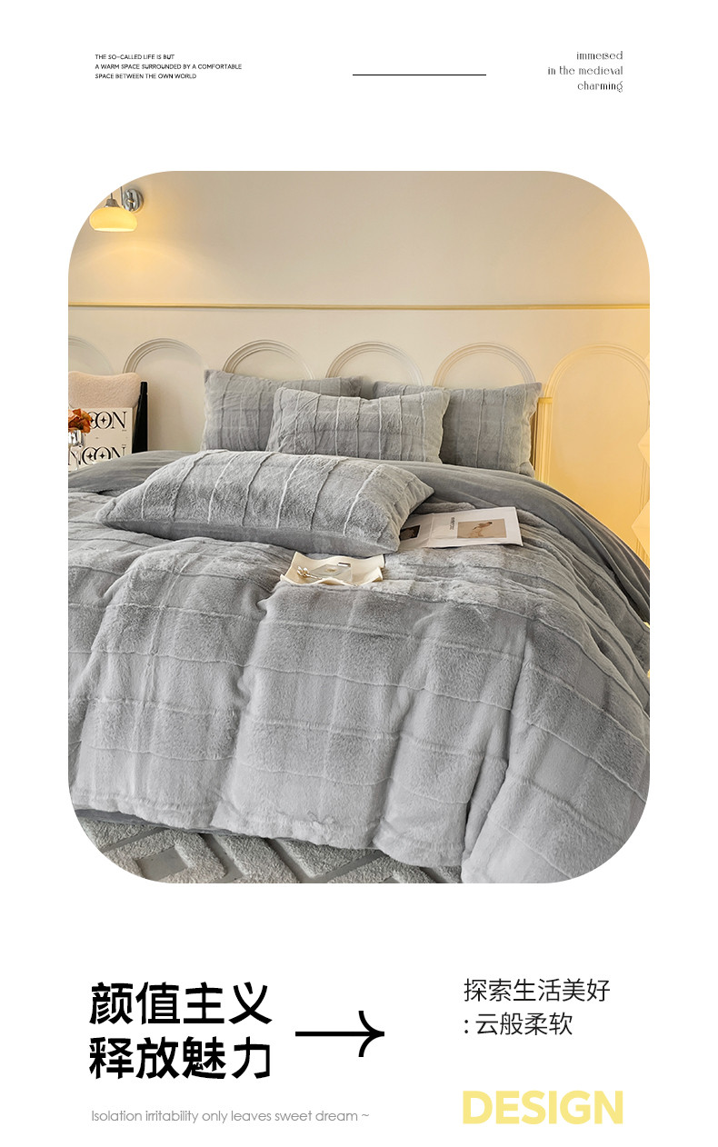 商品名称:金麦 2023新款舒适高克重兔毛绒四件套 格子灰色