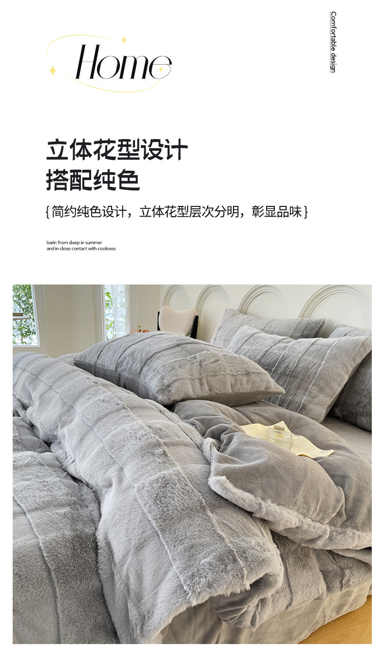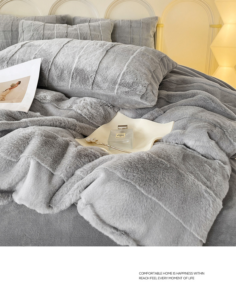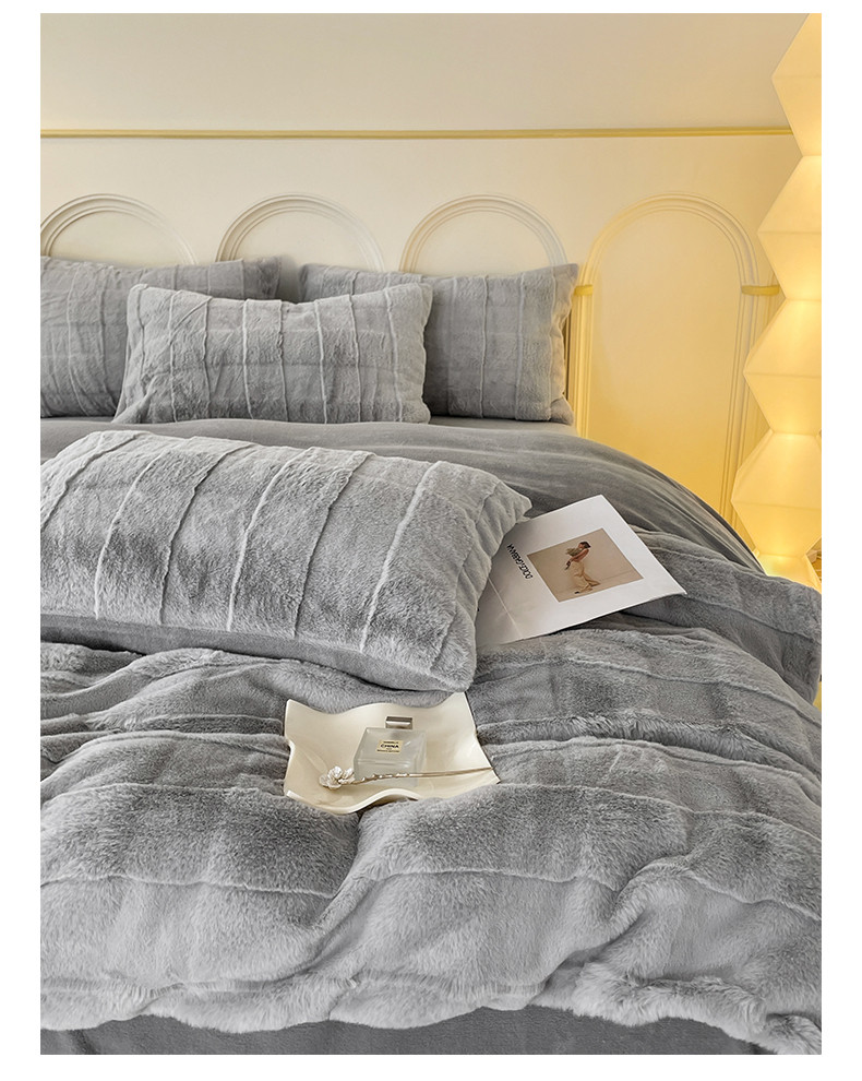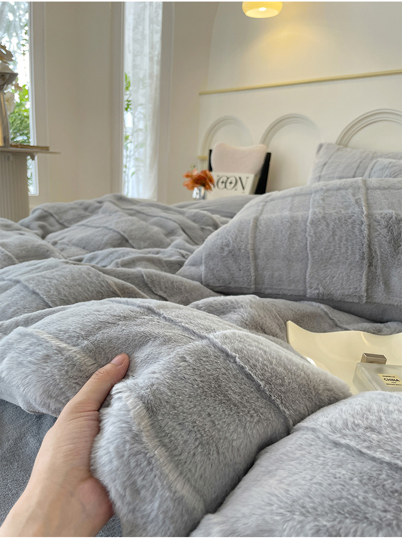 商品名称:金麦 2023新款舒适高克重兔毛绒四件套 格子灰色