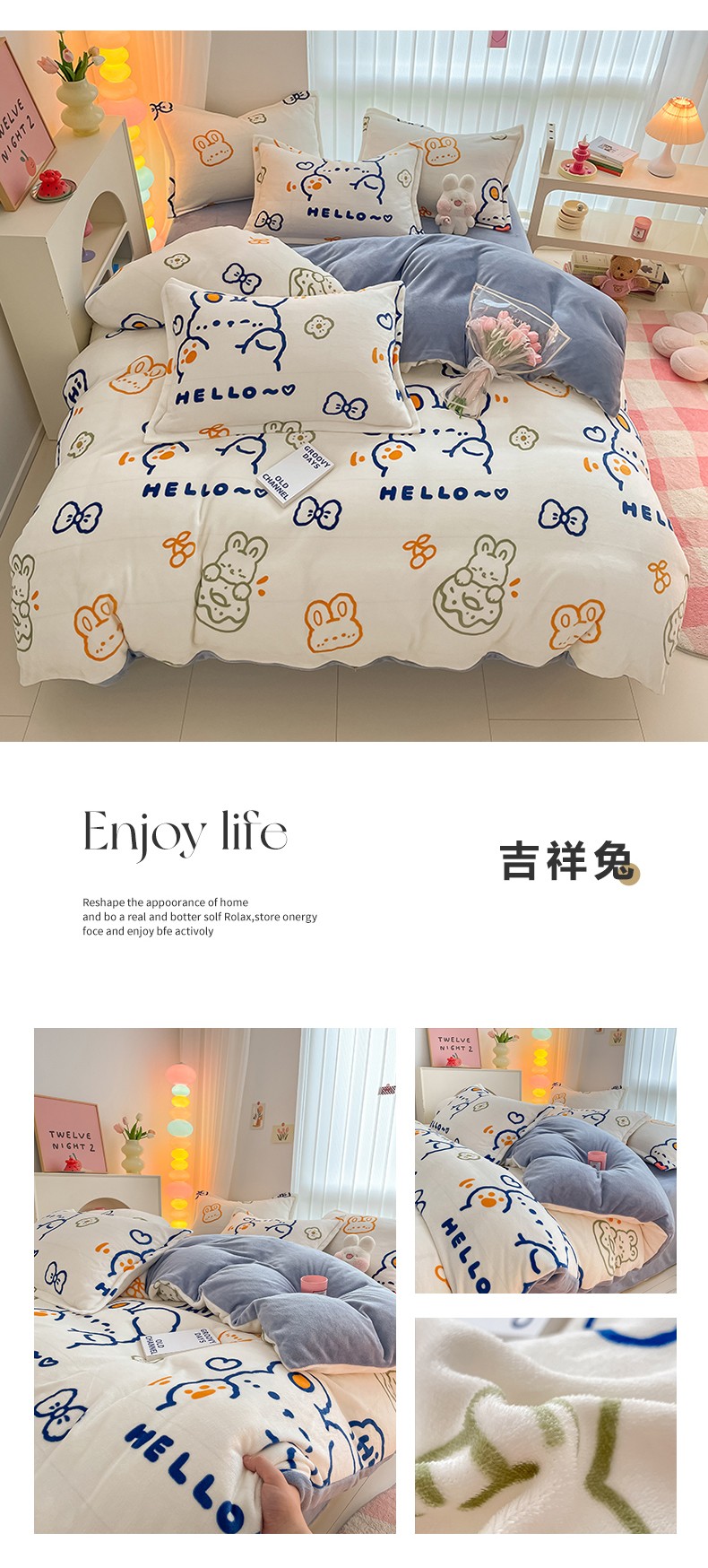 商品名称:莱米家纺 2023新款牛奶绒印花单被套法莱绒 吉祥兔