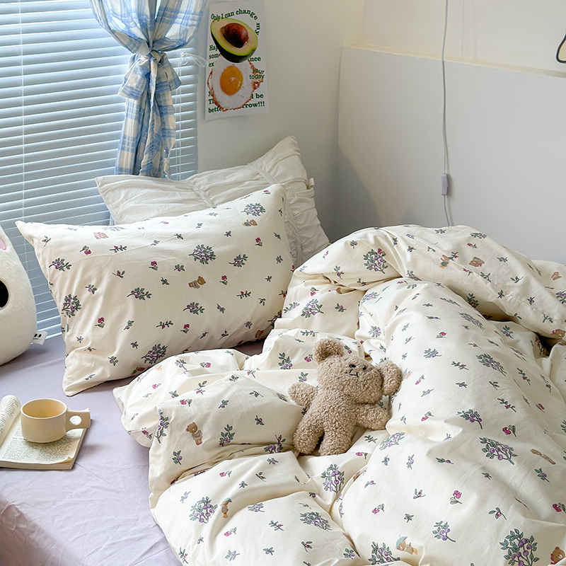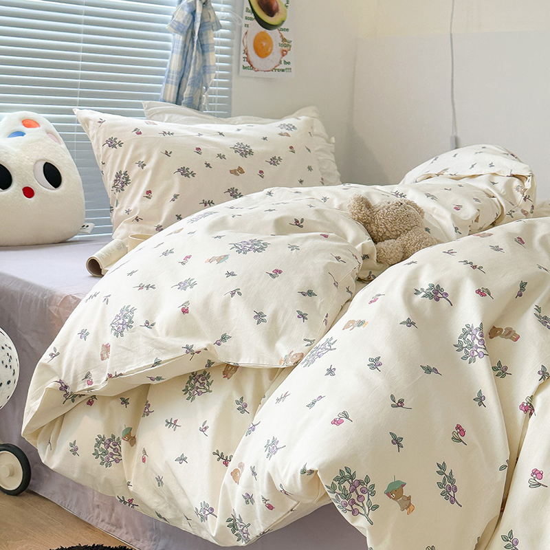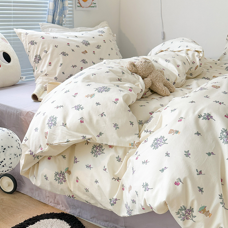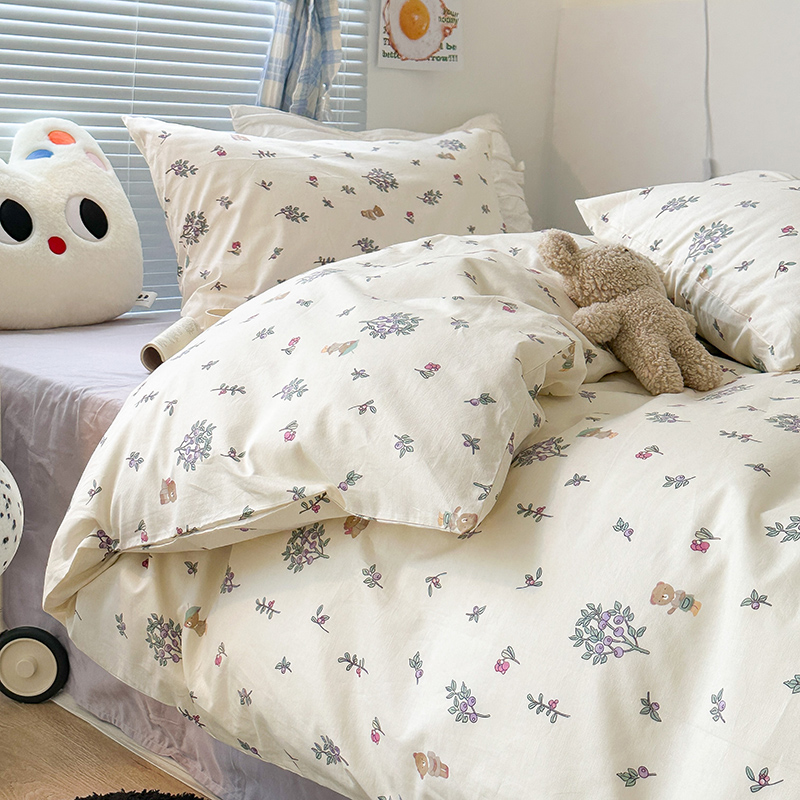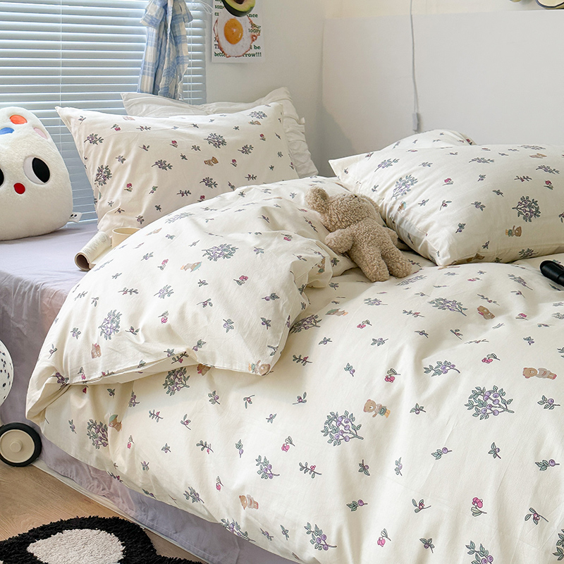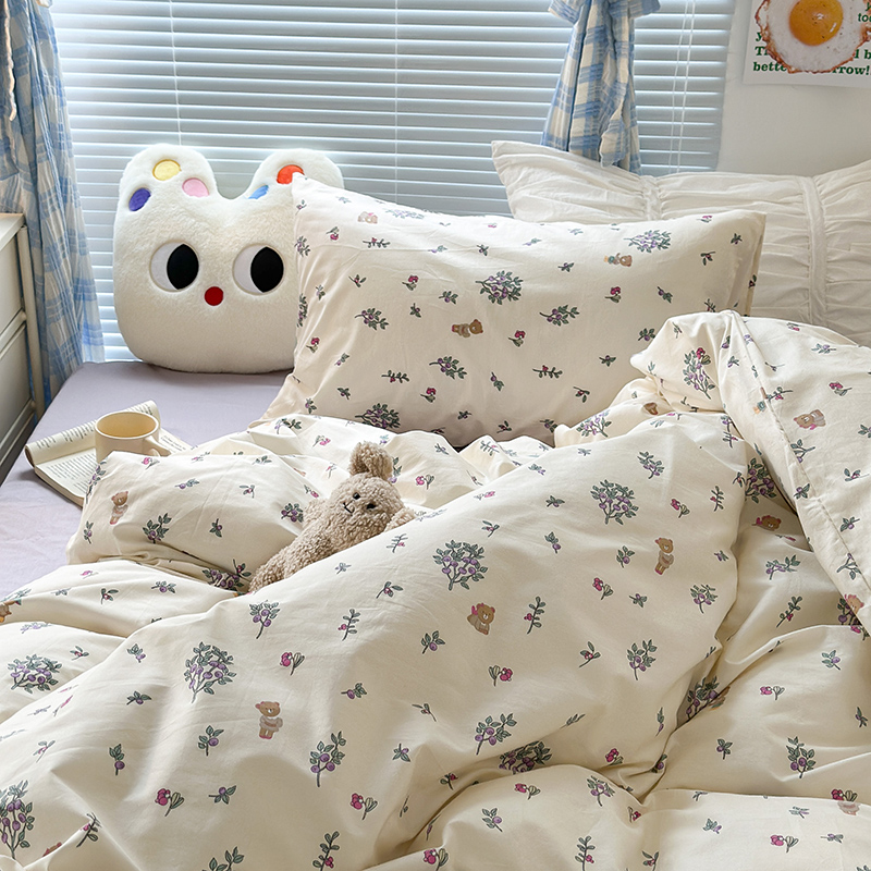 昔可家纺 2023新款多巴胺卡通学生季全棉四件套 蓝莓小熊