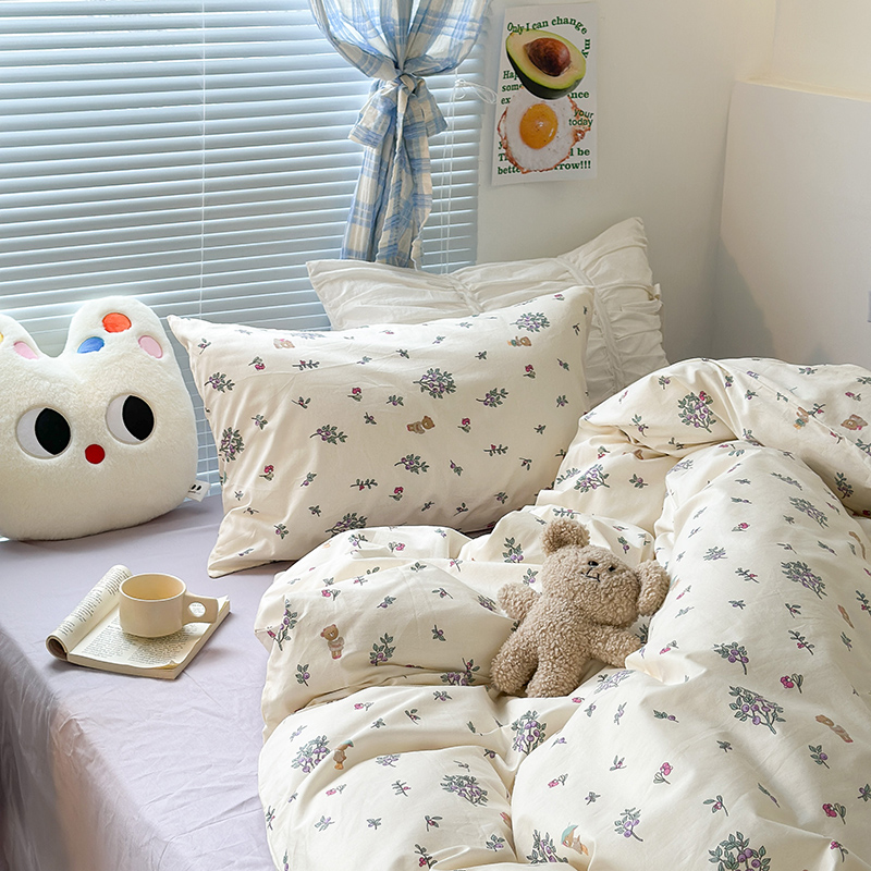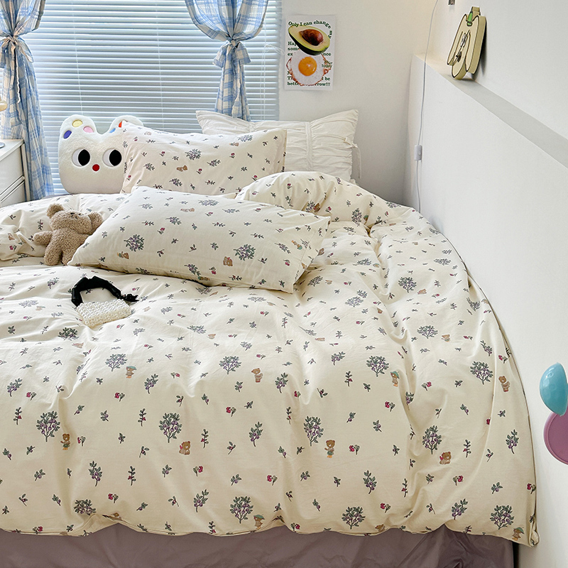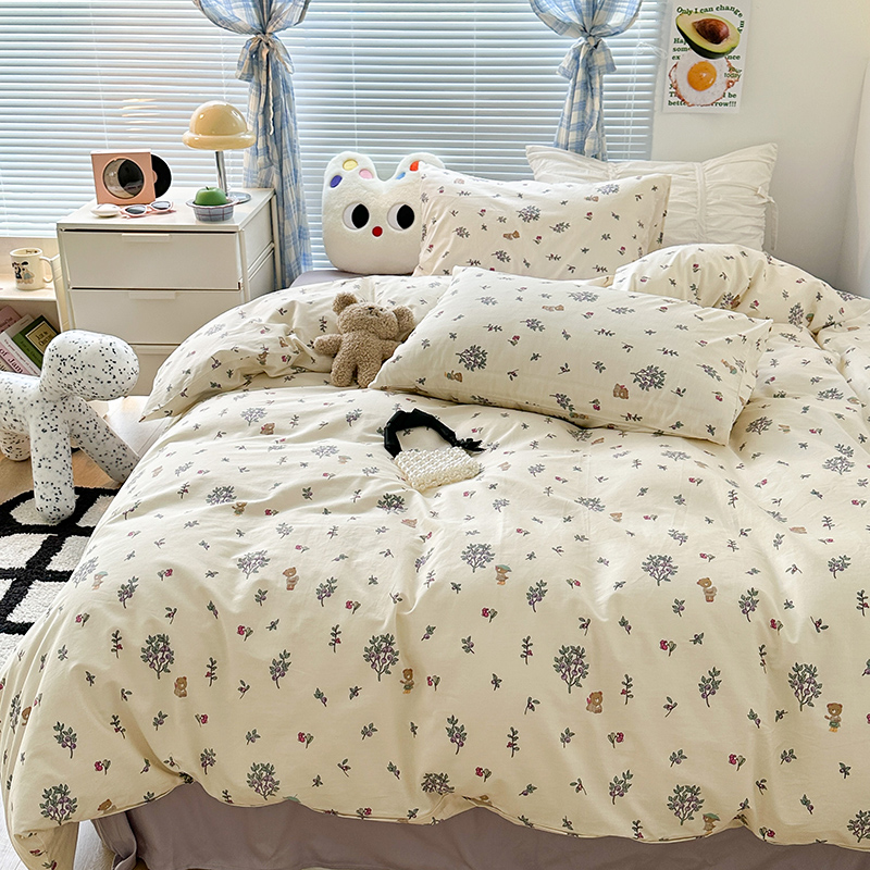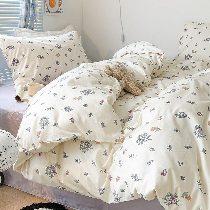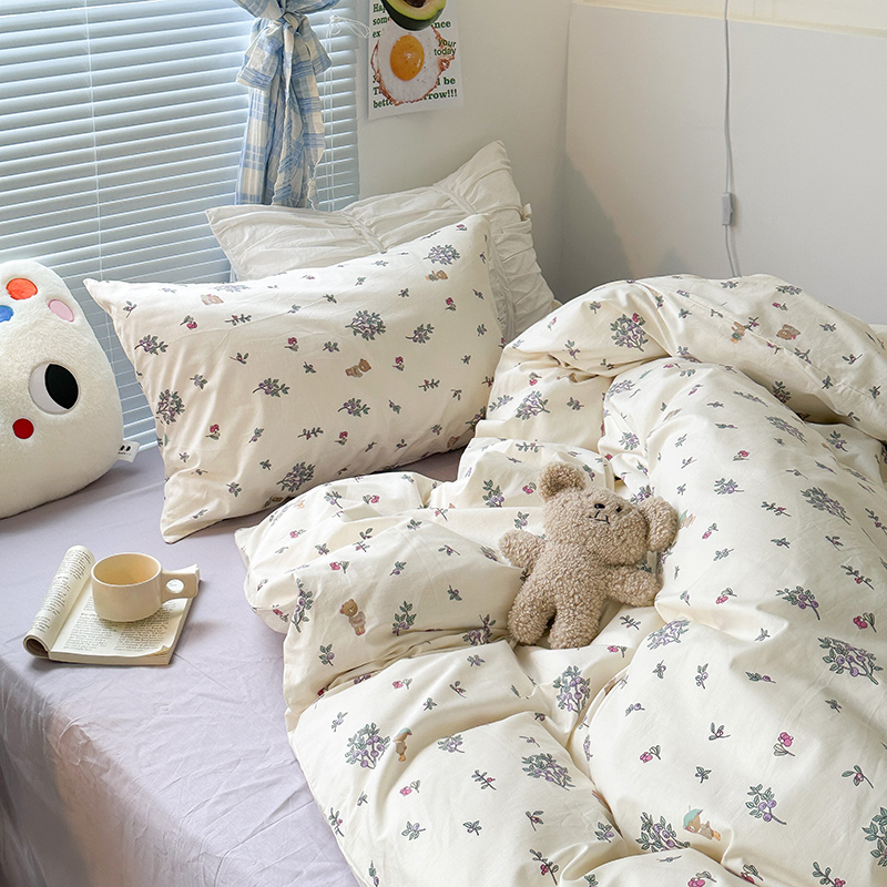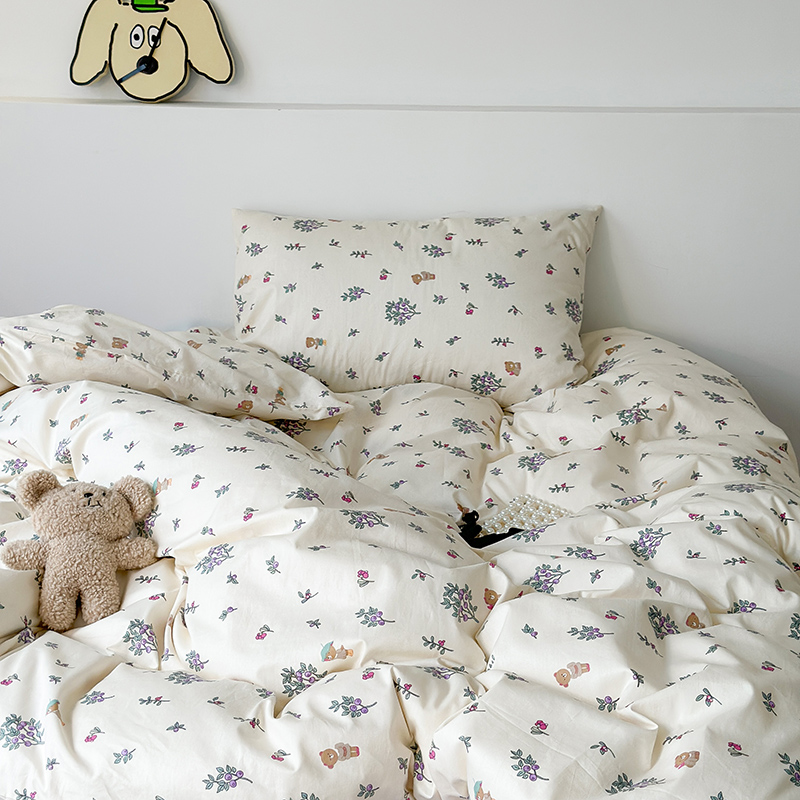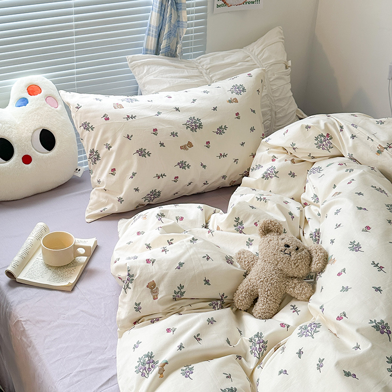 昔可家纺 2023新款多巴胺卡通学生季全棉四件套 蓝莓小熊