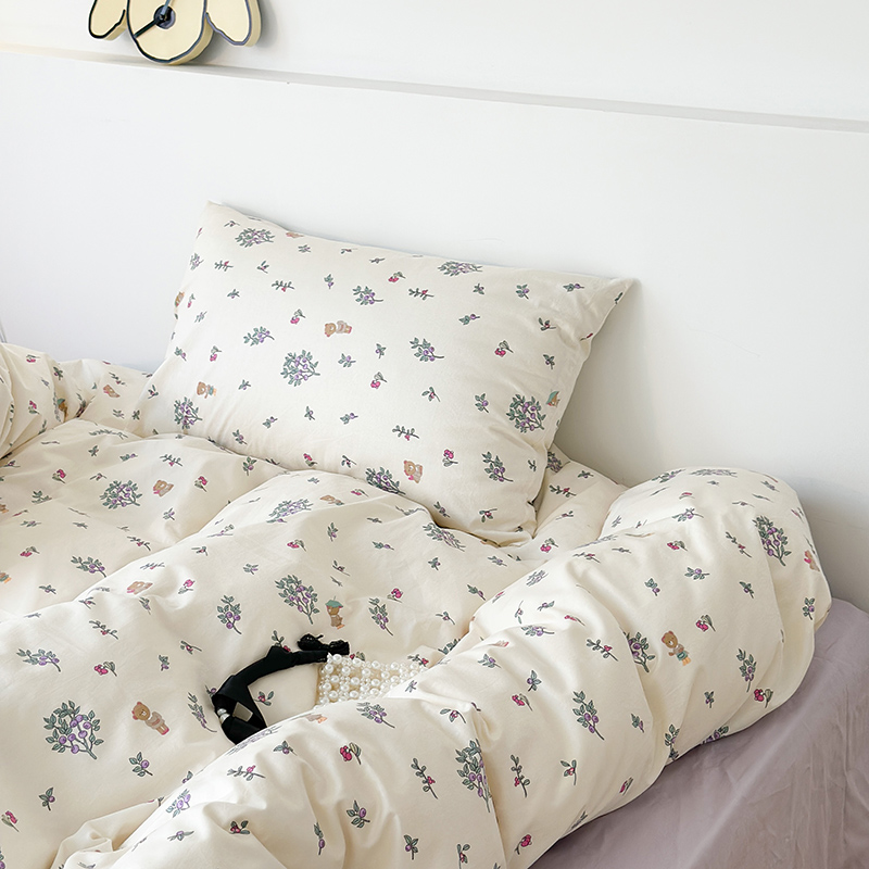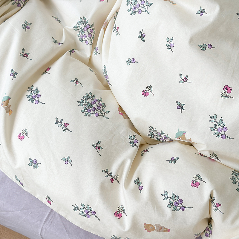 (总)昔可家纺 2023新款全棉小花系列四件套,柏林少女,小小的樱桃,紫色葡萄