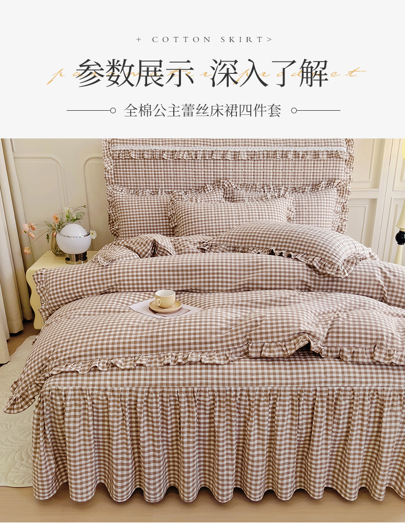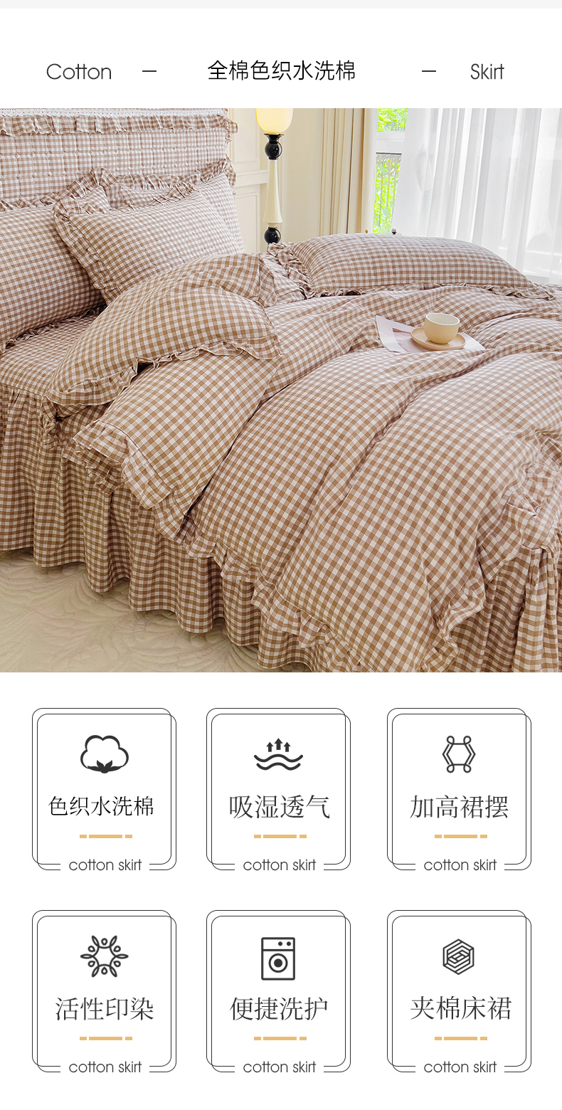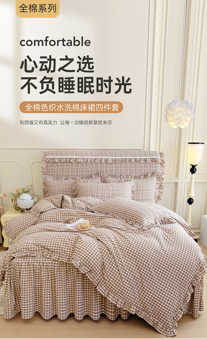当前位置: 91家纺网 > 商品网购 > 床品套件 > 四件套 > 水洗棉四件套 > 十个点 2024新款色织水洗棉韵格系列床裙款四件套 米小格