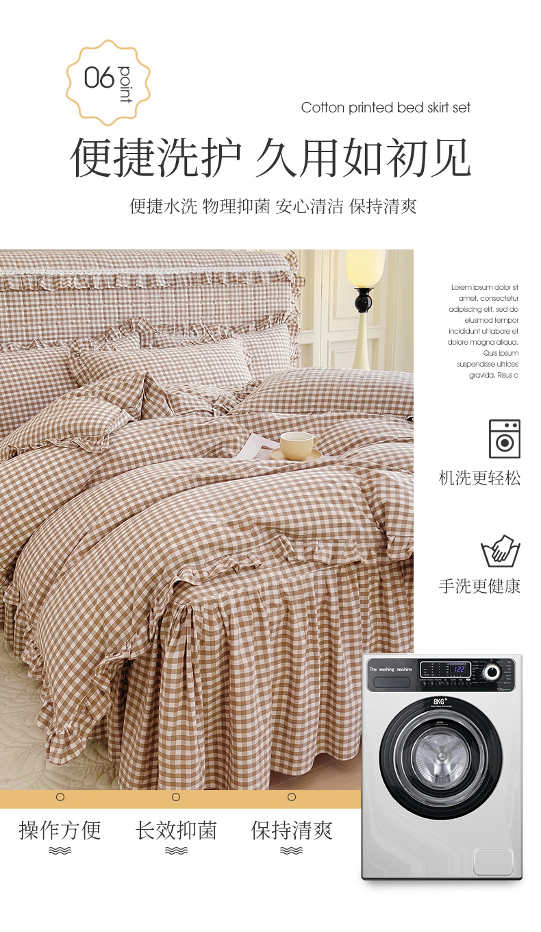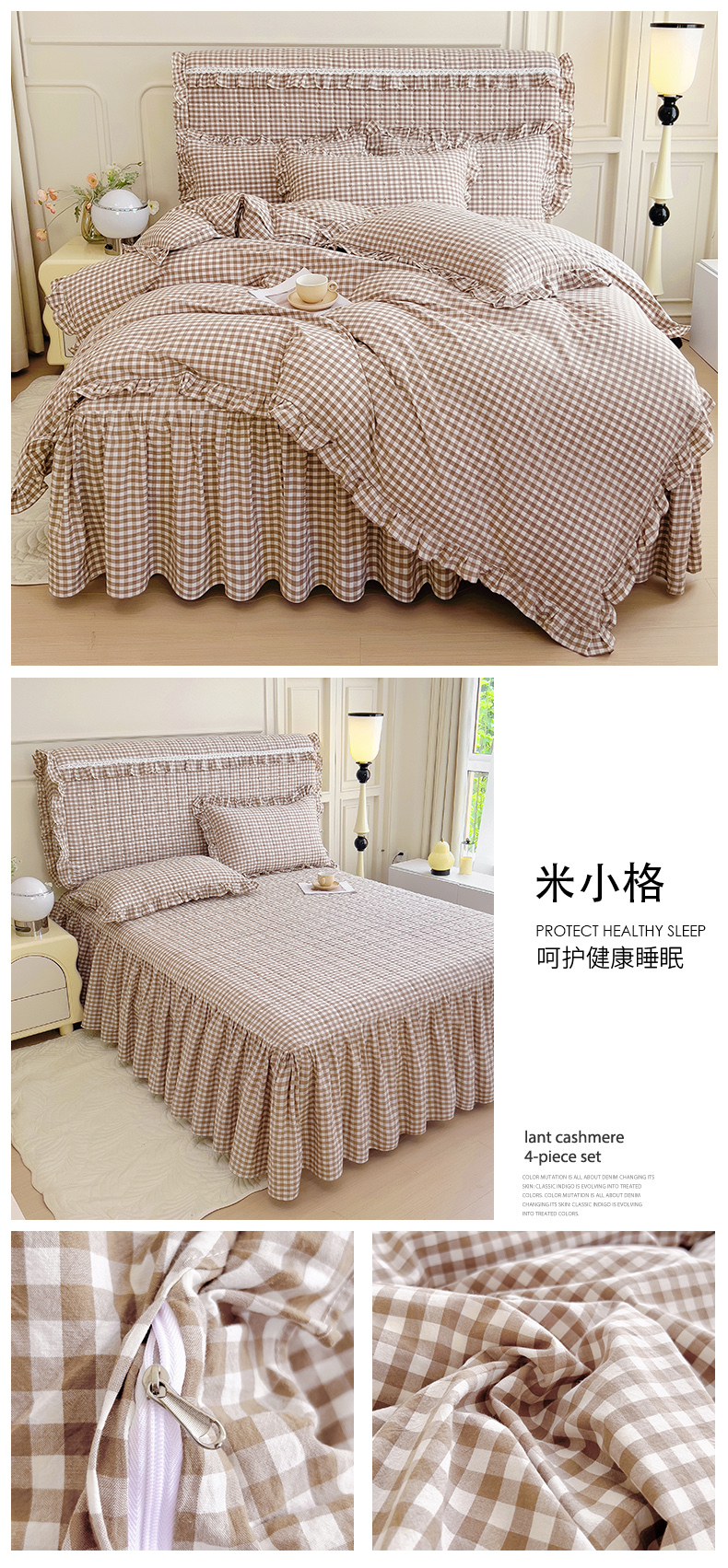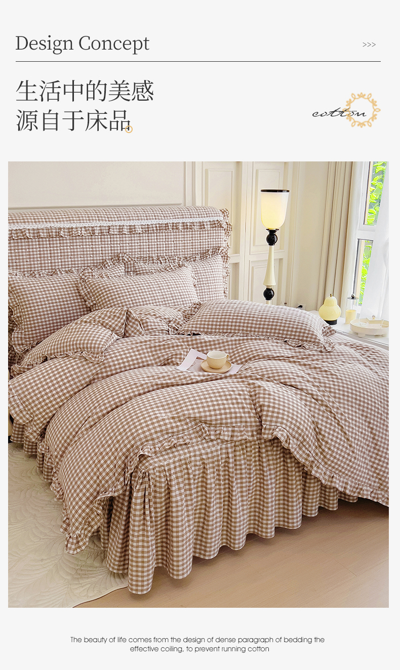 当前位置: 91家纺网 > 商品网购 > 床品套件 > 四件套 > 水洗棉四件套 > 十个点 2024新款色织水洗棉韵格系列床裙款四件套 米小格