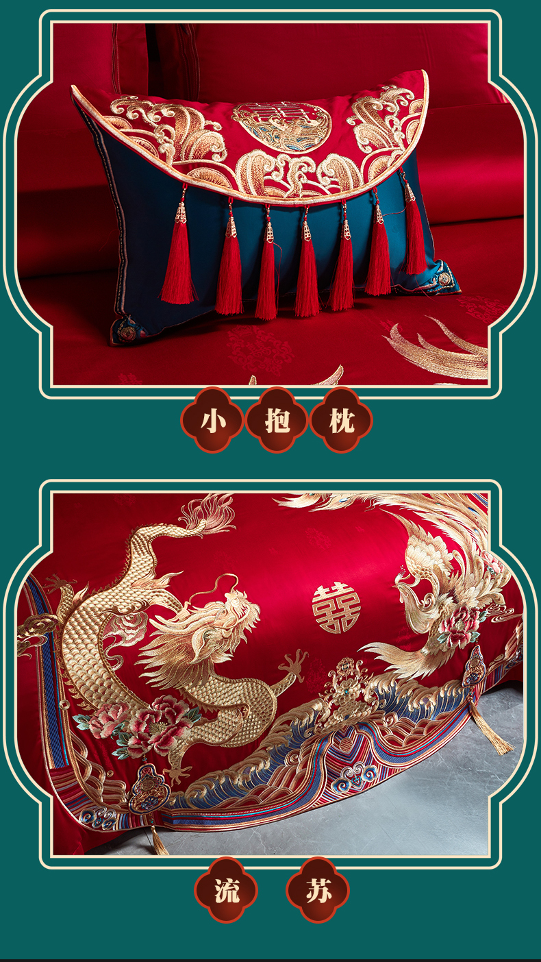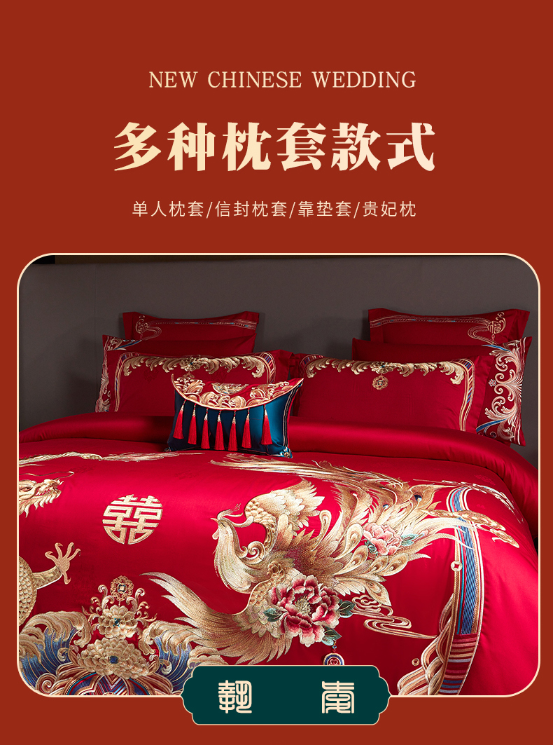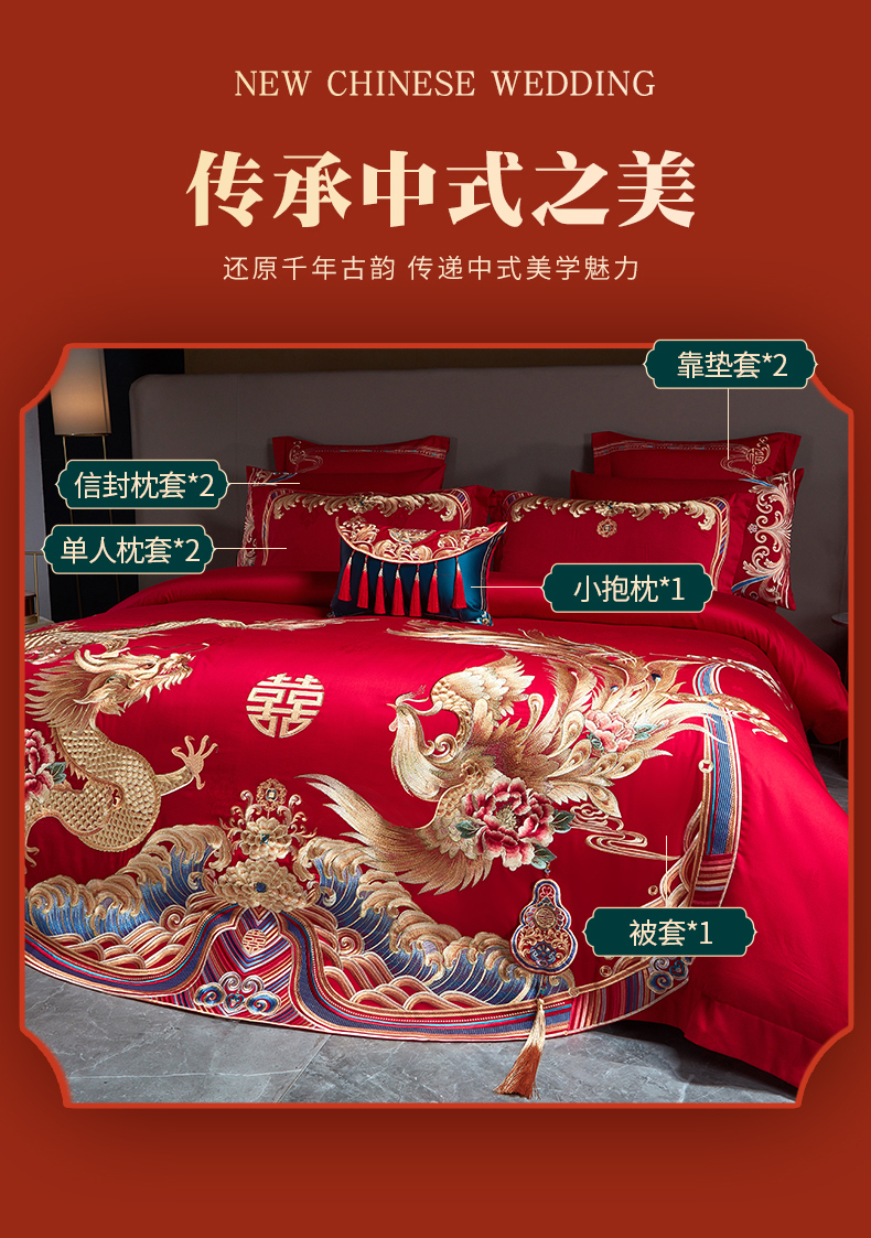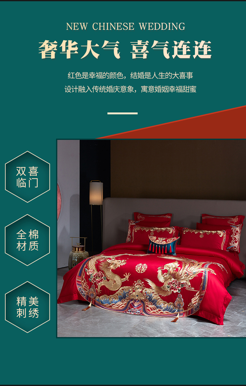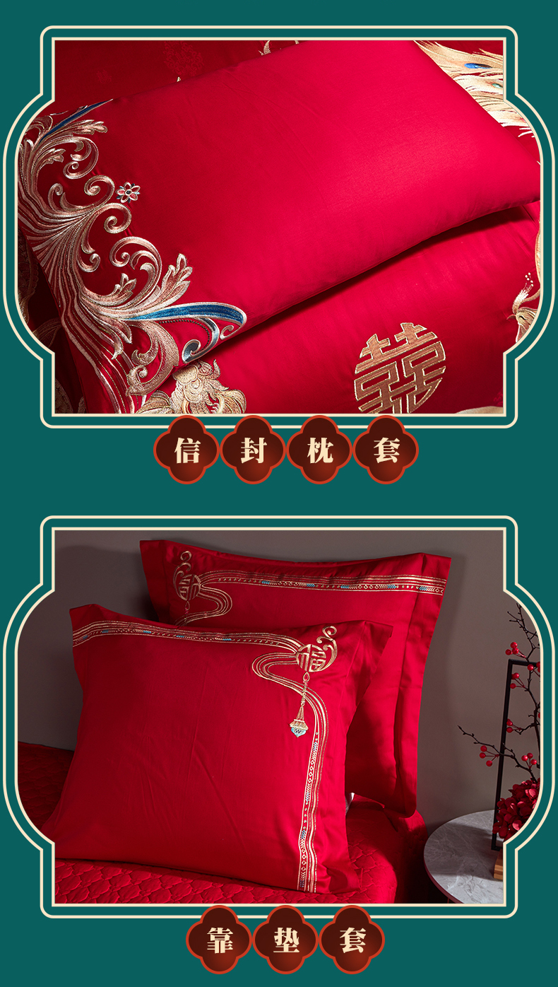 当前位置: 91家纺网 > 商品网购 > 床品套件 > 四件套 > 婚庆四件套 > 宏羽纺 2023新款高支高密全棉贡缎提花婚庆套件 富丽堂皇