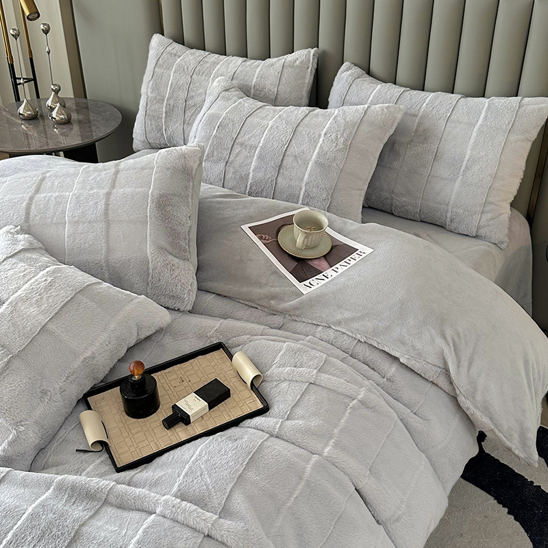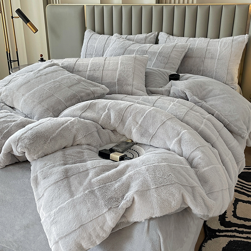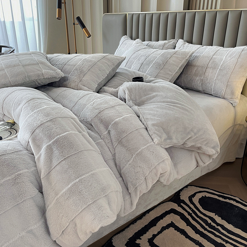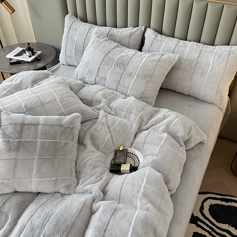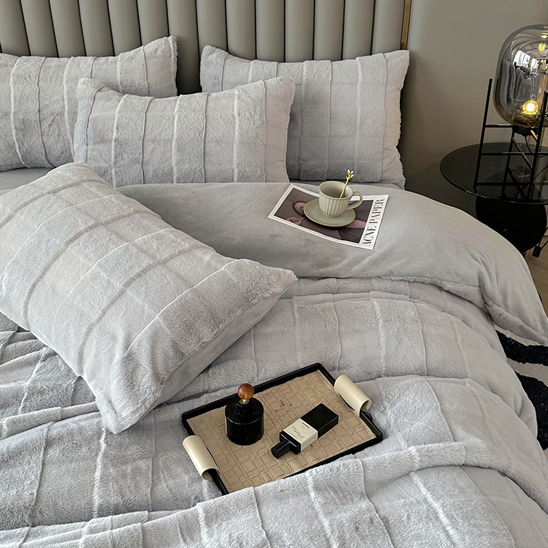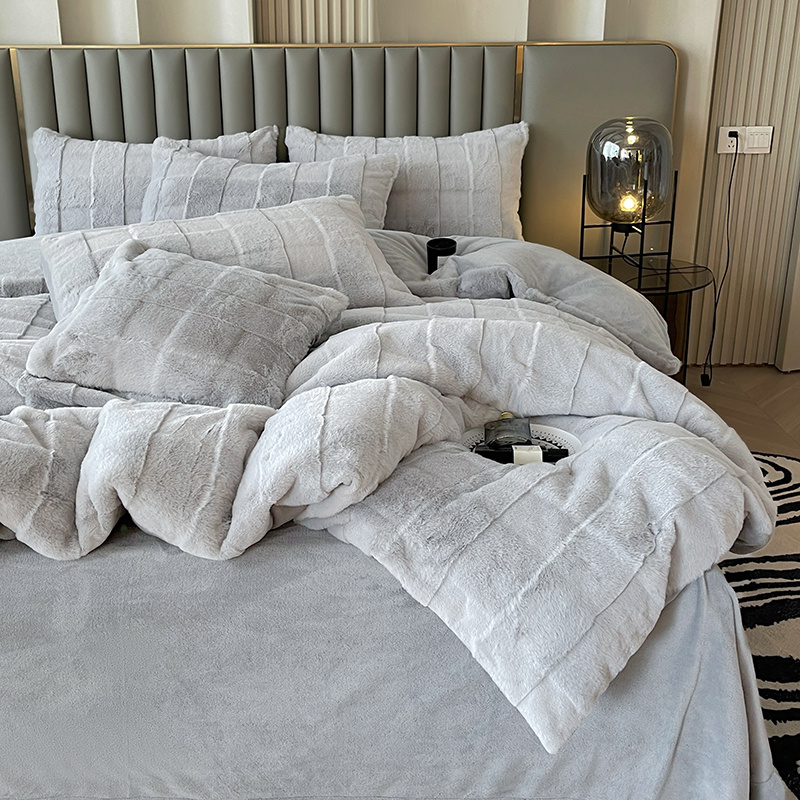 当前位置: 91家纺网 > 商品网购 > 床品套件 > 四件套 > 牛奶绒四件套 > 铠畅家纺 2023爆款9斤獭兔毛绒兔兔绒剪花牛奶绒四件套-大格子系列 大格子灰色