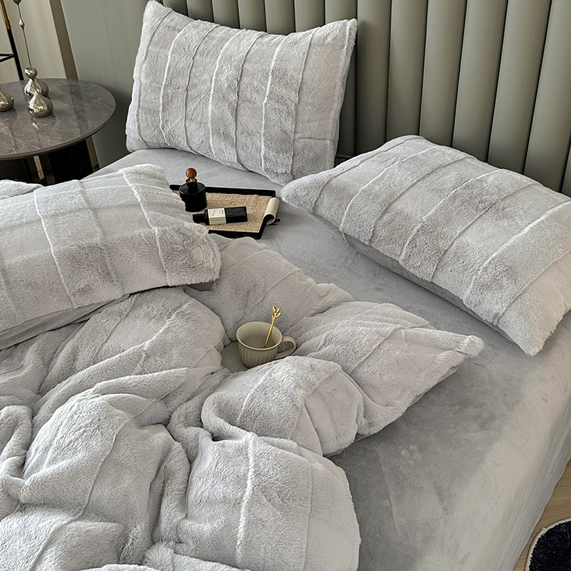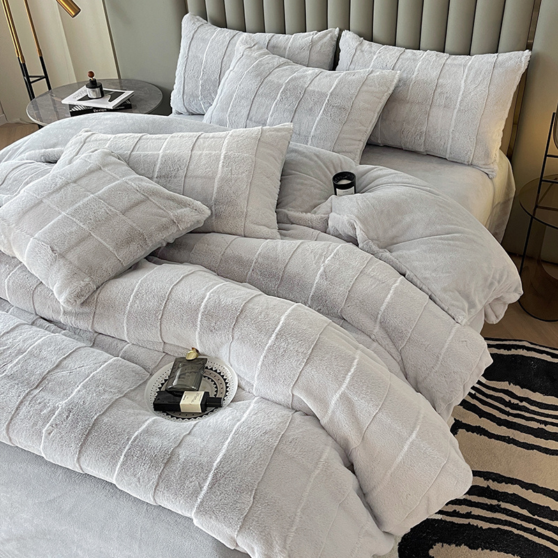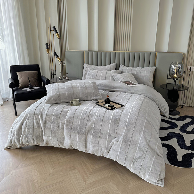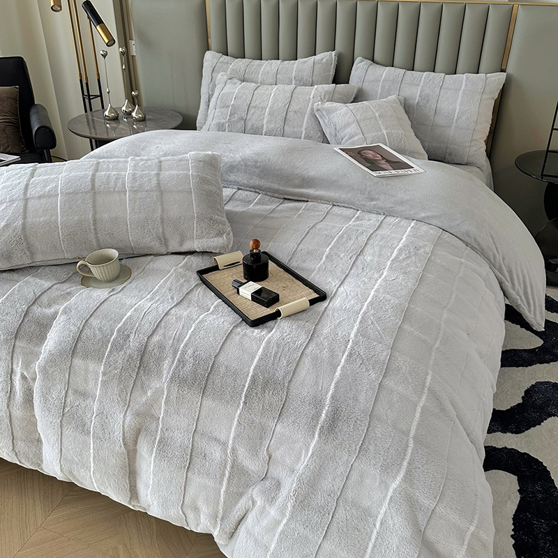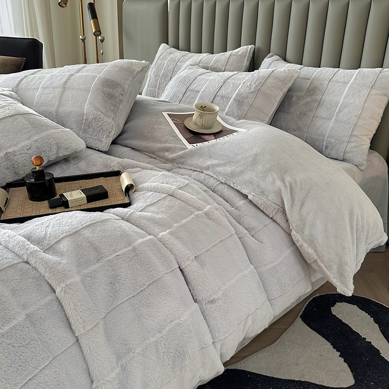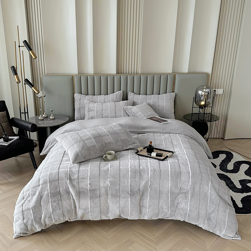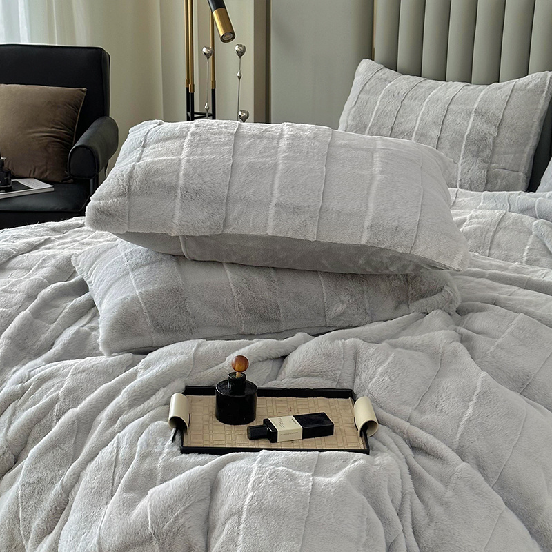 当前位置: 91家纺网 > 商品网购 > 床品套件 > 四件套 > 牛奶绒四件套 > 铠畅家纺 2023爆款9斤獭兔毛绒兔兔绒剪花牛奶绒四件套-大格子系列 大格子灰色