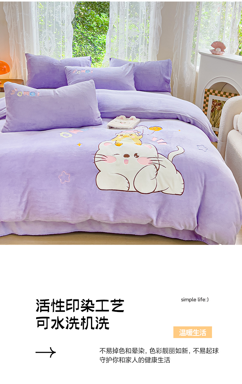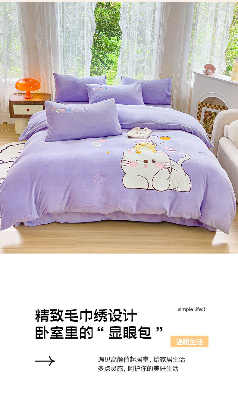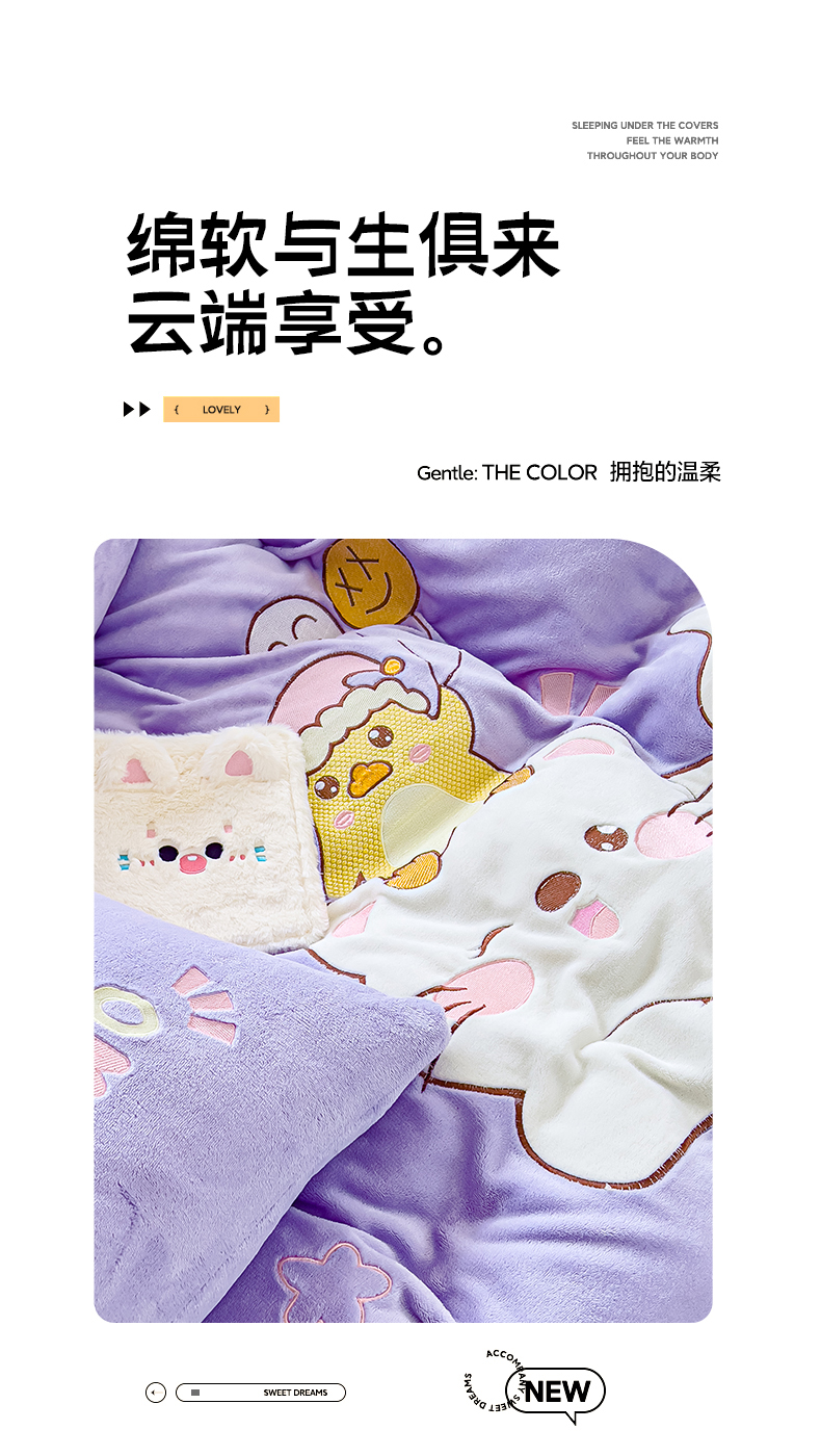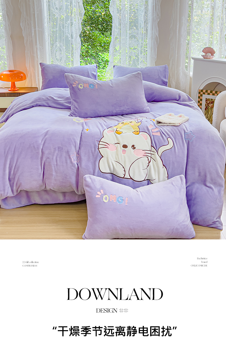 商品名称:米瑞娜 2024新款贴布绣牛奶绒四件套 好伙伴-紫