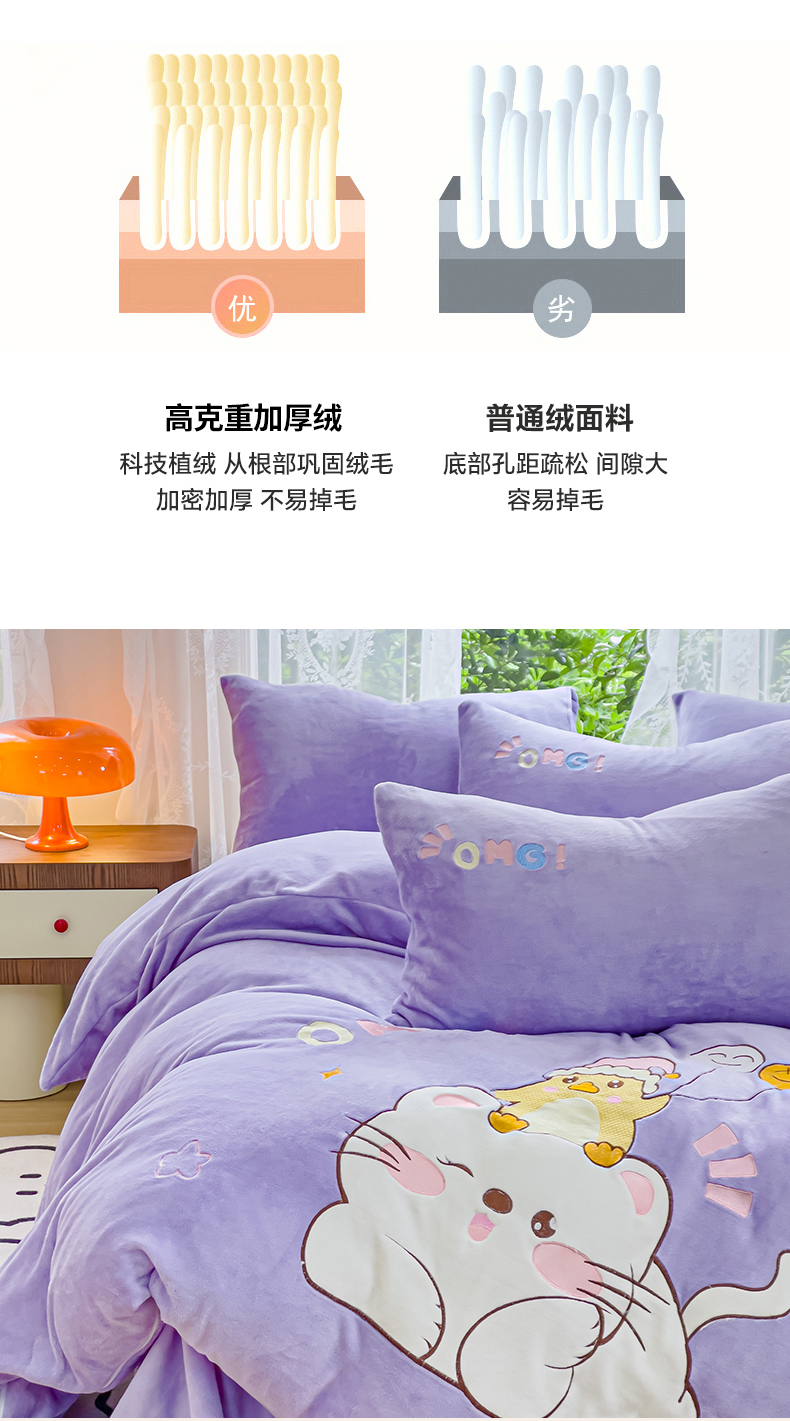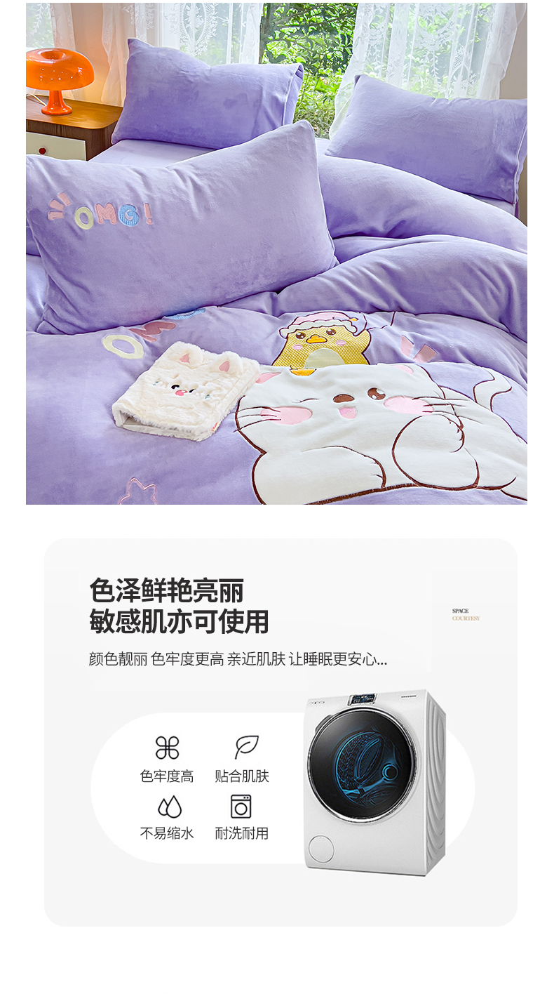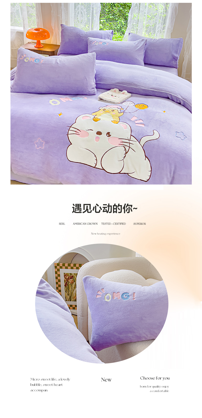商品名称:米瑞娜 2024新款贴布绣牛奶绒四件套 好伙伴-紫