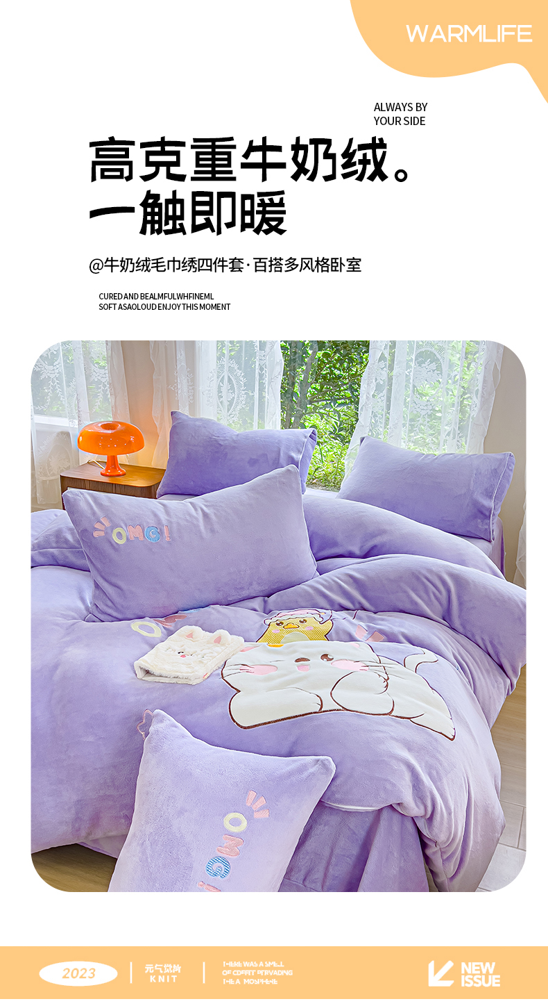 米瑞娜 2024新款贴布绣牛奶绒四件套 好伙伴-紫
