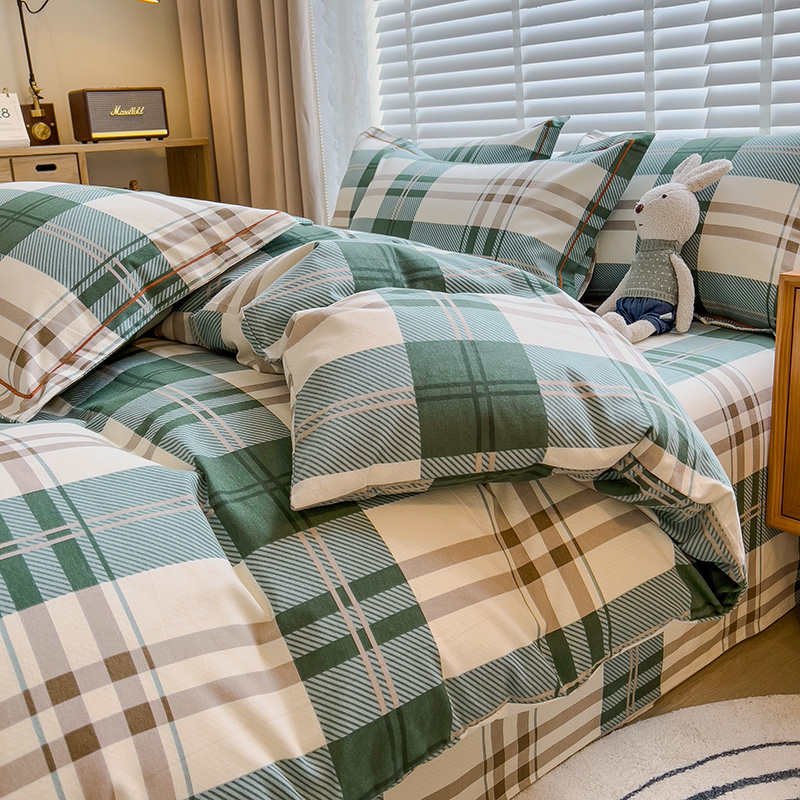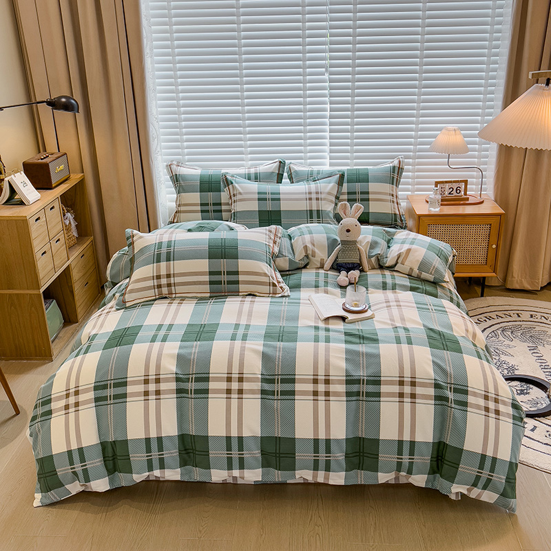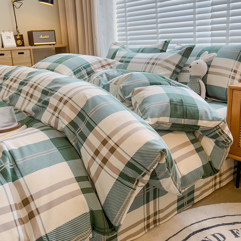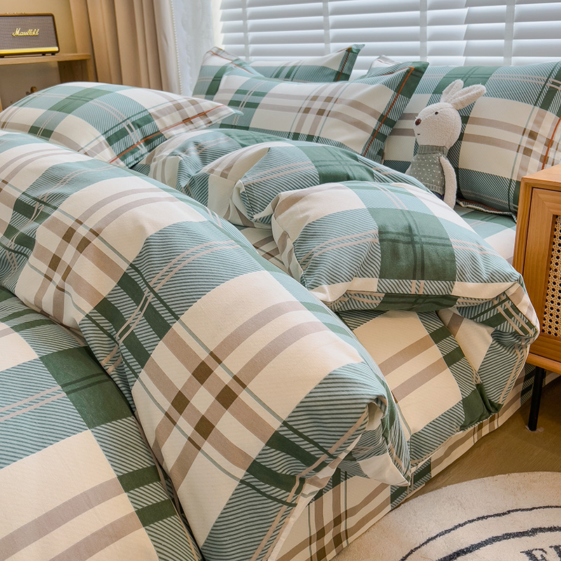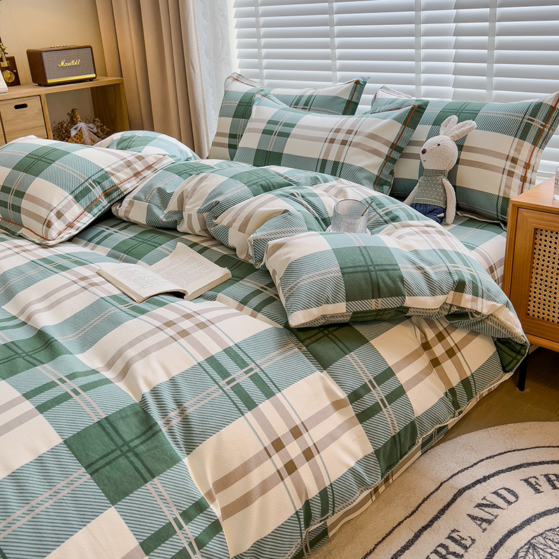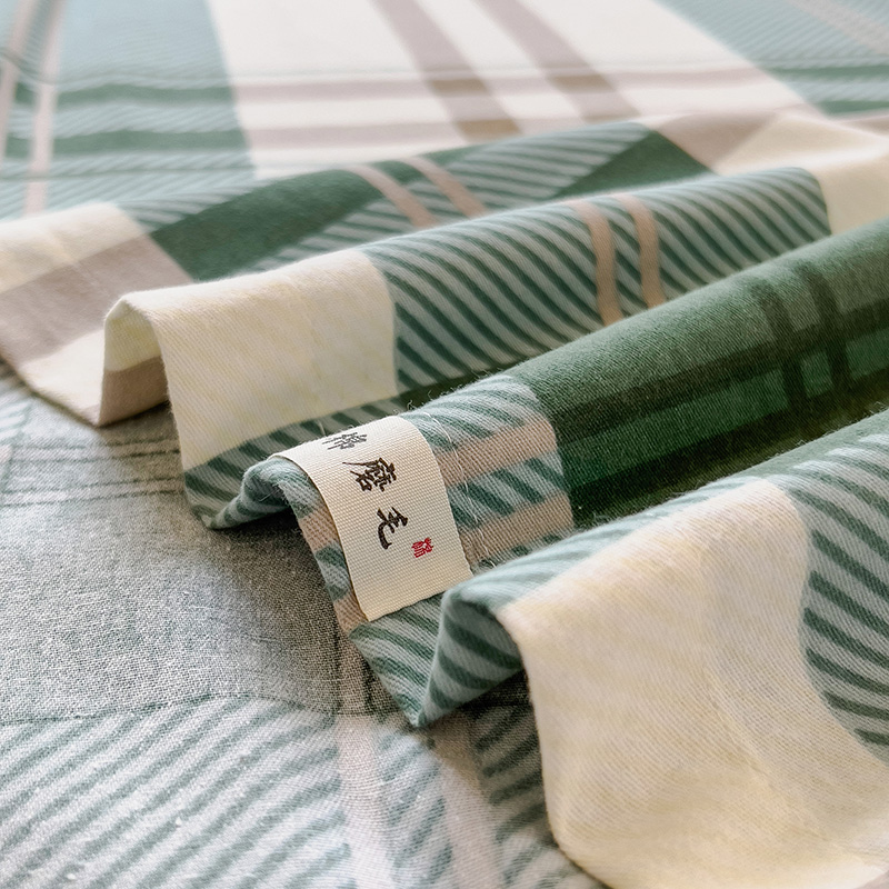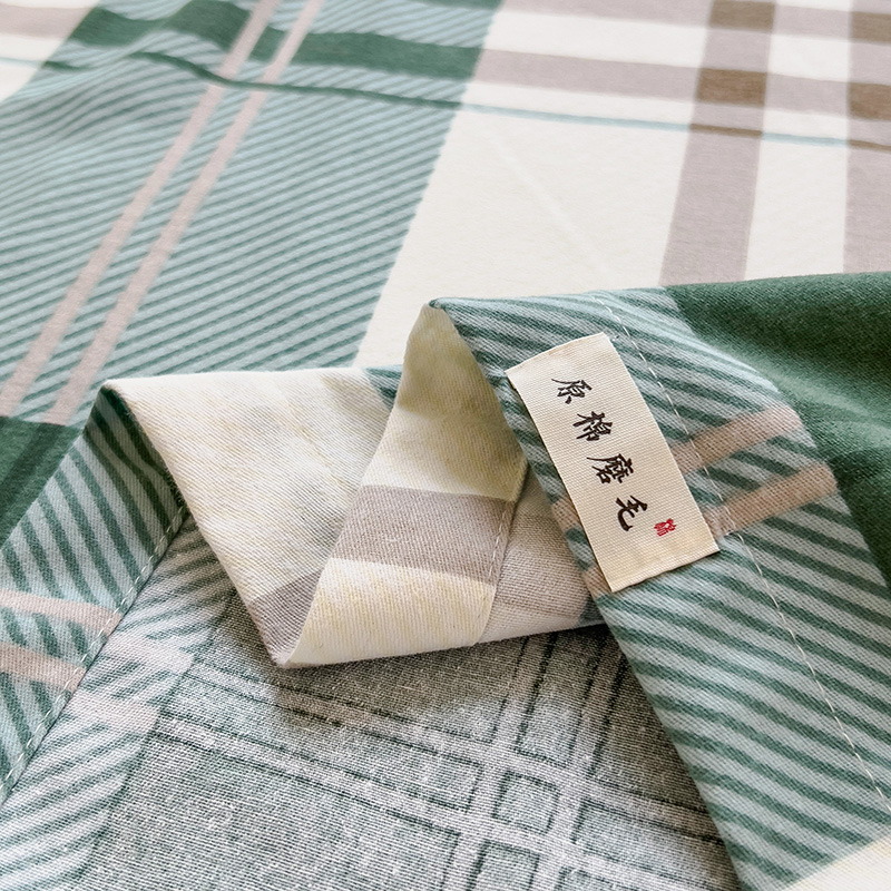 芃成家纺 2023新品磨毛被套 简约格-绿