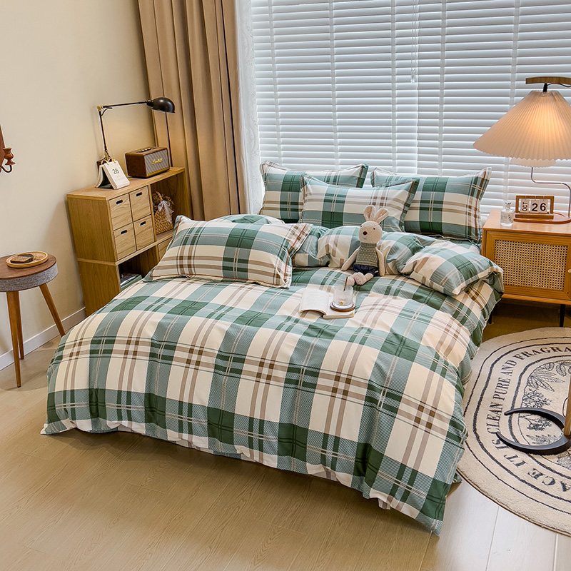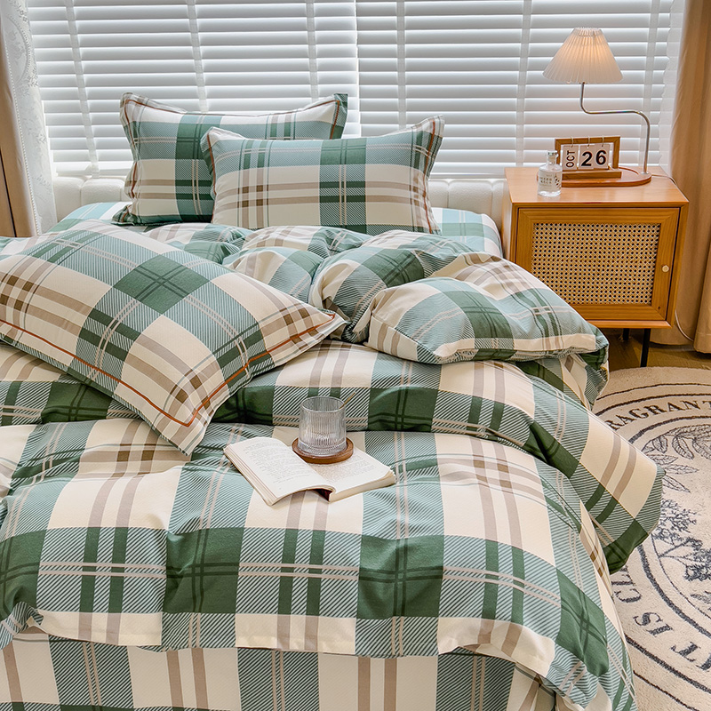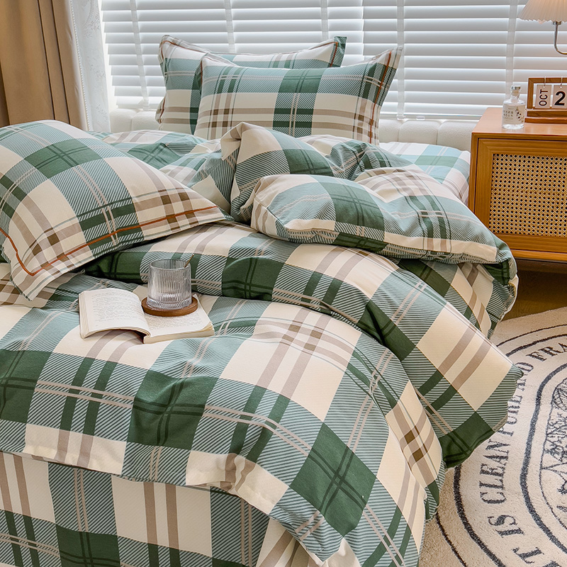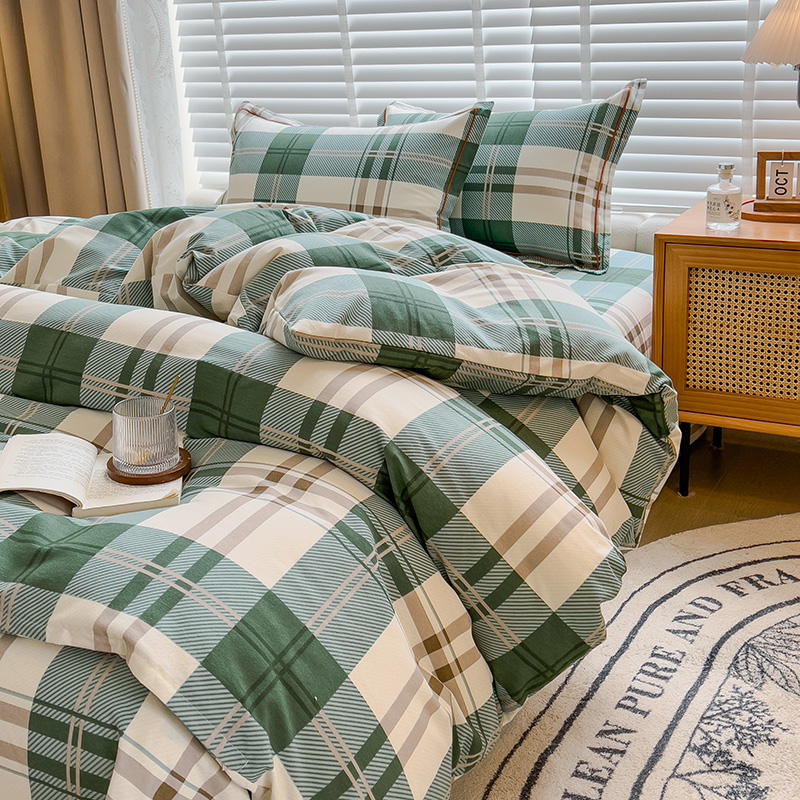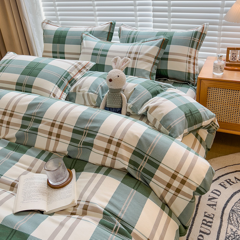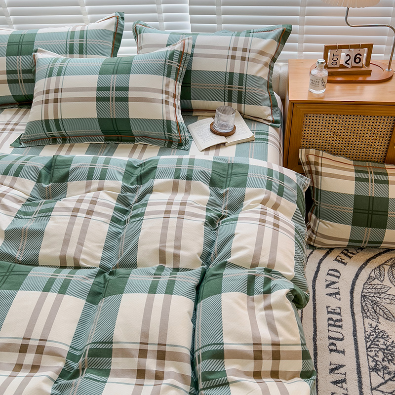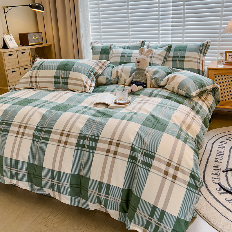 芃成家纺 2023新品磨毛被套 简约格-绿
