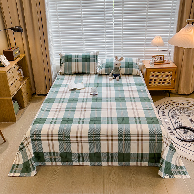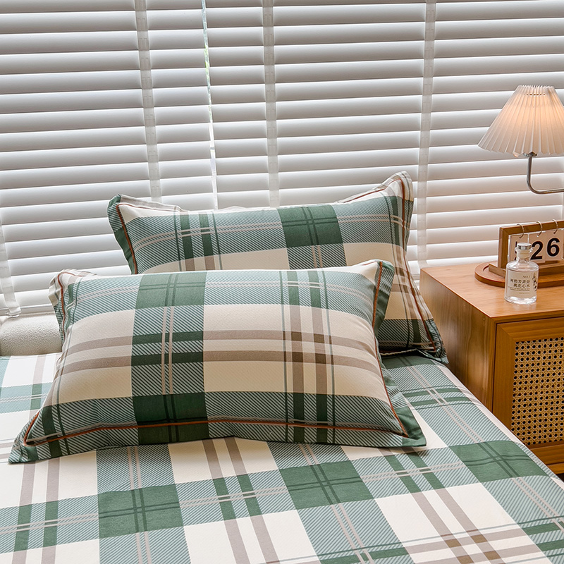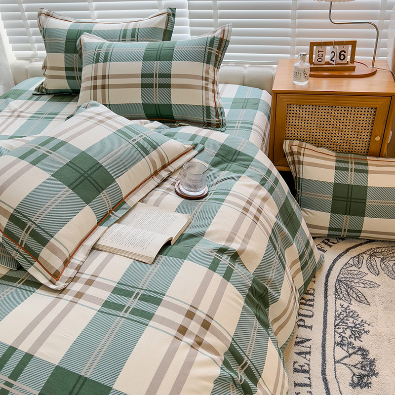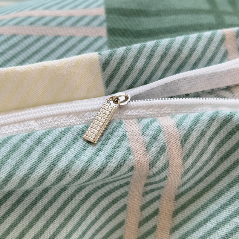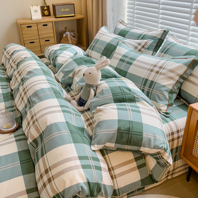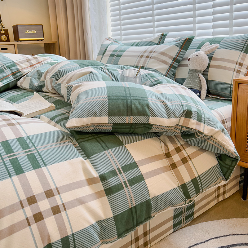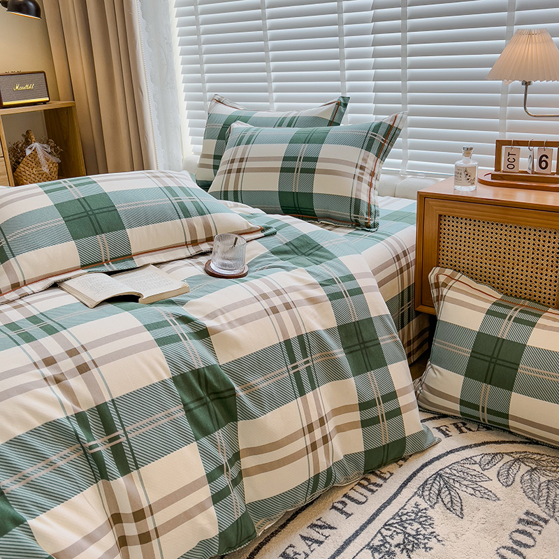 芃成家纺 2023新品磨毛被套 简约格-绿