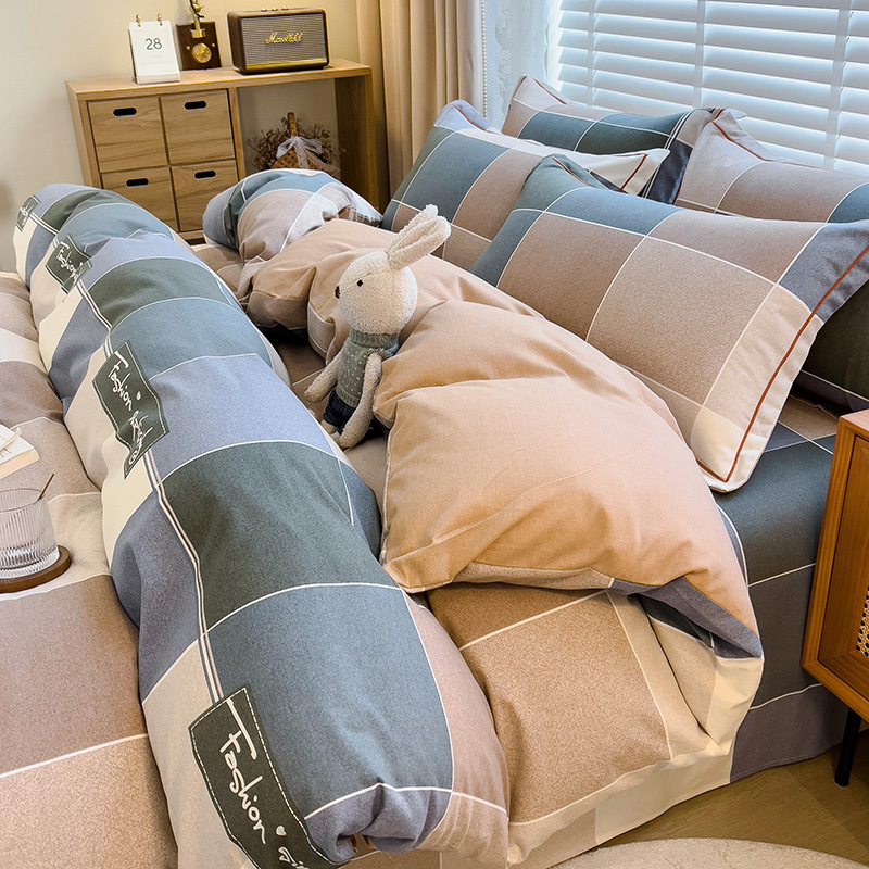 芃成家纺 2023新品磨毛被套 青春格-蓝