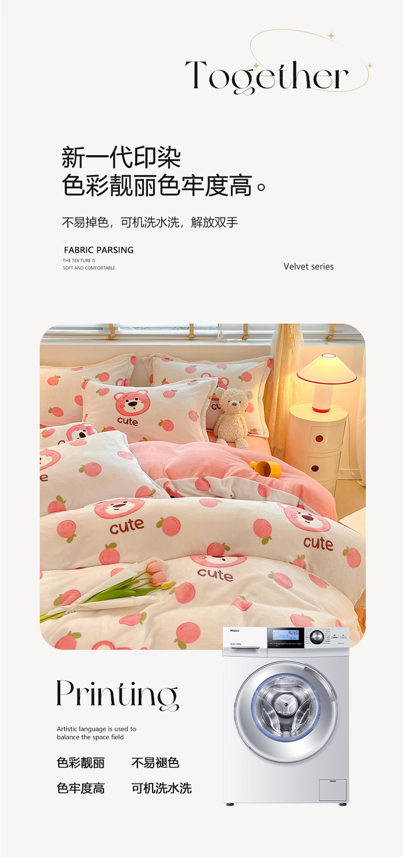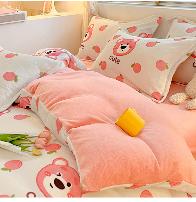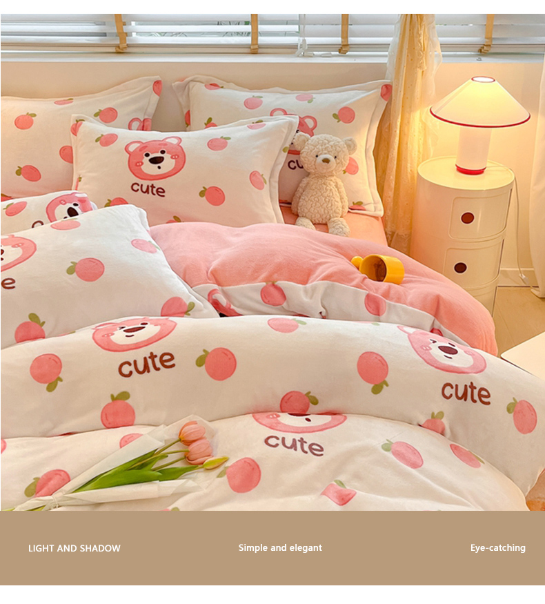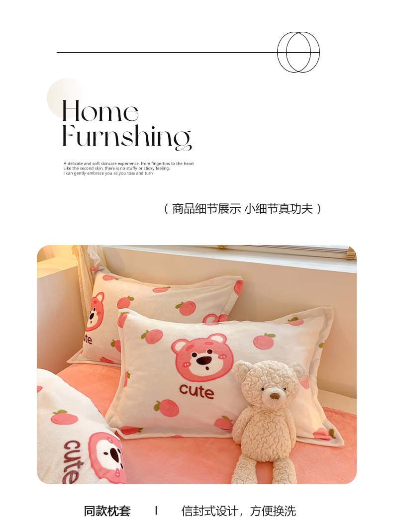 佰亿莱 2025直播新款印花小清新法莱绒牛奶绒四件套 橘子熊