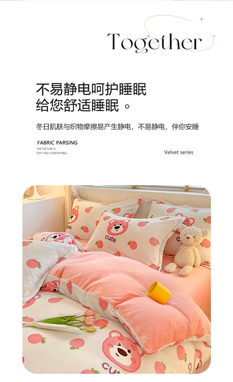 商品名称:佰亿莱 2025直播新款印花小清新法莱绒牛奶绒四件套 橘子熊