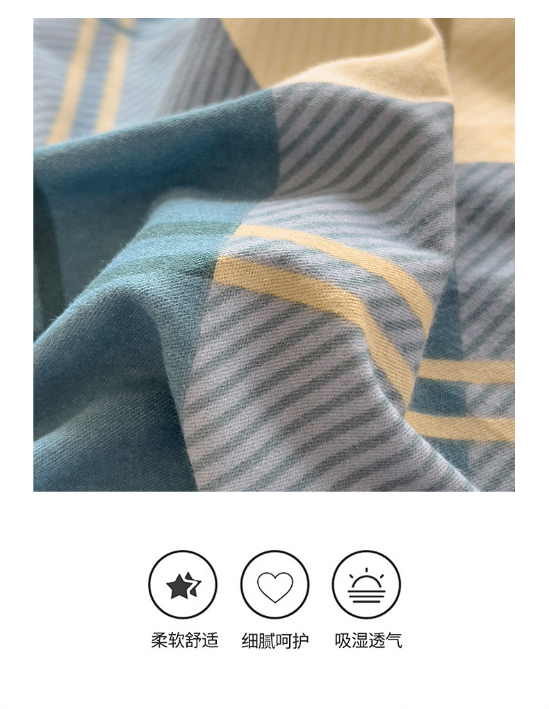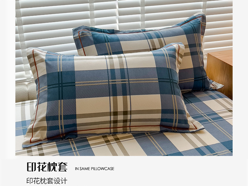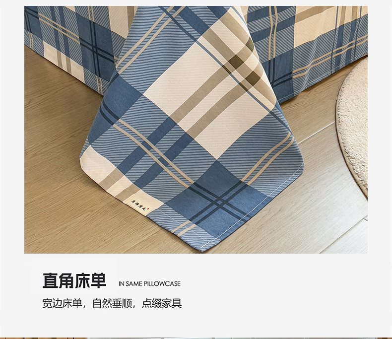商品名称:芃成家纺 2023新款磨毛四件套 简约格-蓝