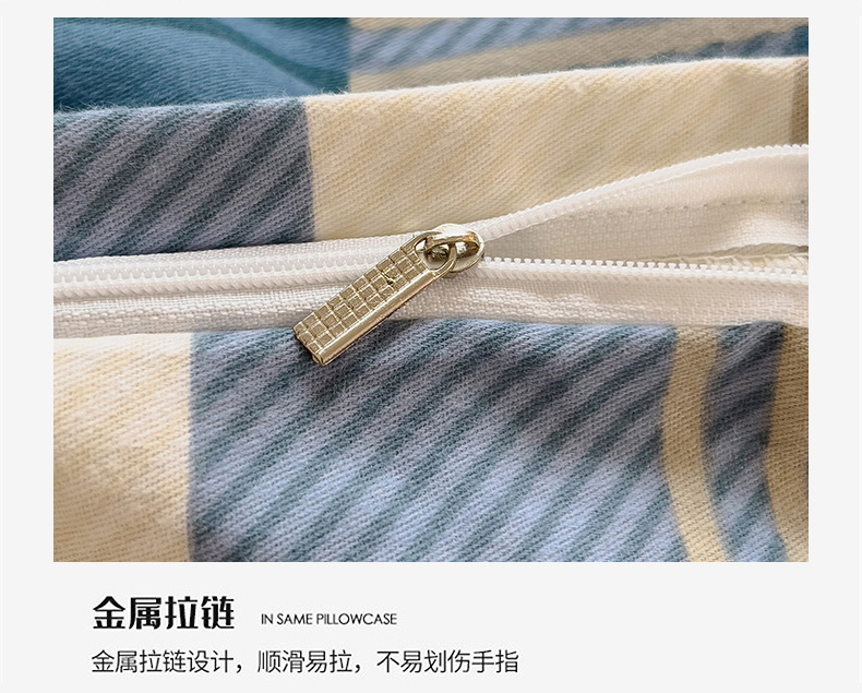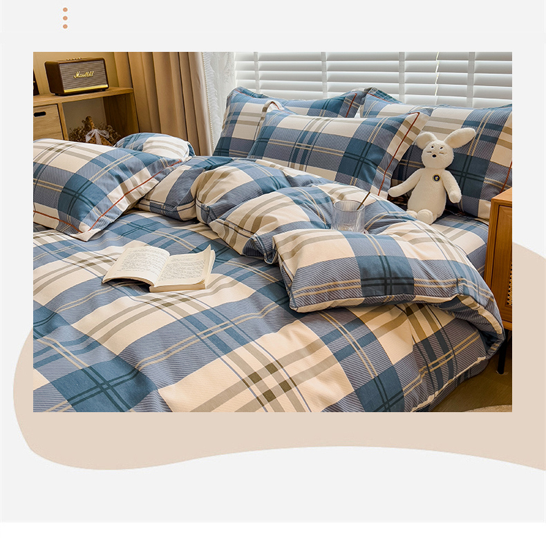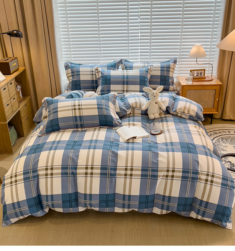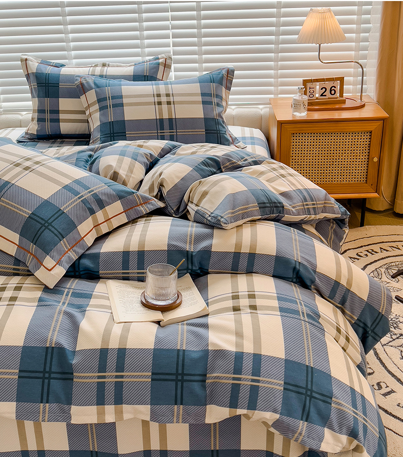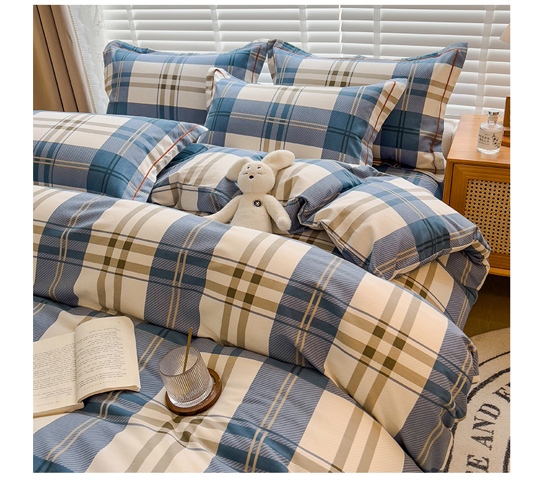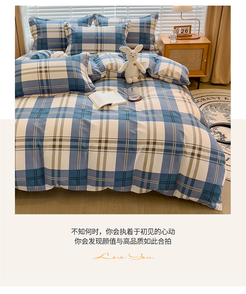 芃成家纺 2023新款磨毛四件套 简约格-蓝