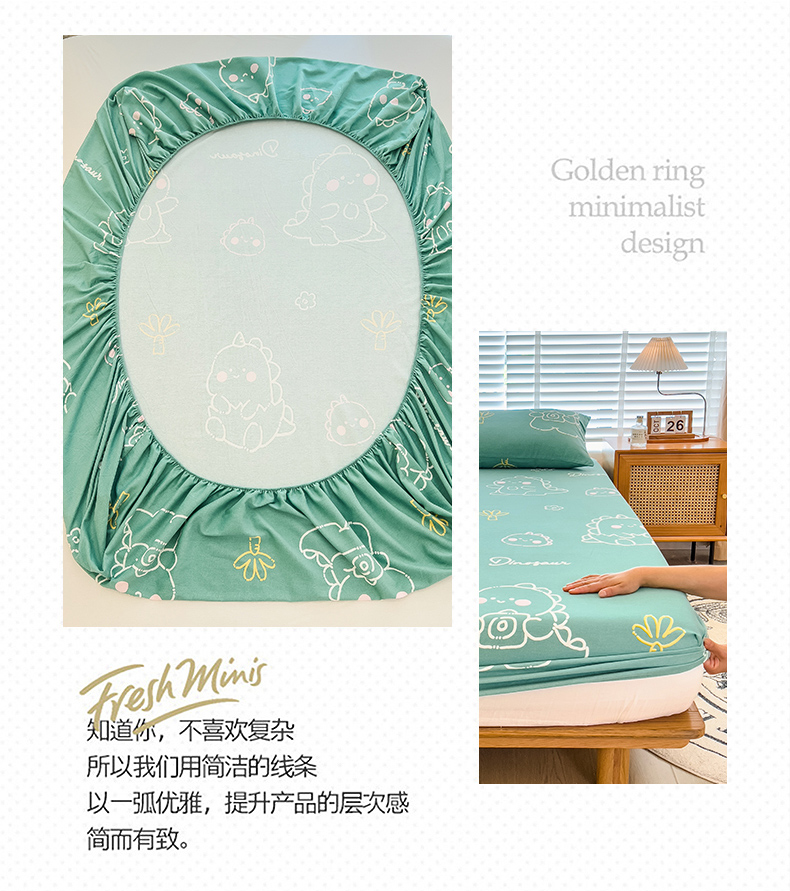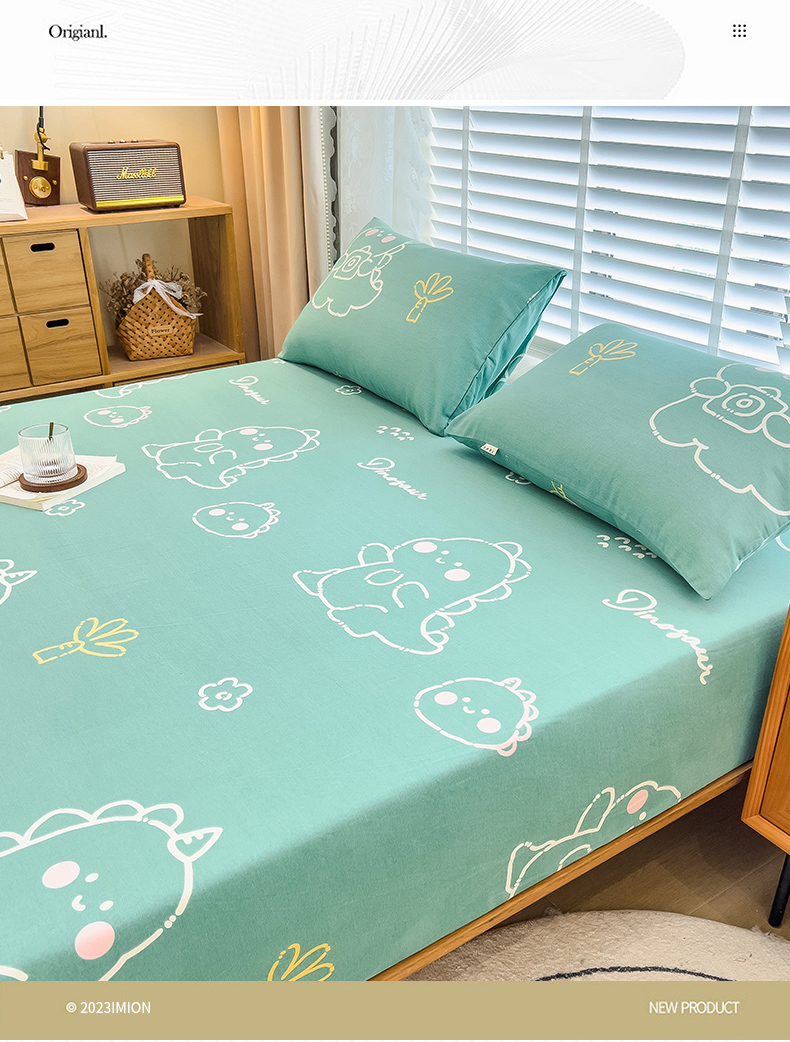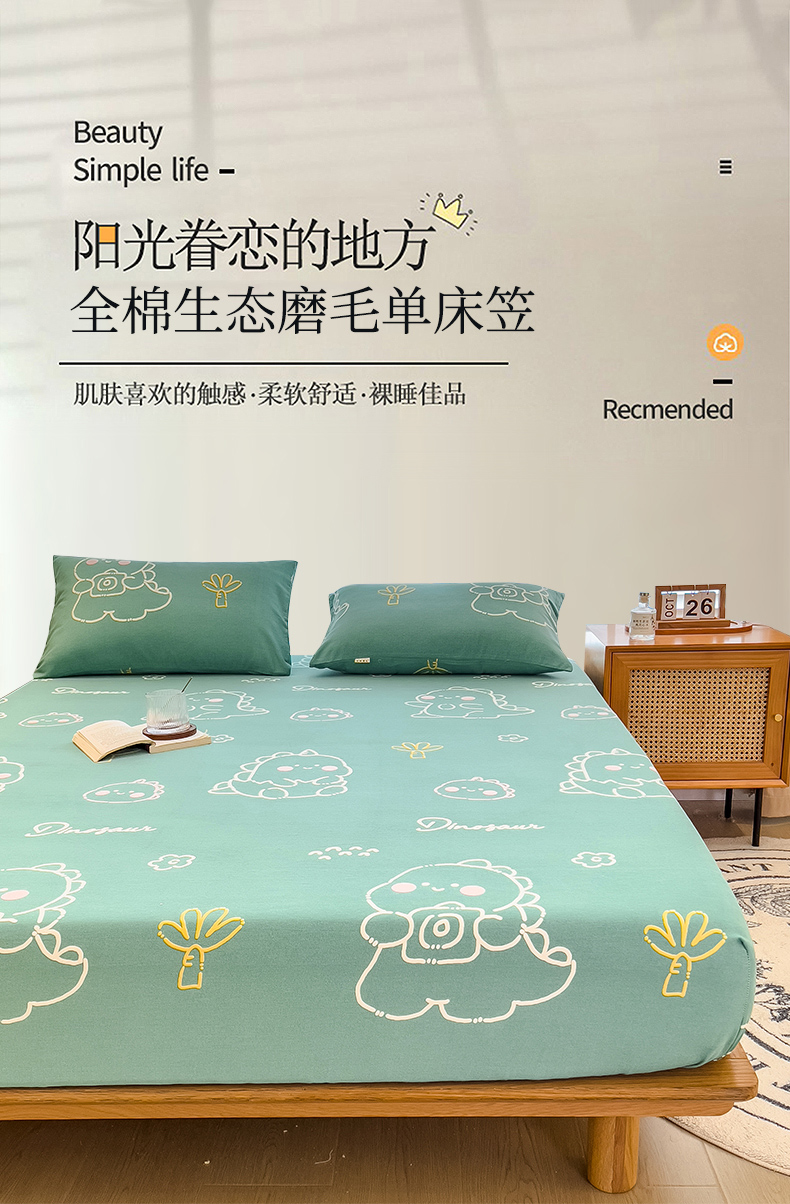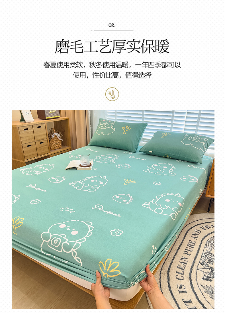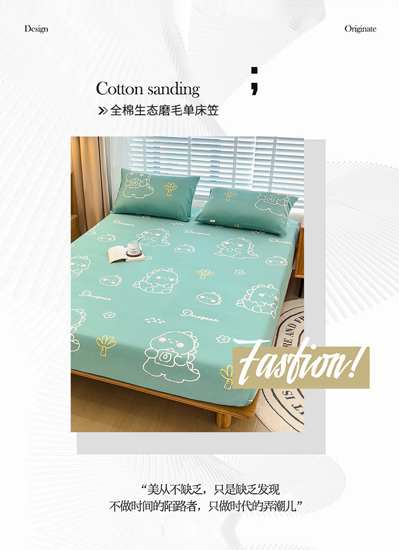 芃成家纺 2023新款磨毛单床笠 恐龙王国-绿