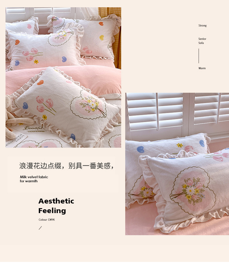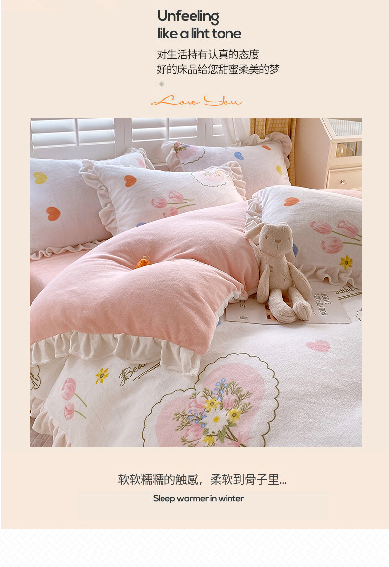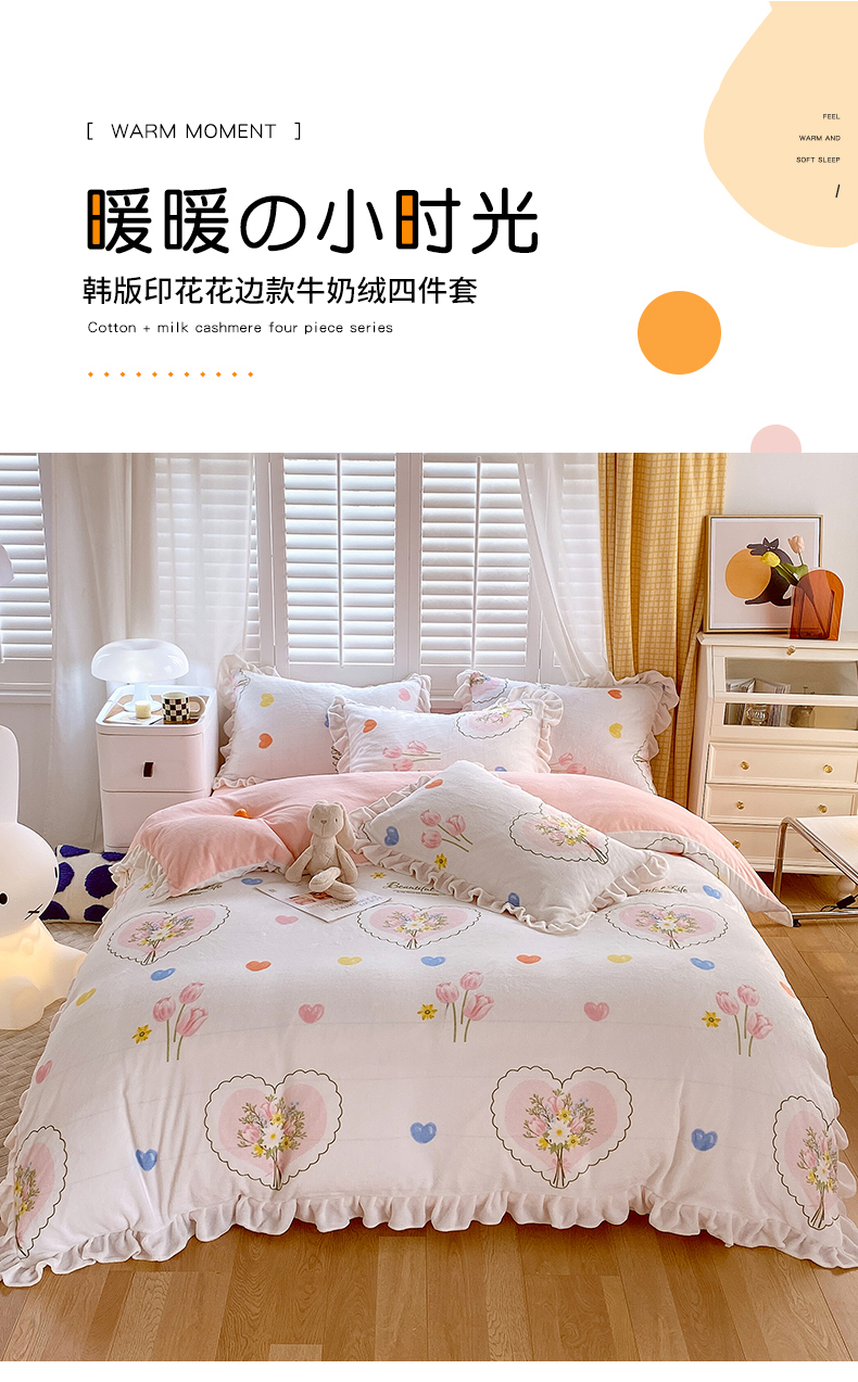 宜家坊 2023新款直播韩版印花花边款牛奶绒四件套 告白