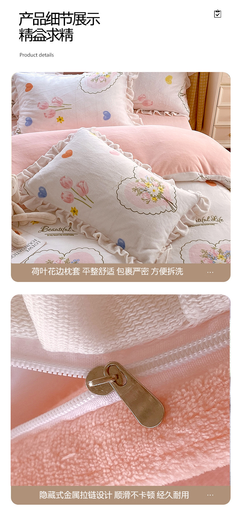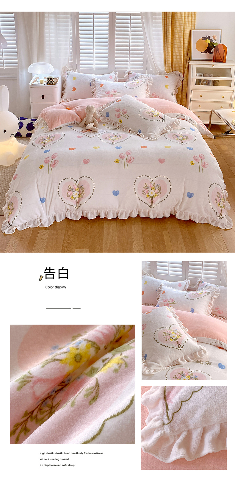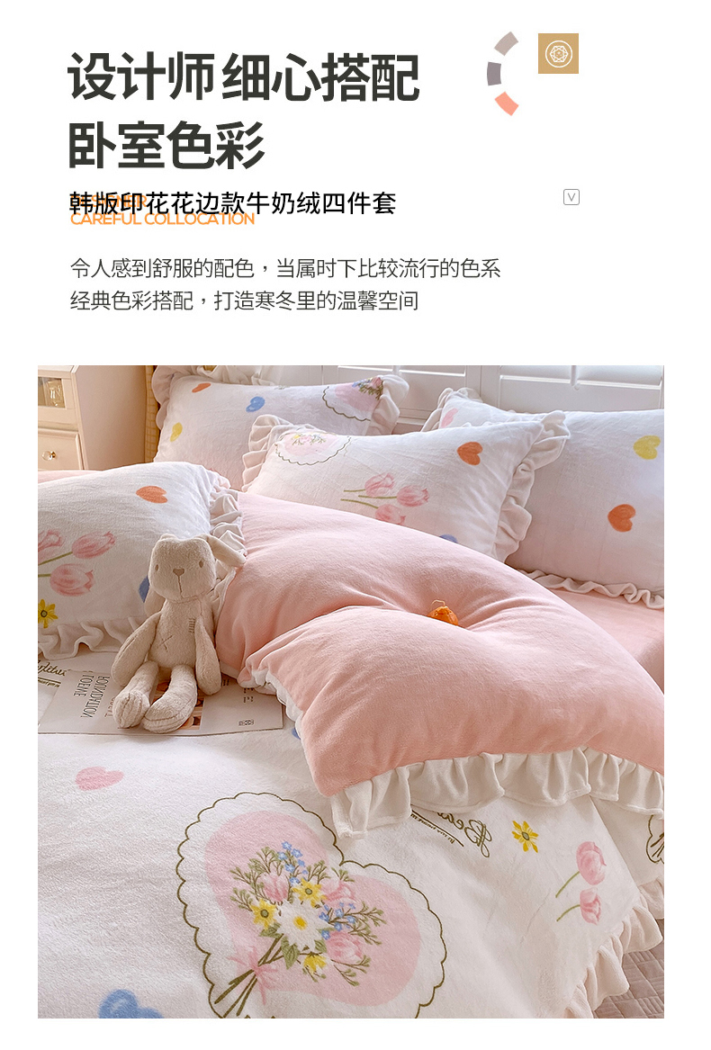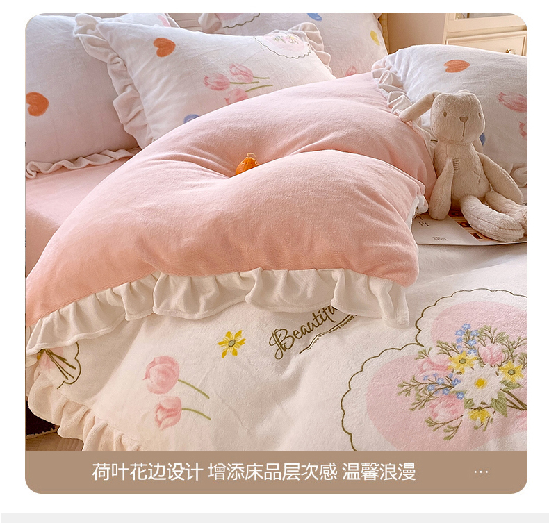 商品名称:宜家坊 2023新款直播韩版印花花边款牛奶绒四件套 告白