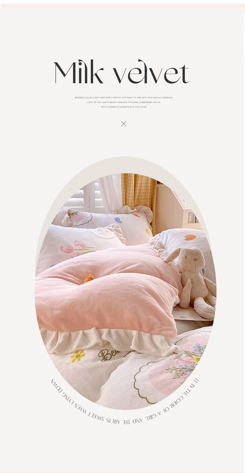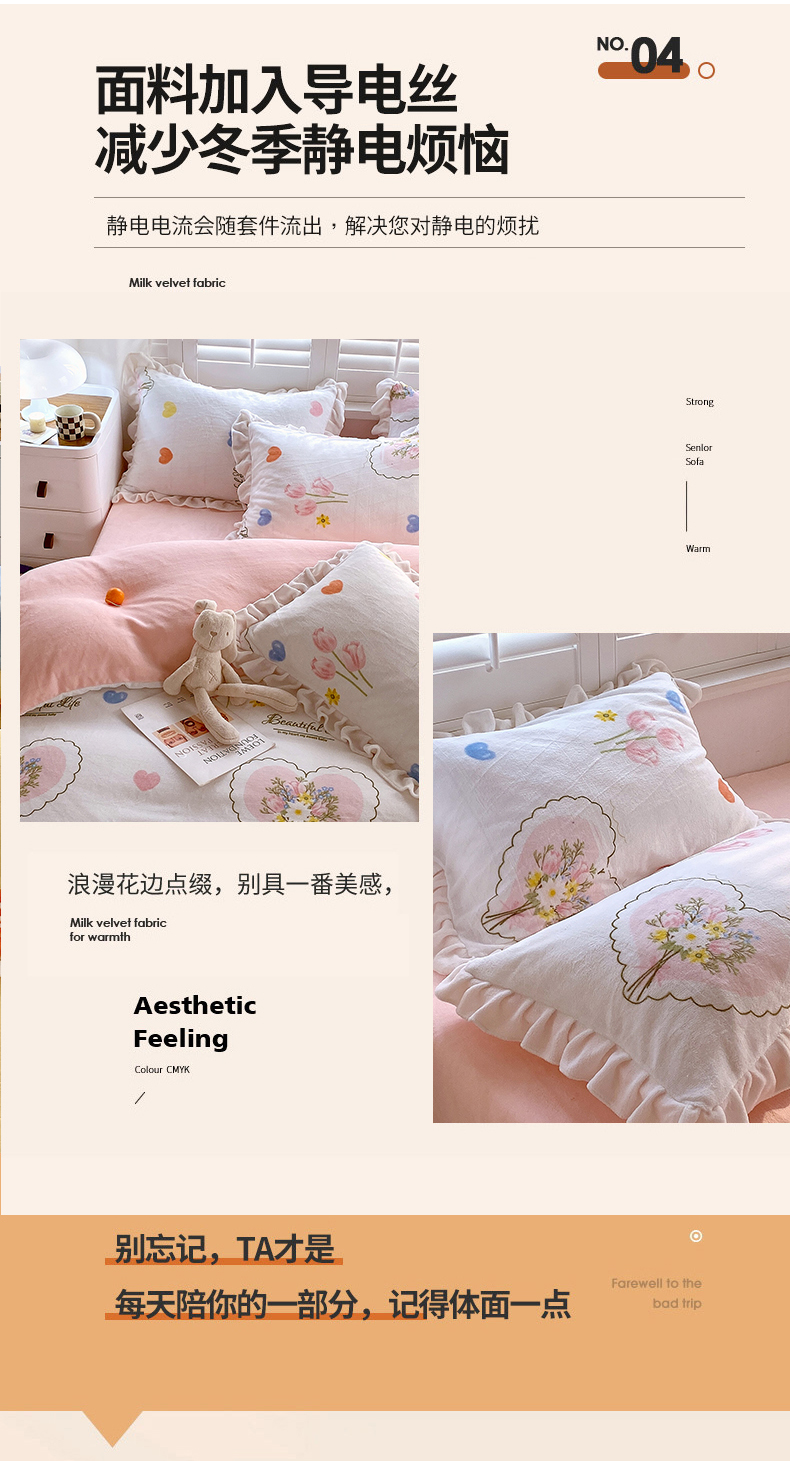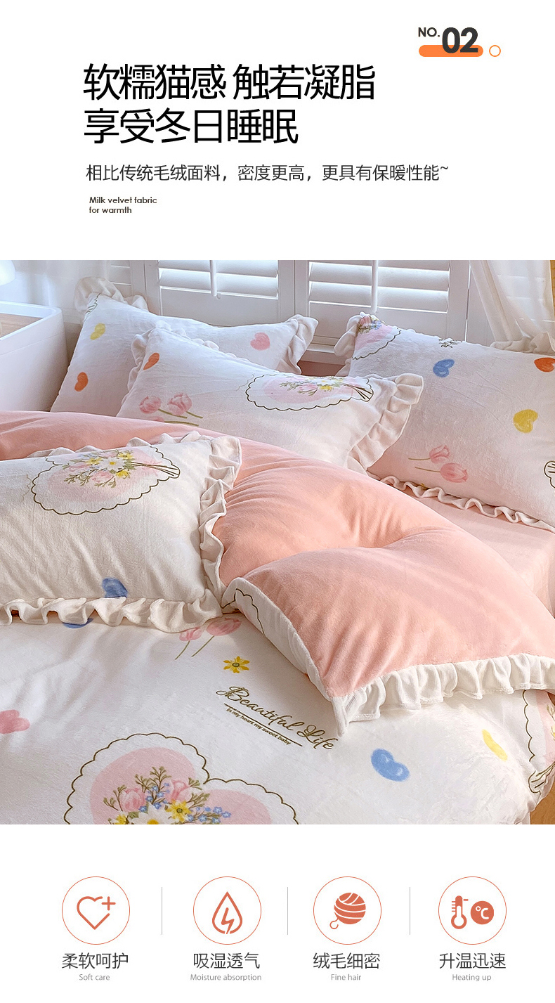 商品名称:宜家坊 2023新款直播韩版印花花边款牛奶绒四件套 告白
