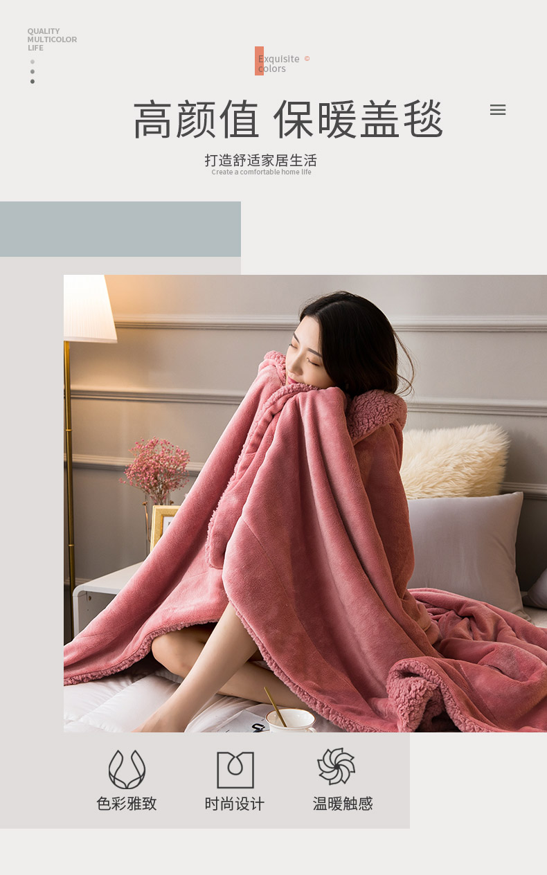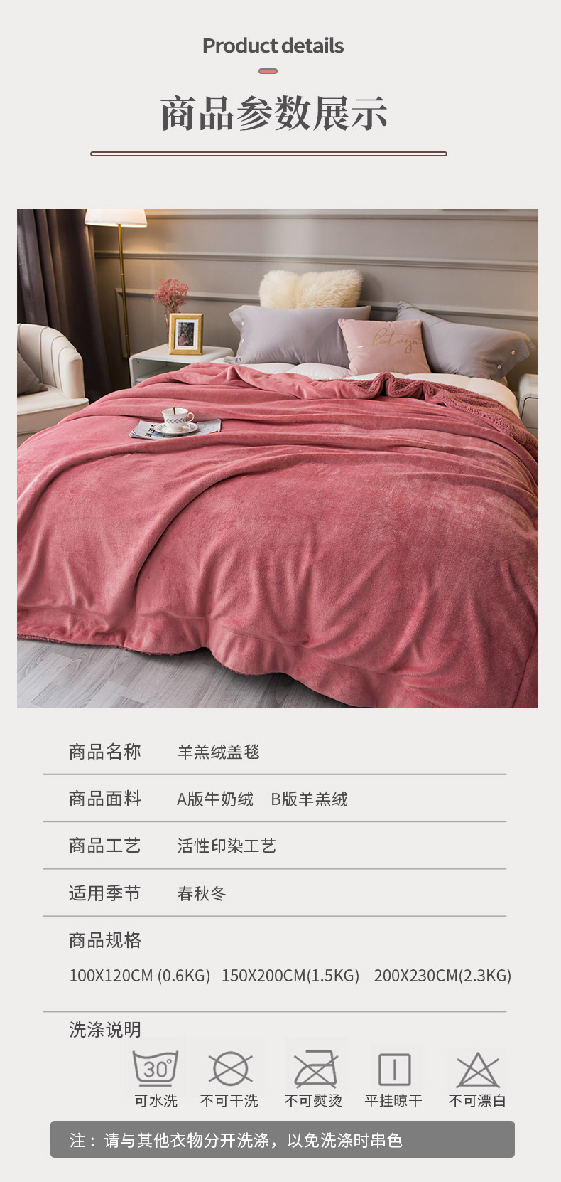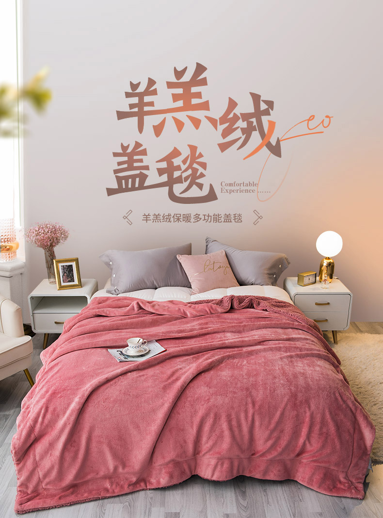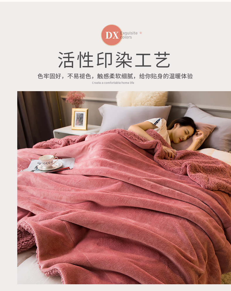 商品名称:欧邦 新款爆款纯色羊羔绒双层毛毯 蜜桃粉