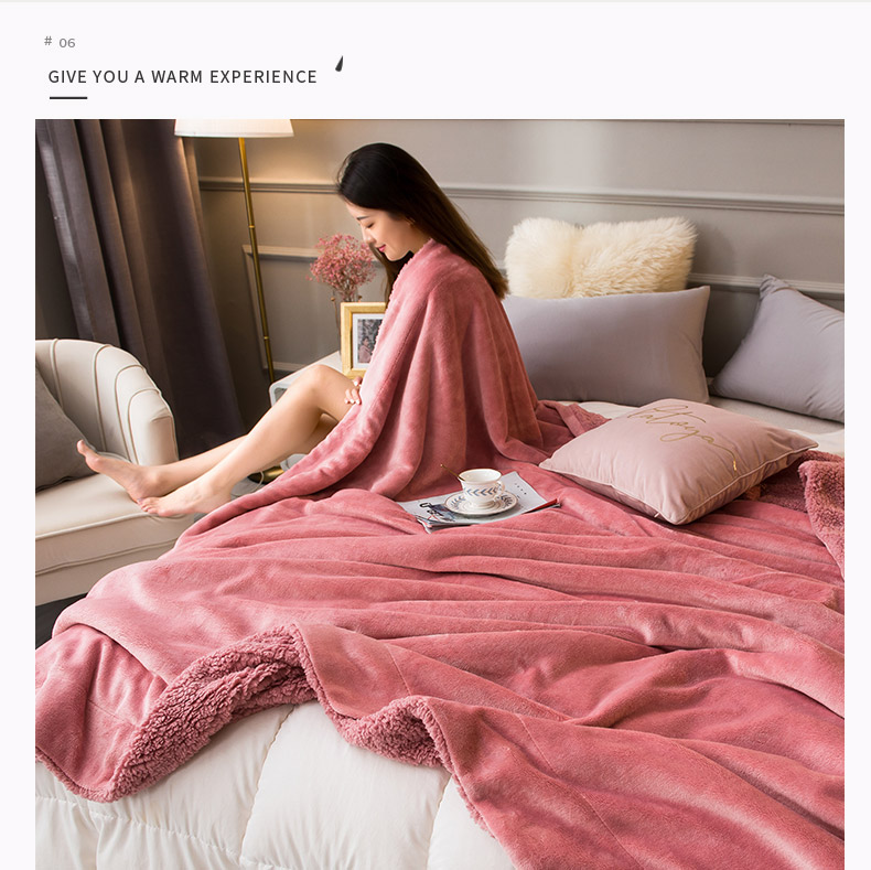 欧邦 新款爆款纯色羊羔绒双层毛毯 蜜桃粉