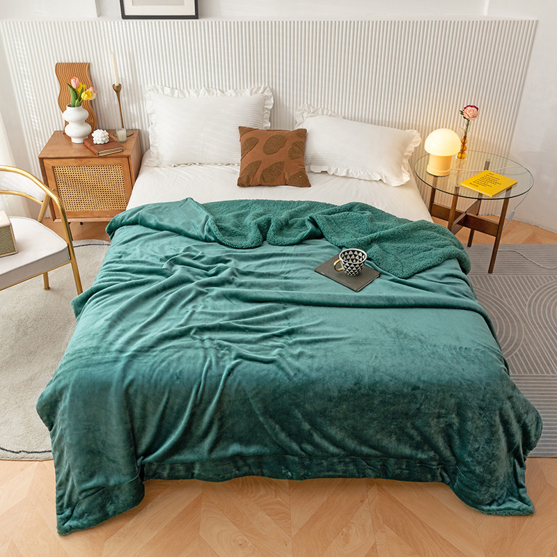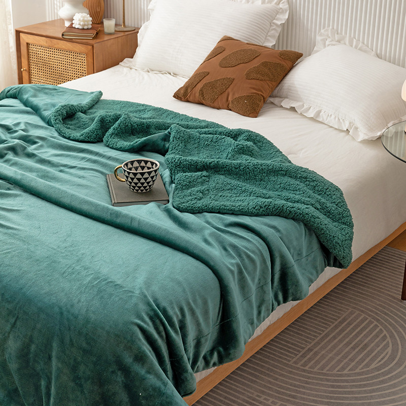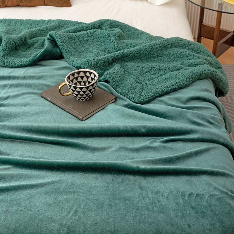 商品名称:欧邦 新款爆款纯色羊羔绒双层毛毯 海岛绿