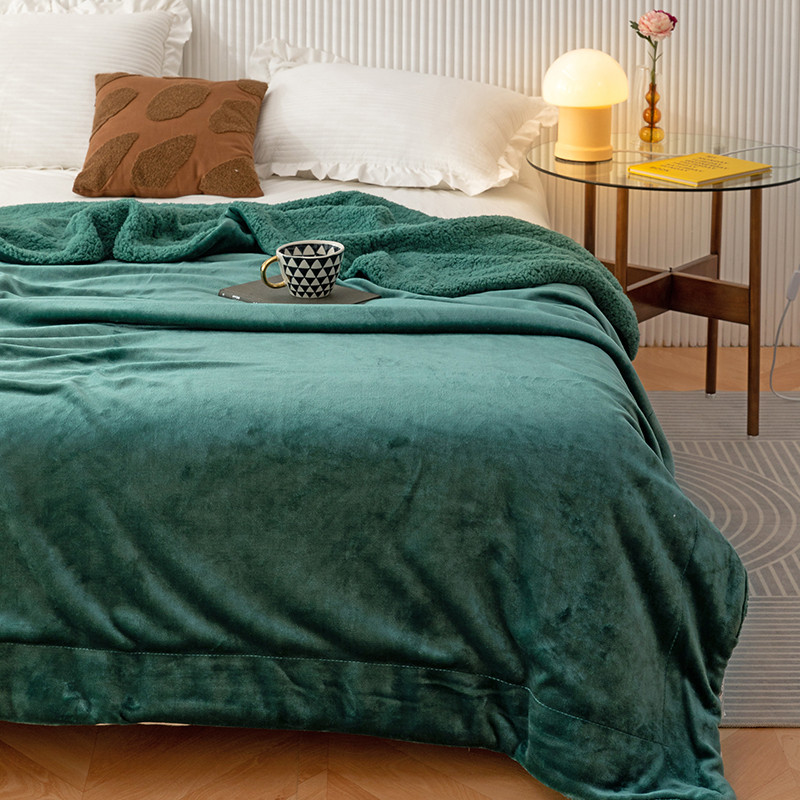 欧邦 新款爆款纯色羊羔绒双层毛毯 海岛绿
