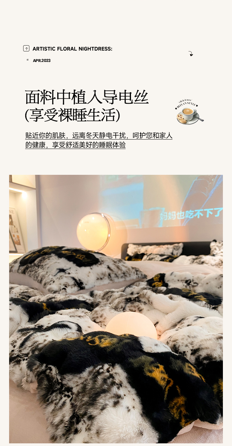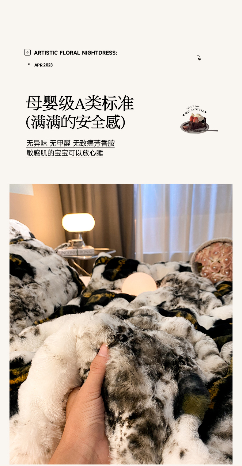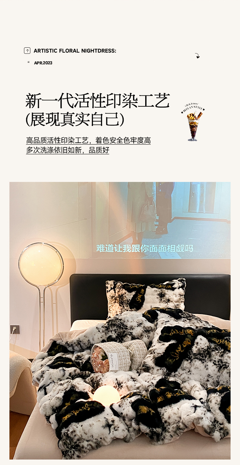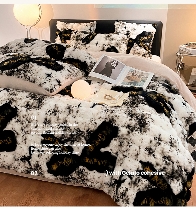 澳梵家居 2023舒芙蕾印花兔兔绒牛奶绒四件套 黑金蝴蝶结