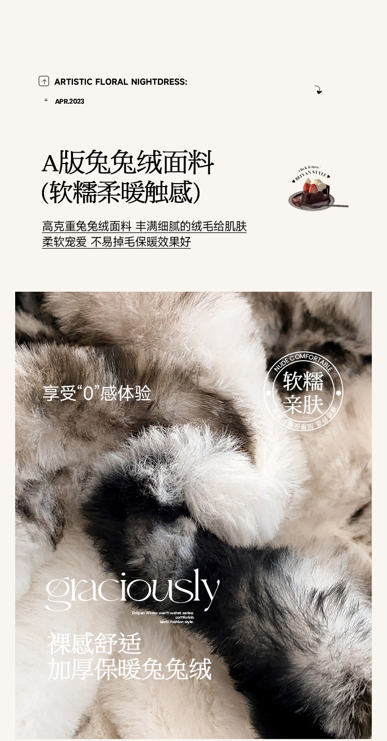 商品名称:澳梵家居 2023舒芙蕾印花兔兔绒牛奶绒四件套 黑金蝴蝶结