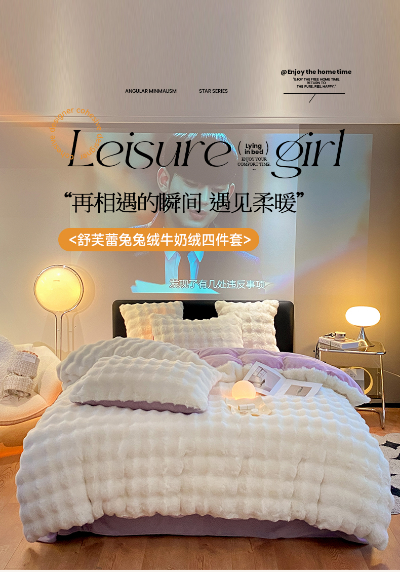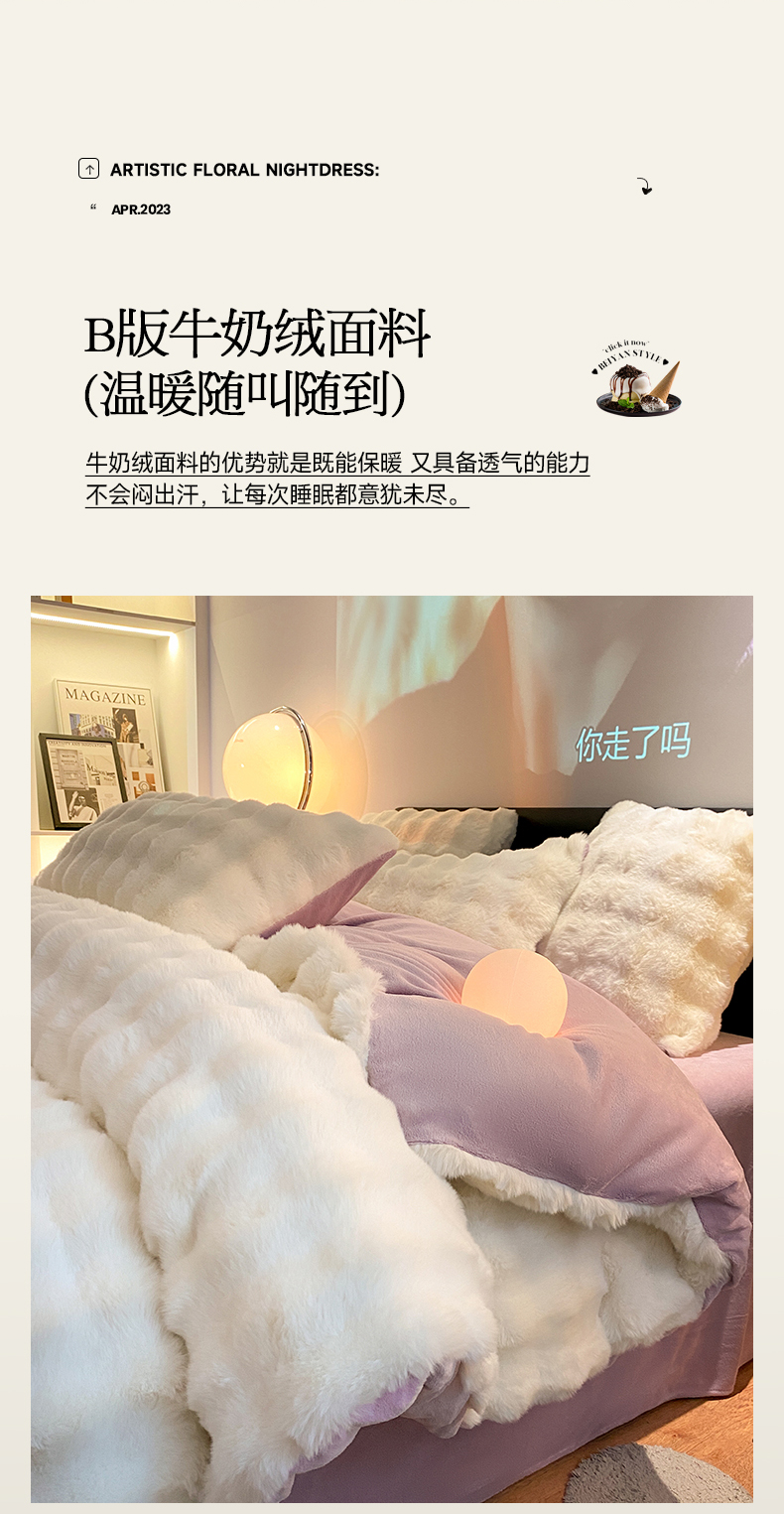 澳梵家居 2023舒芙蕾印花兔兔绒牛奶绒四件套 舒芙蕾-香芋紫白