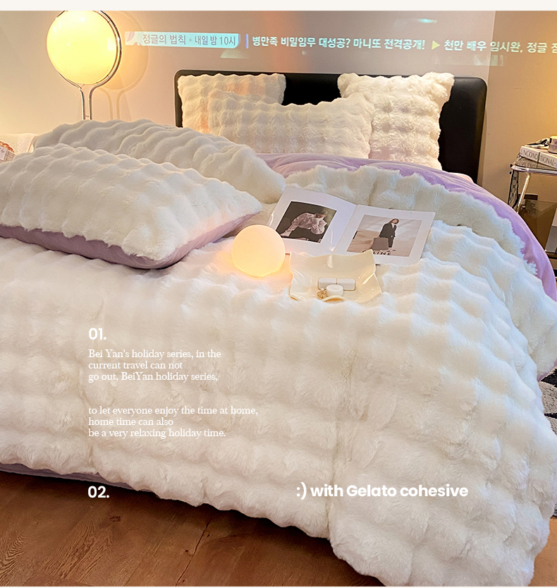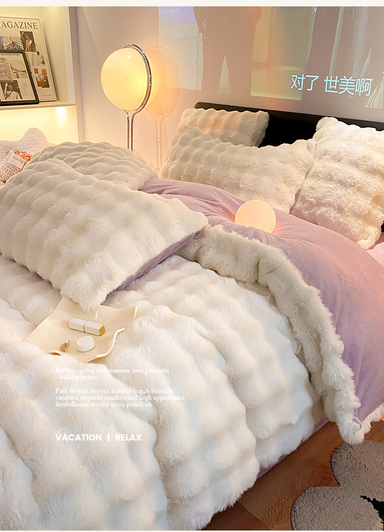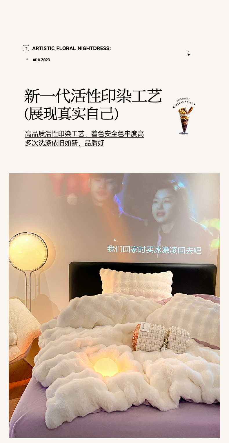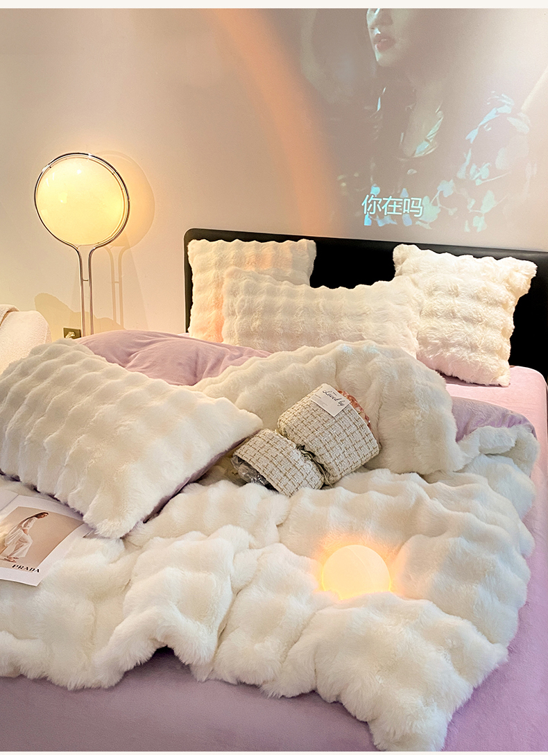 商品名称:澳梵家居 2023舒芙蕾印花兔兔绒牛奶绒四件套 舒芙蕾-香芋紫白