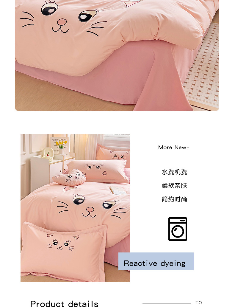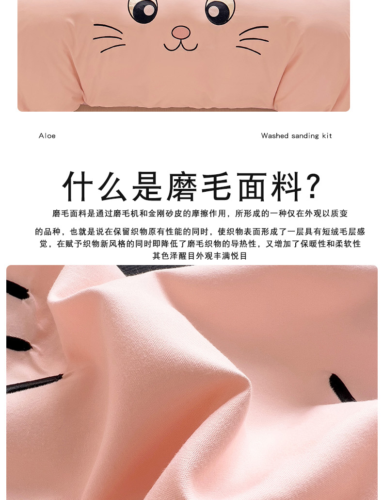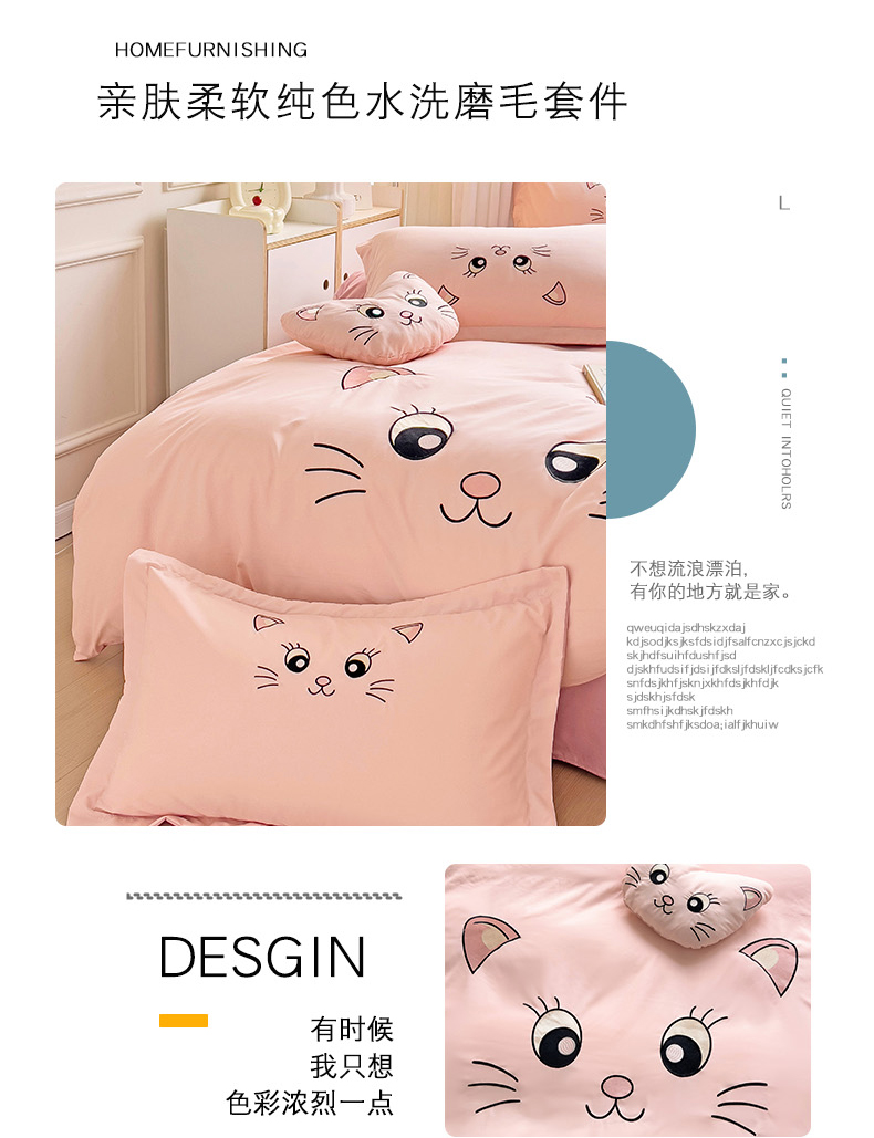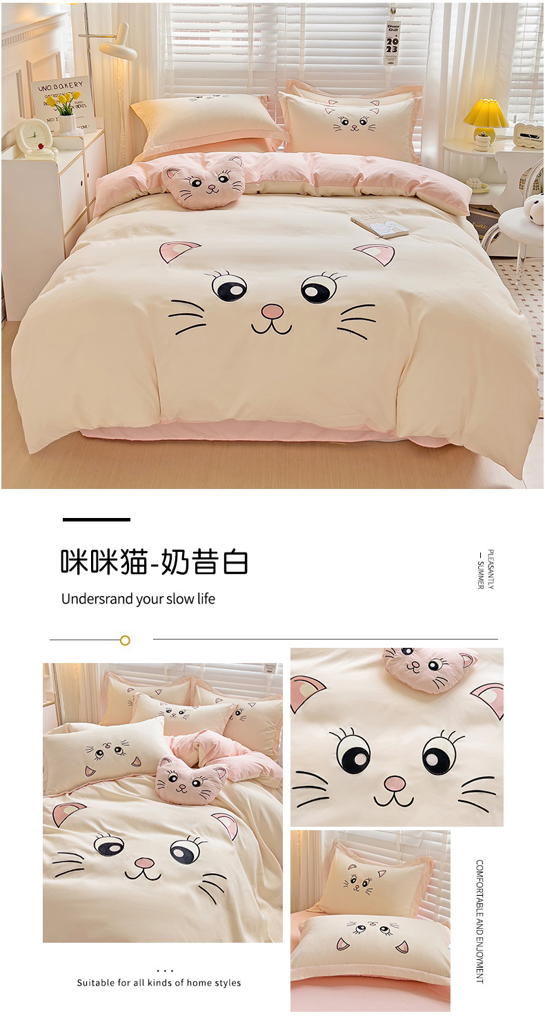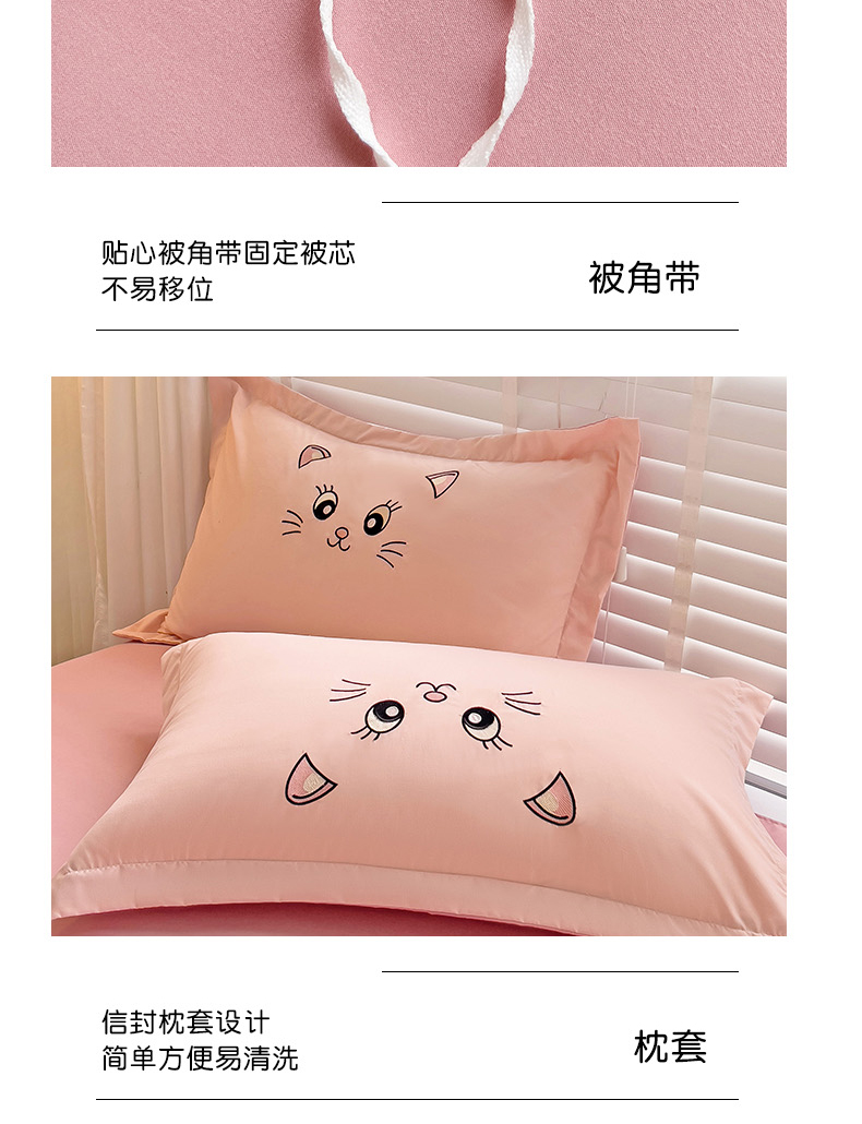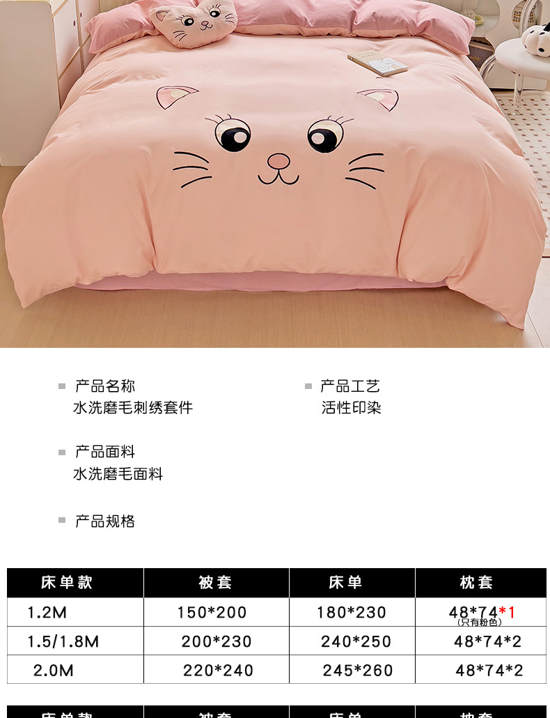 商品名称:(总)娜娜 2023新款亲肤柔软水洗磨毛毛巾绣四件套-咪咪猫
