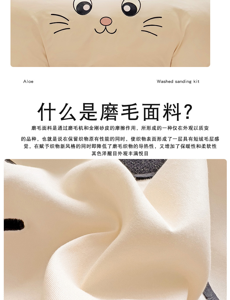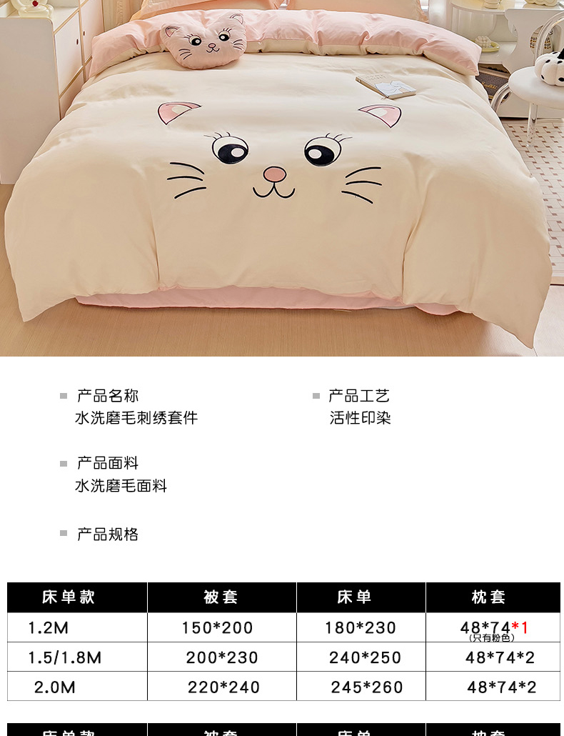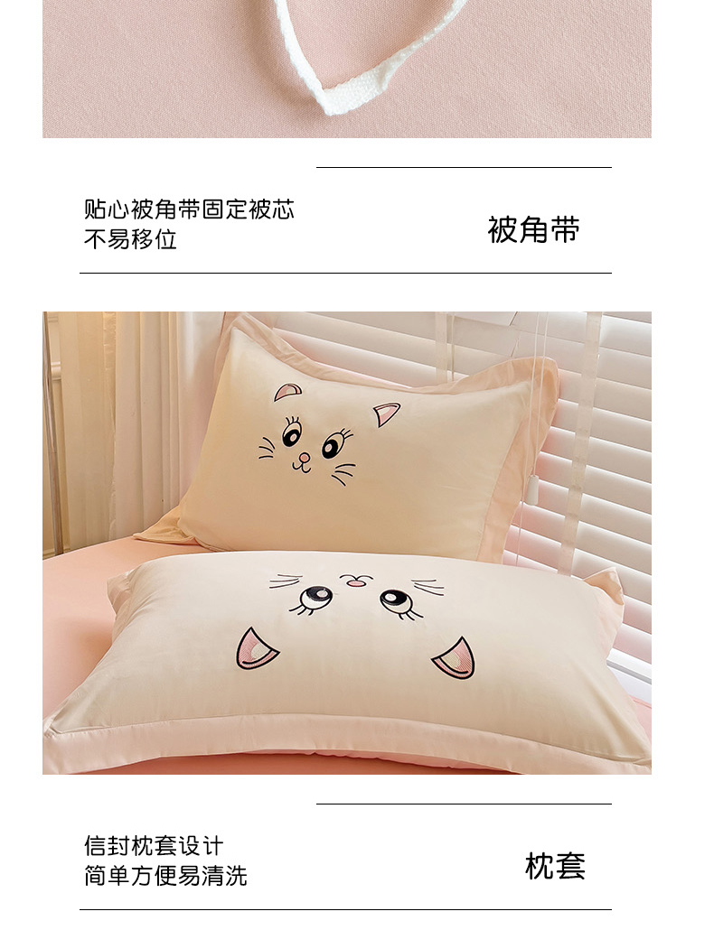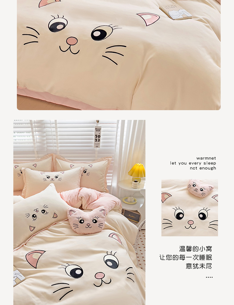商品名称:娜娜 2023新款亲肤柔软水洗磨毛毛巾绣四件套-咪咪猫 咪咪猫-奶昔白
